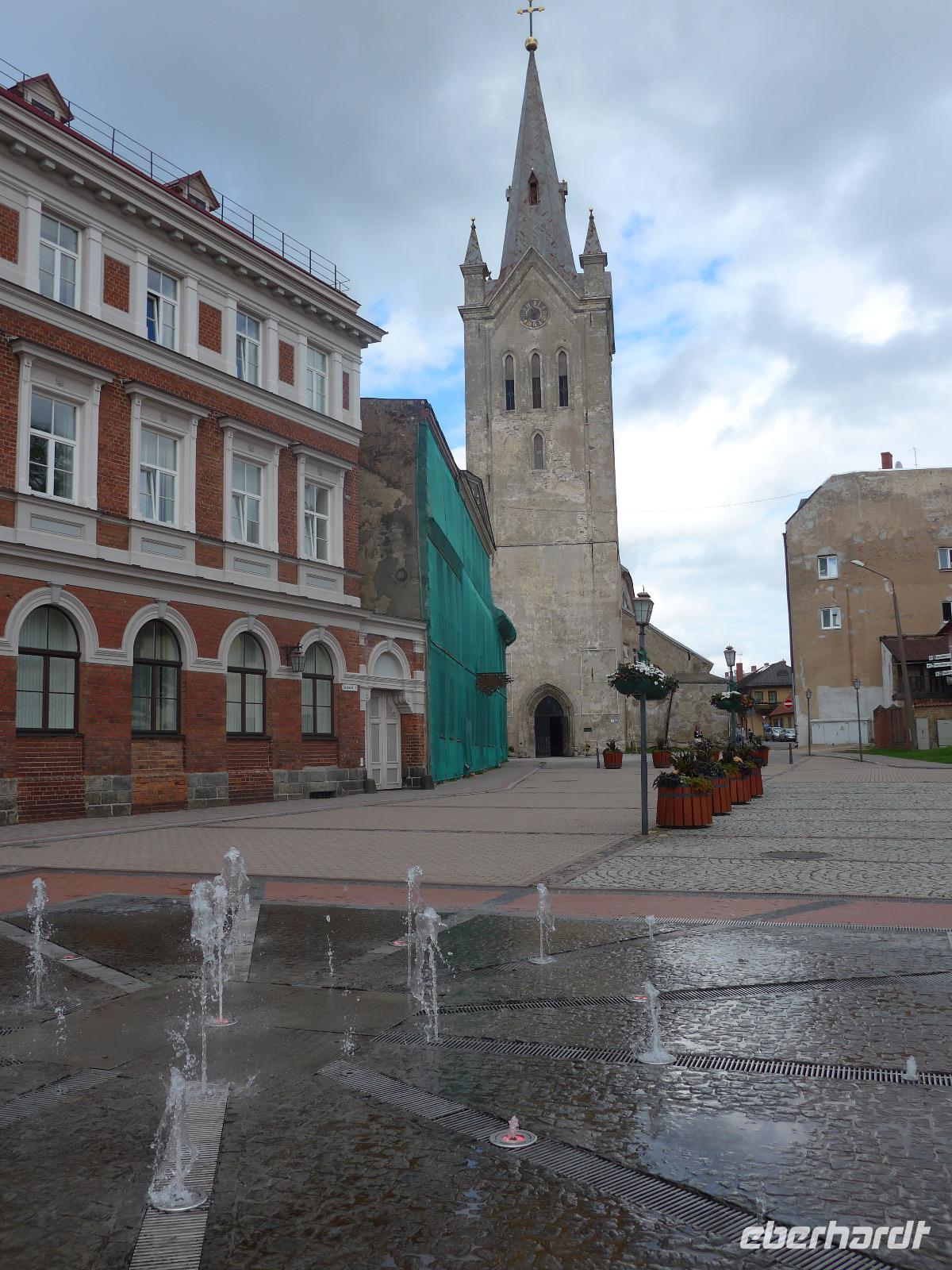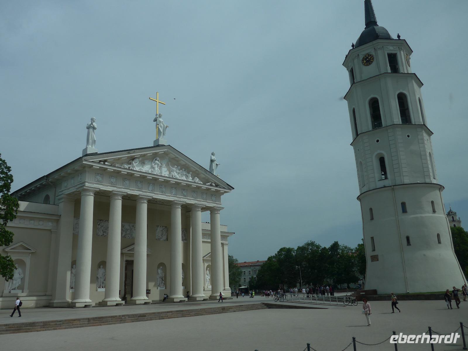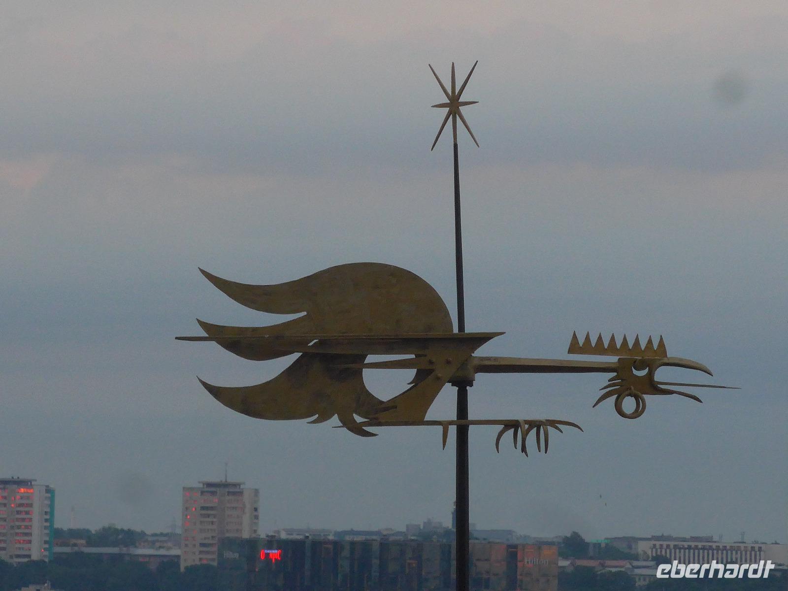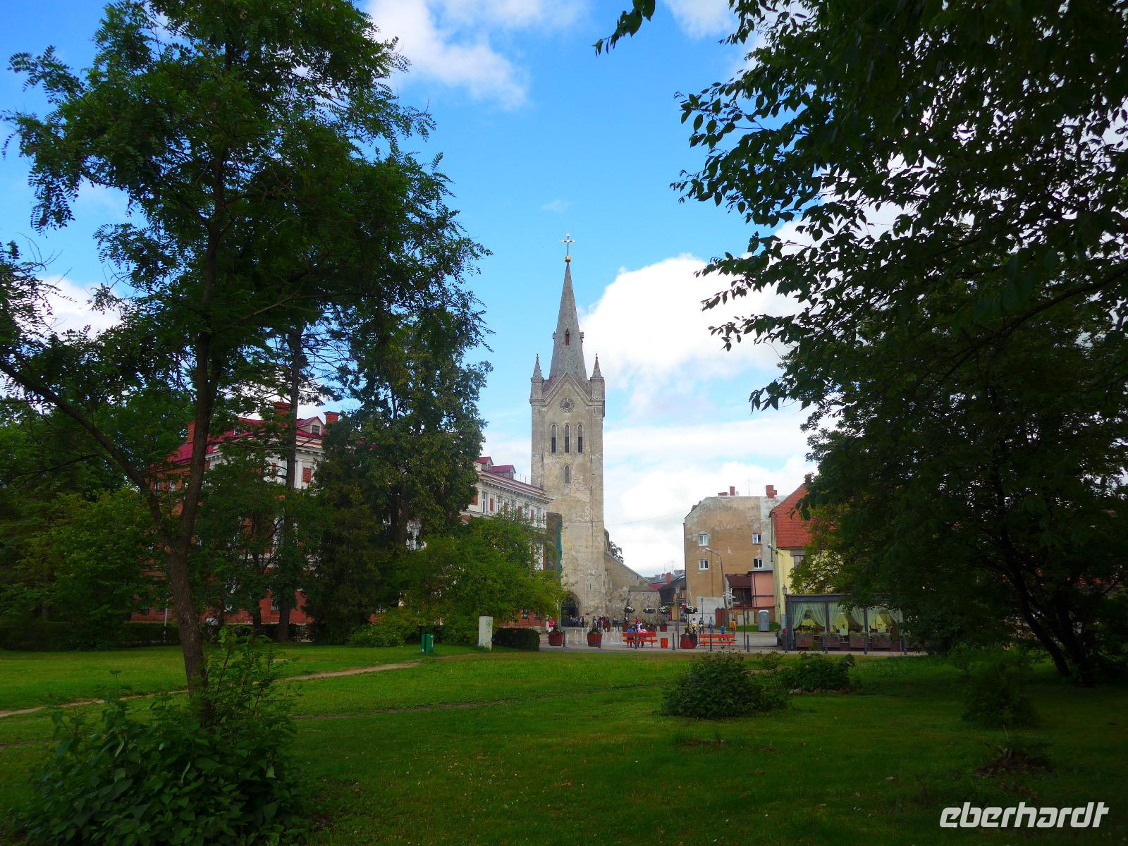 Weiter ging es mit dem Bus vorbei an der Kathedrale und der Peter und Paul Kirche zum Tor der Morgenröte, dem letzten noch erhaltenen Tor in die Altstadt. Bei der schwarzen Madonna hielten Pilger einen Gottesdienst ab und wir besuchten die russisch-orthodoxe Kirche. Am Rathausplatz endlich war Zeit für einen Kaffee. Dann spazierten wir weiter durch die alten Gassen zum Präsidentenpalast und zur Universität. Am Kathedralenplatz stand unser Bus und mit ihm fuhren wir ins Hotel EUROPA City. Beim Abendessen ging ein Gewitter mit Starkregen nieder und so fiel unser Abendspaziergang durch Vilnius buchstäblich ins Wasser.