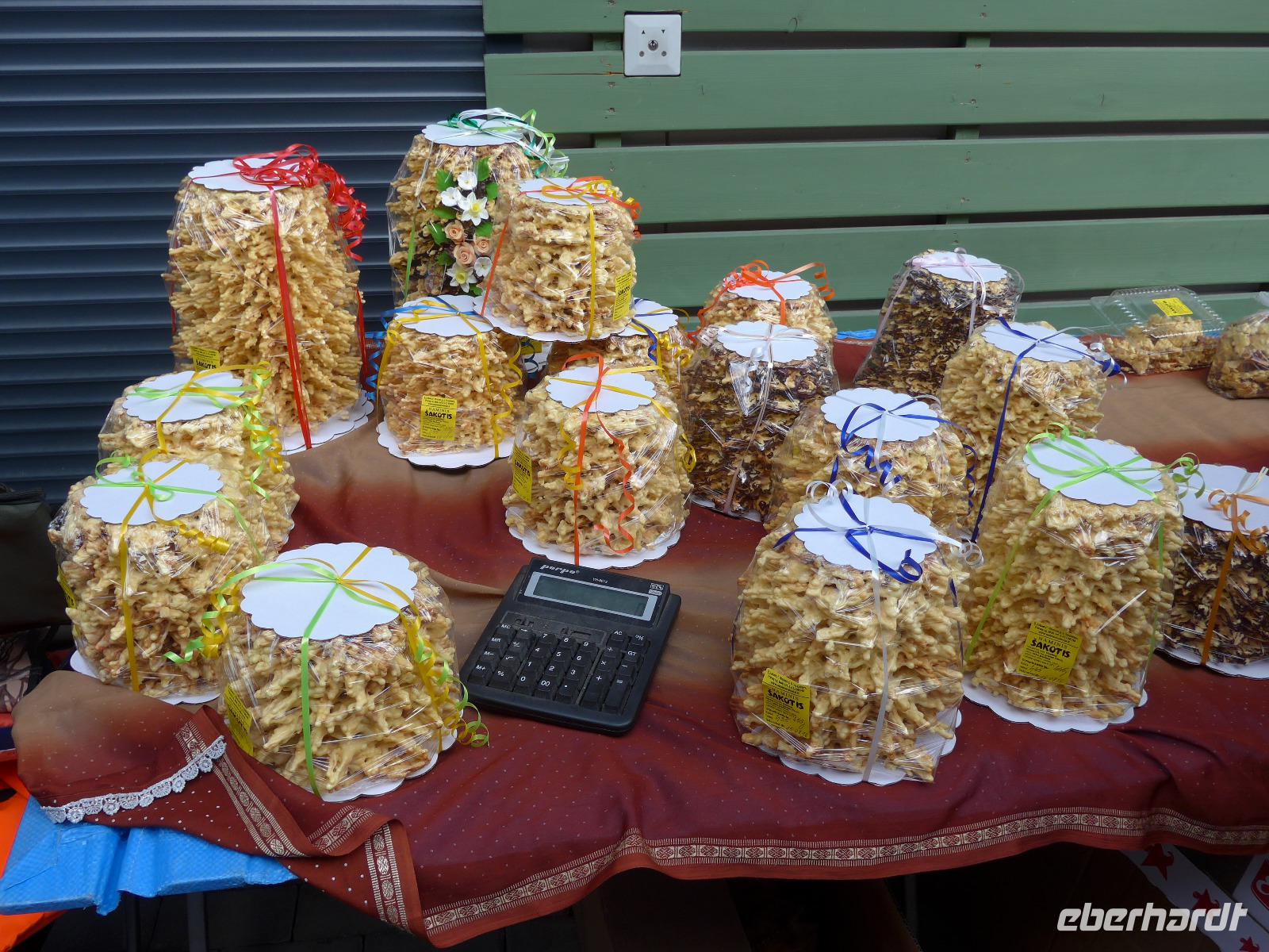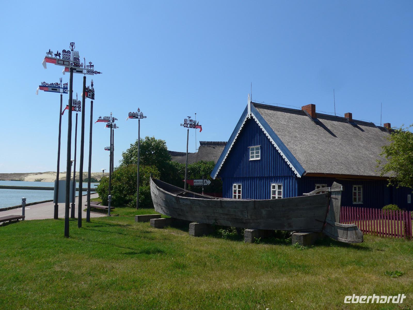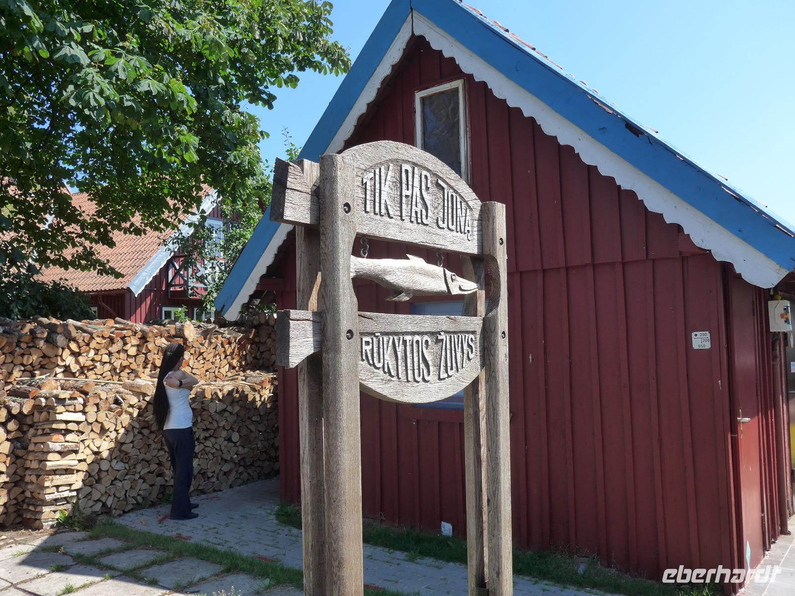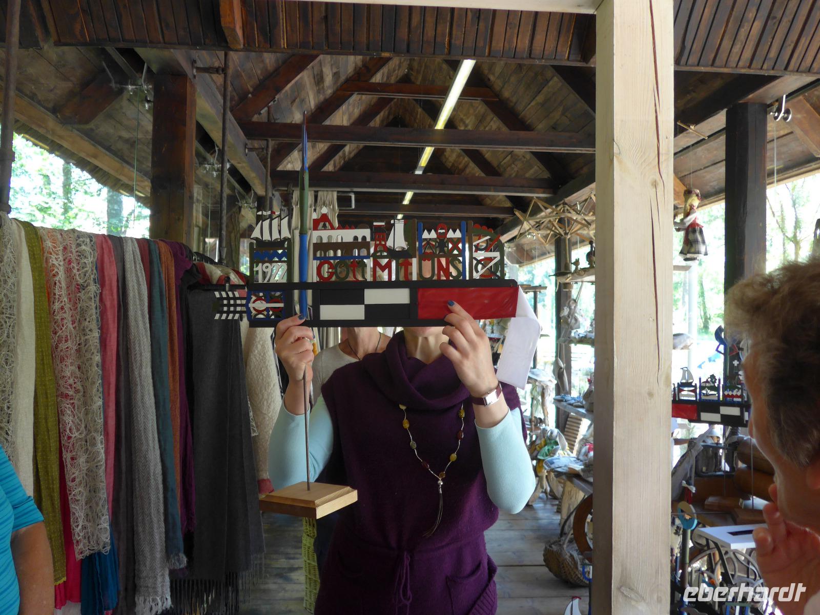 Nach der Mittagspause gingen wir ins Bernsteinmuseum und sahen Bernstein in allen Größen und vielen Farben. Ein Schluck Bernsteinschnaps soll für vieles gut sein und so probierten wir das alle. Aija führte uns anschließend noch zu einem Bernsteinverkauf und zu den Kurenwimpeln. Die Wimpel wurden im 19. Jahrhundert eingeführt, um die Haff-Fischerei besser zu kontrollieren. Später wurden sie reich verziert und schmückten die Kähne bis 1945. In der Sowjetzeit wurde die Fischerei in Kolchosen industriell betrieben. Die beiden noch erhaltenen alten Kurenkähne werden heute für Nostalgiefahrten genutzt und die Kurenwimpel zur Zierde hergestellt.