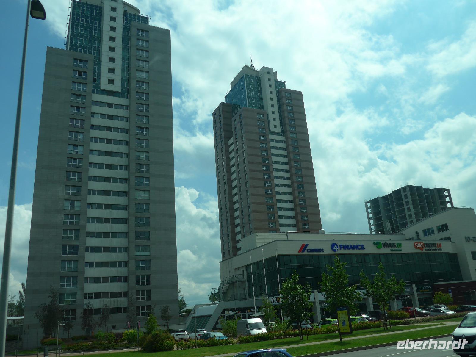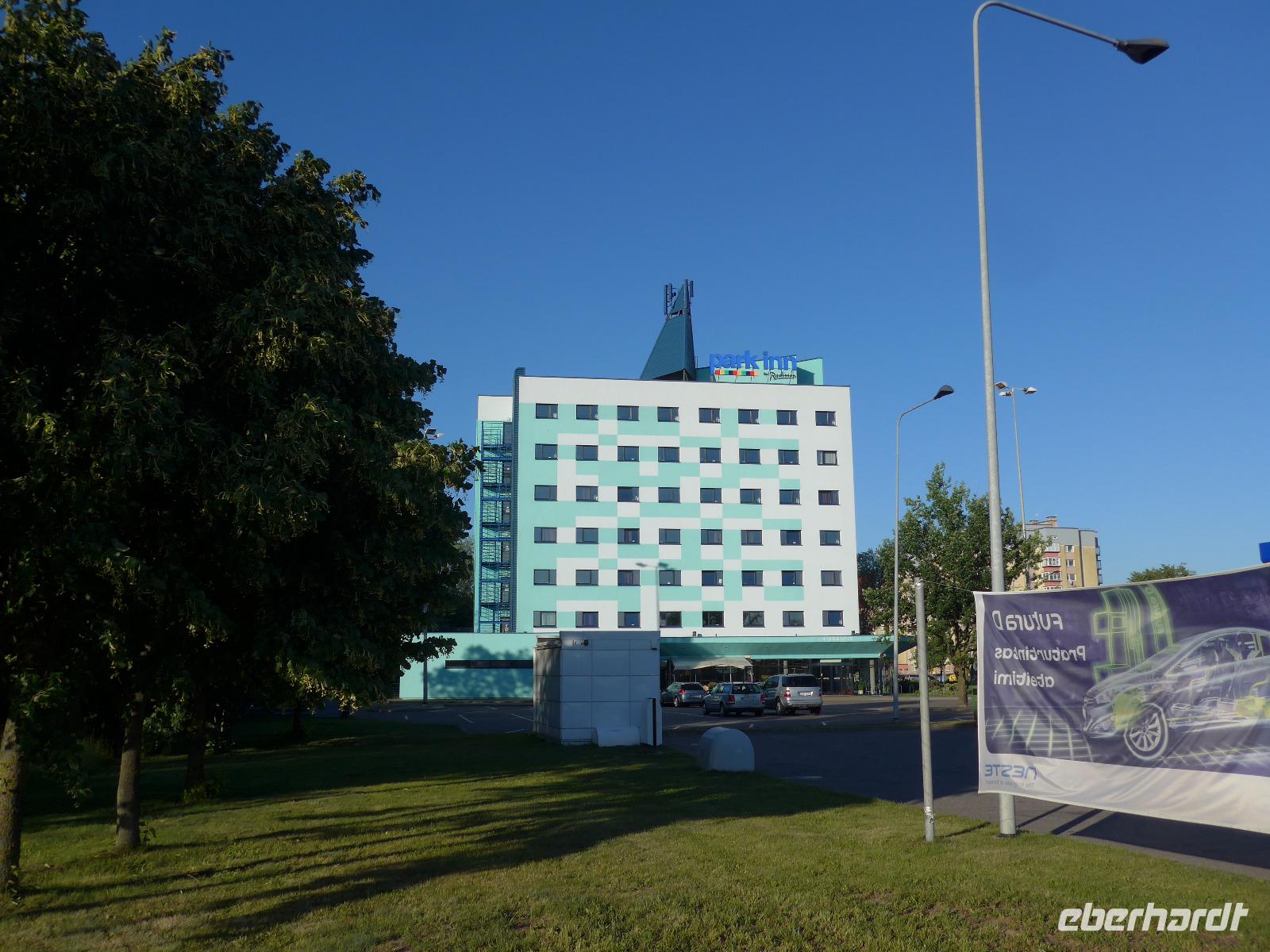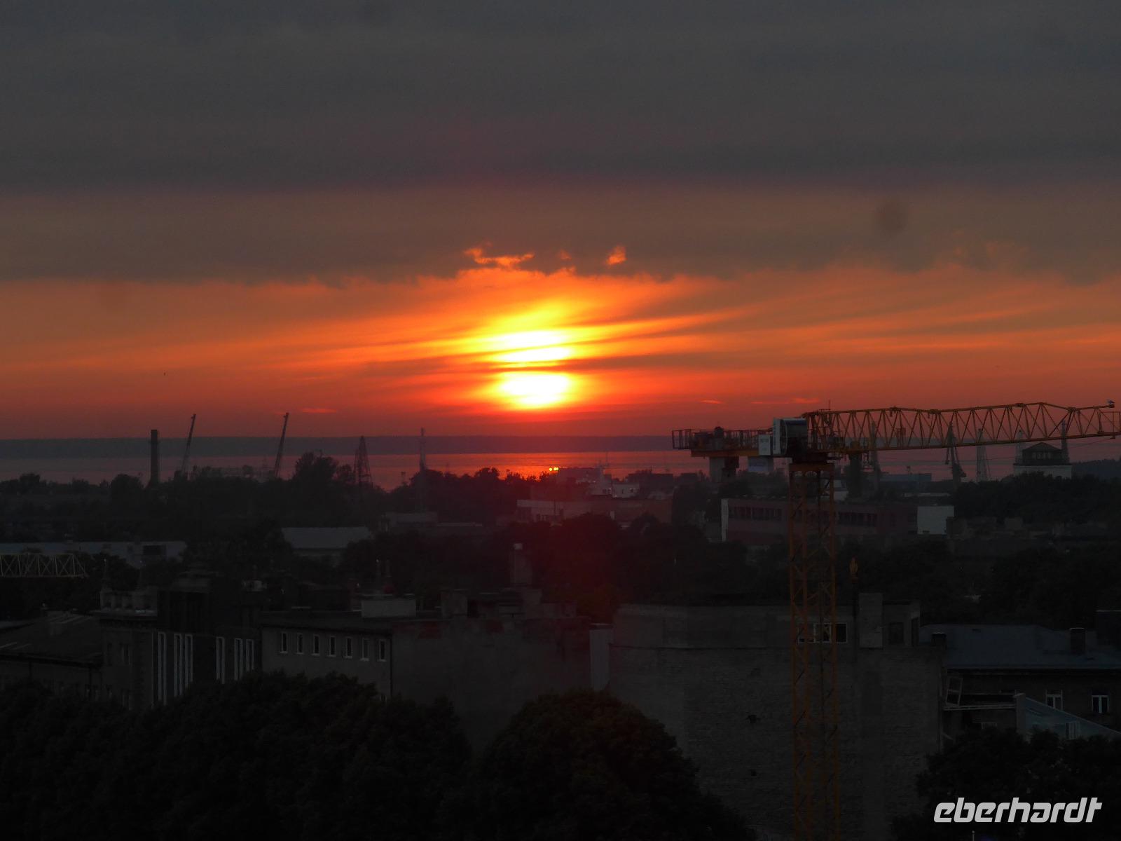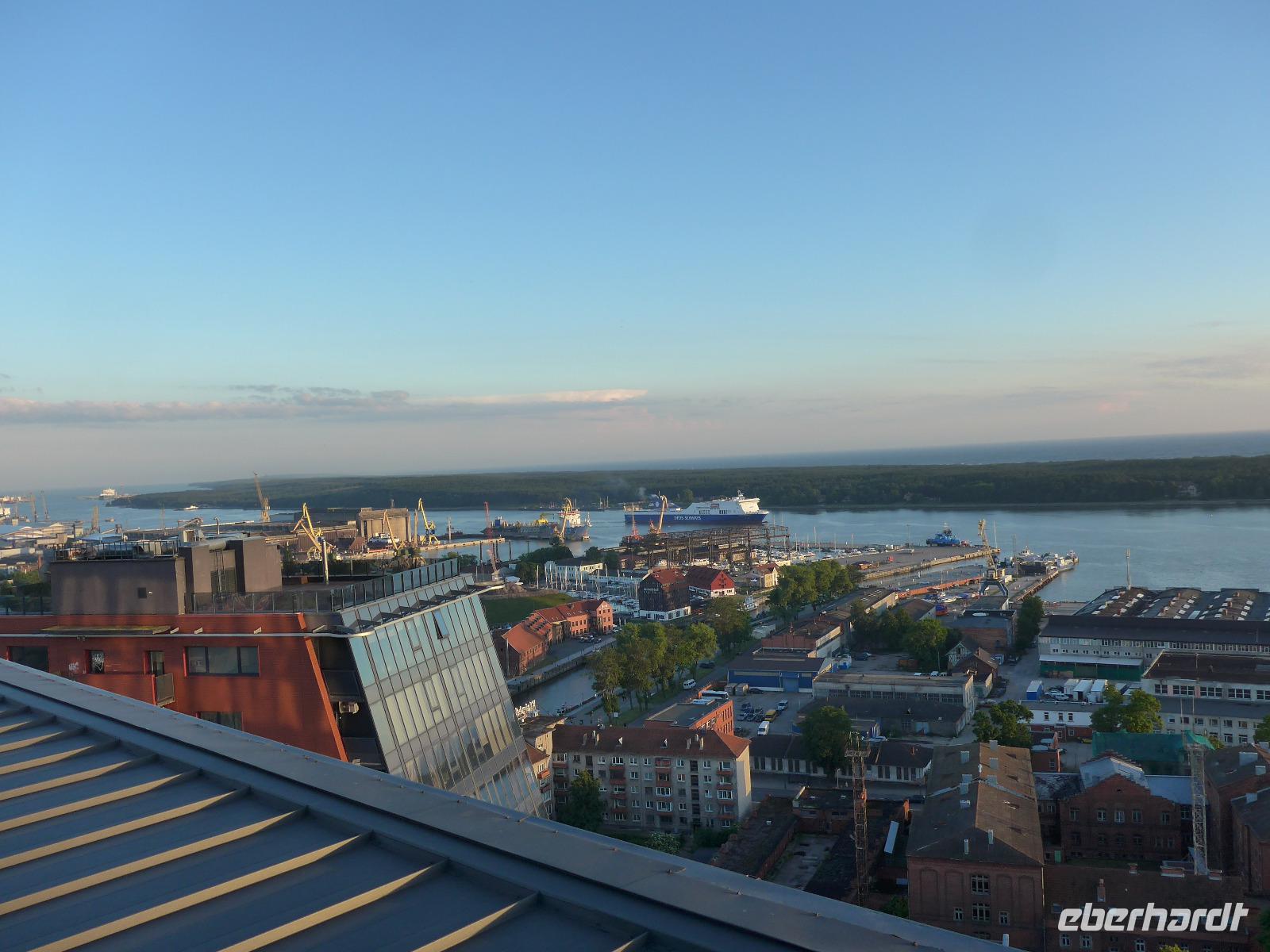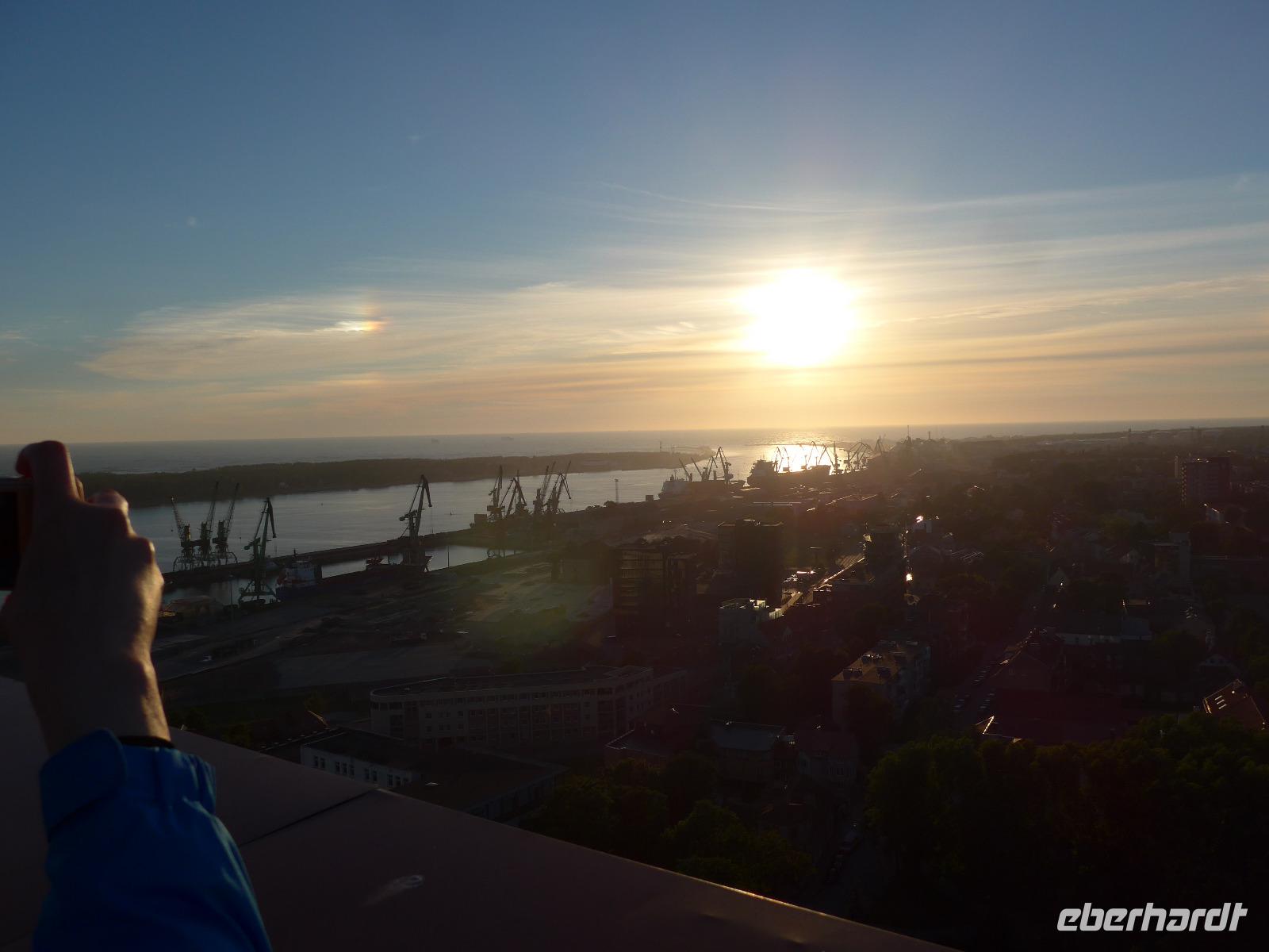 Nach dem Abendessen machten wir uns auf den Weg in das ca. 4 km entfernte Stadtzentrum. Von der Dachterrasse im 22. Stock des Hotel AMBERTON sahen wir bei untergehender Sonne übers Haff hinüber zur Kurischen Nehrung, unserem Ziel für den folgenden Tag.