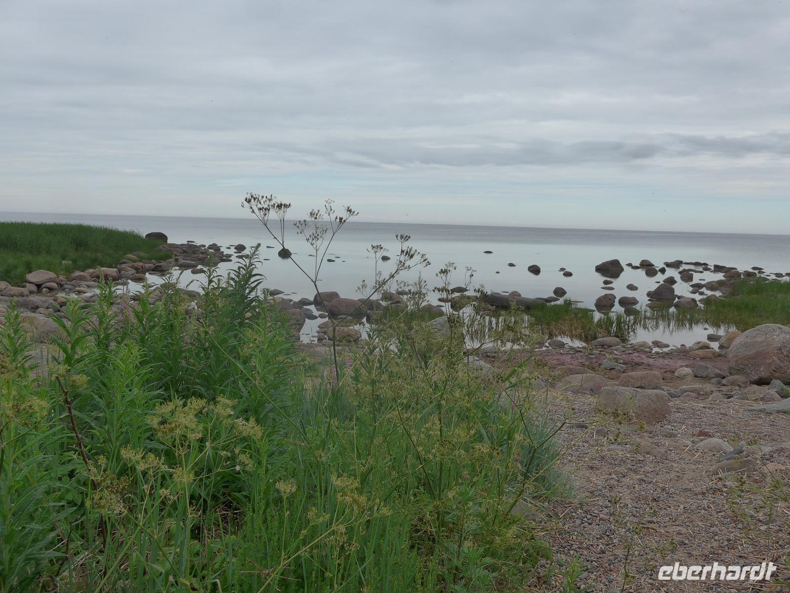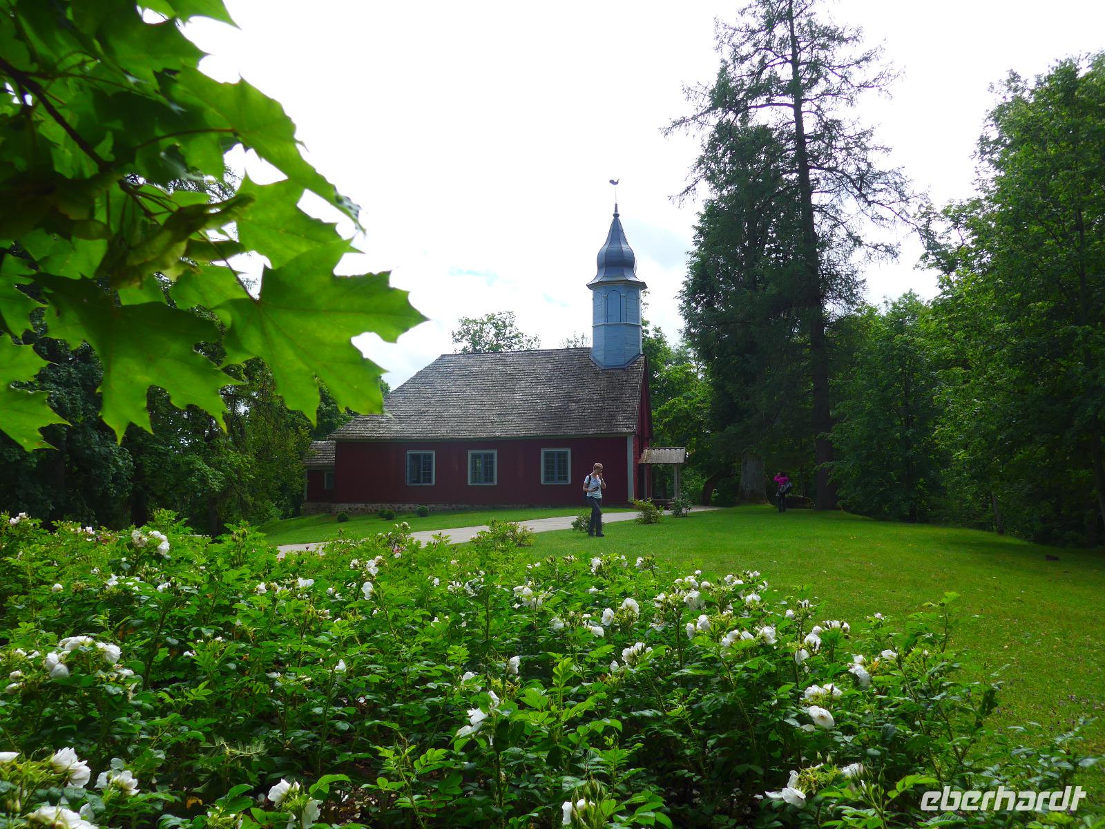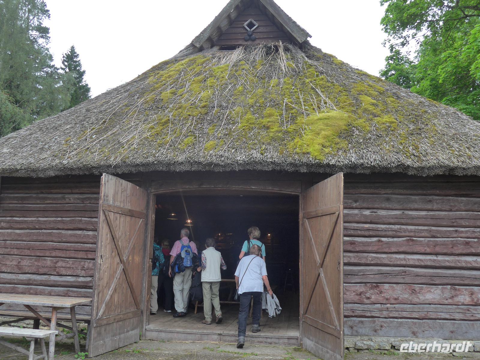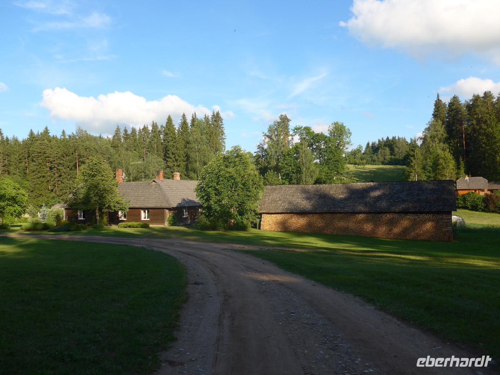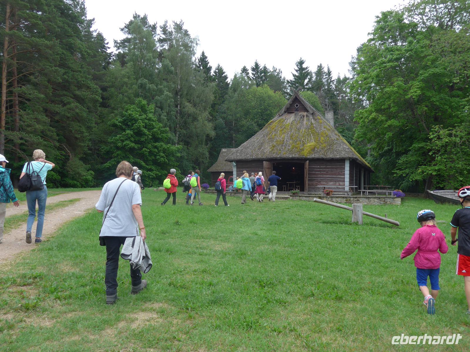 Heute bekamen wir zusätzlich noch einen estnischen Reiseleiter. Eduard sein Name und er fuhr mit uns durch die Vorstädte Tallinns und gab viele Informationen zum "Lachsberg", einem Neubauviertel mit 130 000 Einwohnern. Unsere erste Wanderung im Lahemaa-NP führte durch ein Hochmoor, wo uns Eduard Blau-, Heidel-, Moos- und Moltebeeren zeigte. Auf gut befestigten Stegen erreichten wir einen Aussichtsturm und eine Stelle, wo einst Torf abgebaut wurde und man nun mit der Renaturalisierung zu tun hat. Mit dem Bus ging es danach weiter bis nach Altja und dort begaben wir uns auf eine Rundwanderung. Die Strecke führte zunächst durch den Wald und dann entlang der Ostseeküste. Im Wasser lagen viele große und kleinere Steine und eine abwechslungsreiche Vegetation säumte den Uferbereich. So ganz anders, als wie wir es bislang im Baltikum kennengelernt hatten. Zum Mittagessen waren wir in Altja im "Krug", einer Traditionsgaststätte, die für ihre einfachen estnischen Gerichte bekannt ist. Gut gestärkt fuhren wir weiter zu den Guitshöfen.