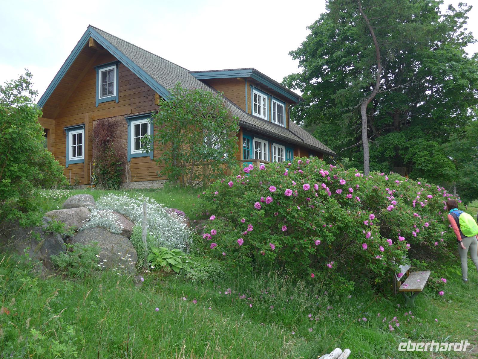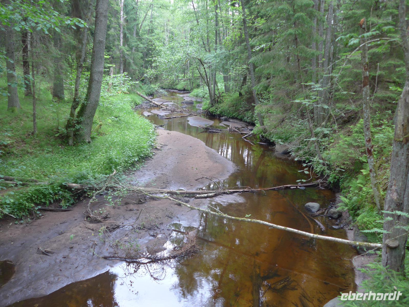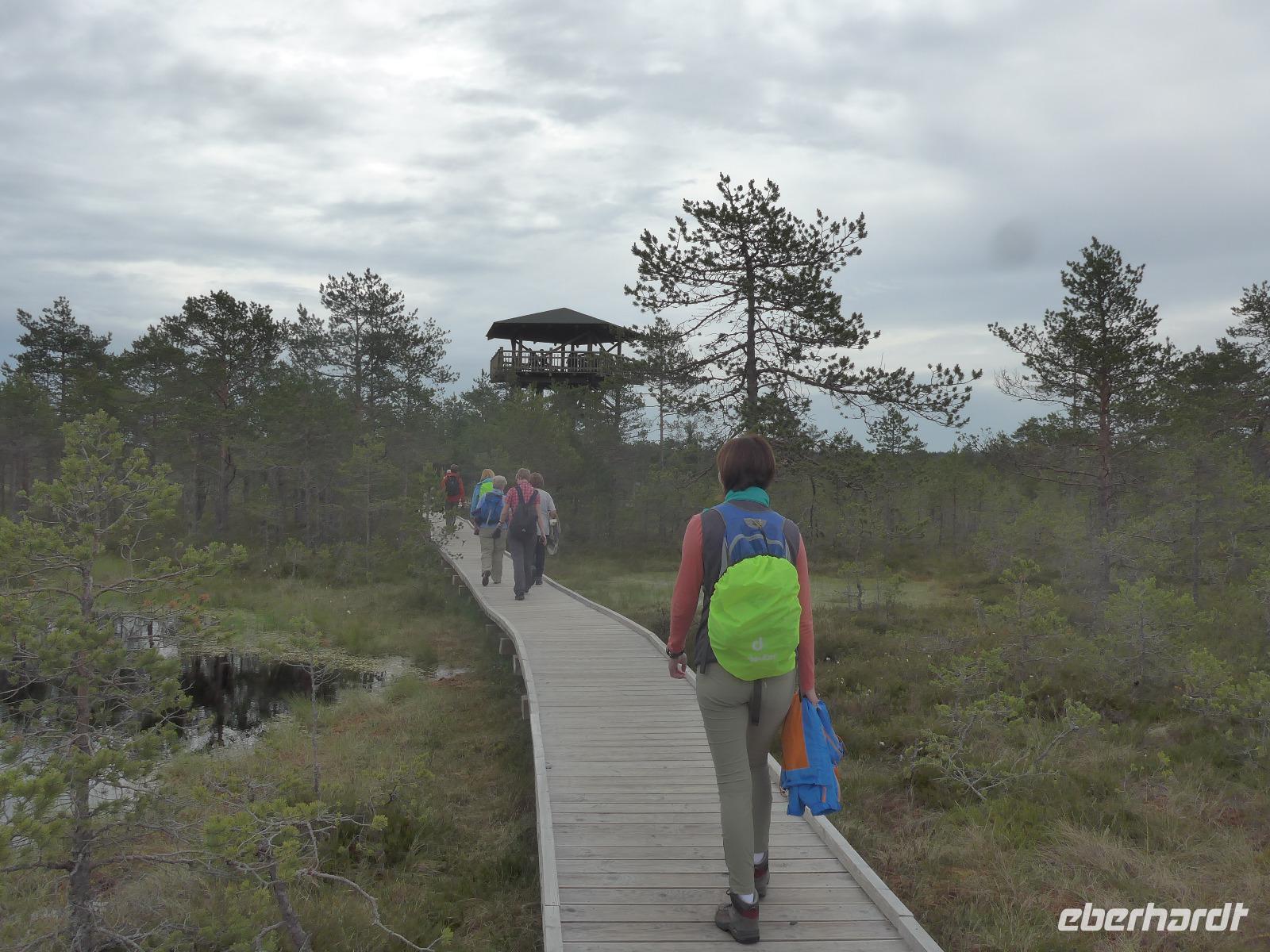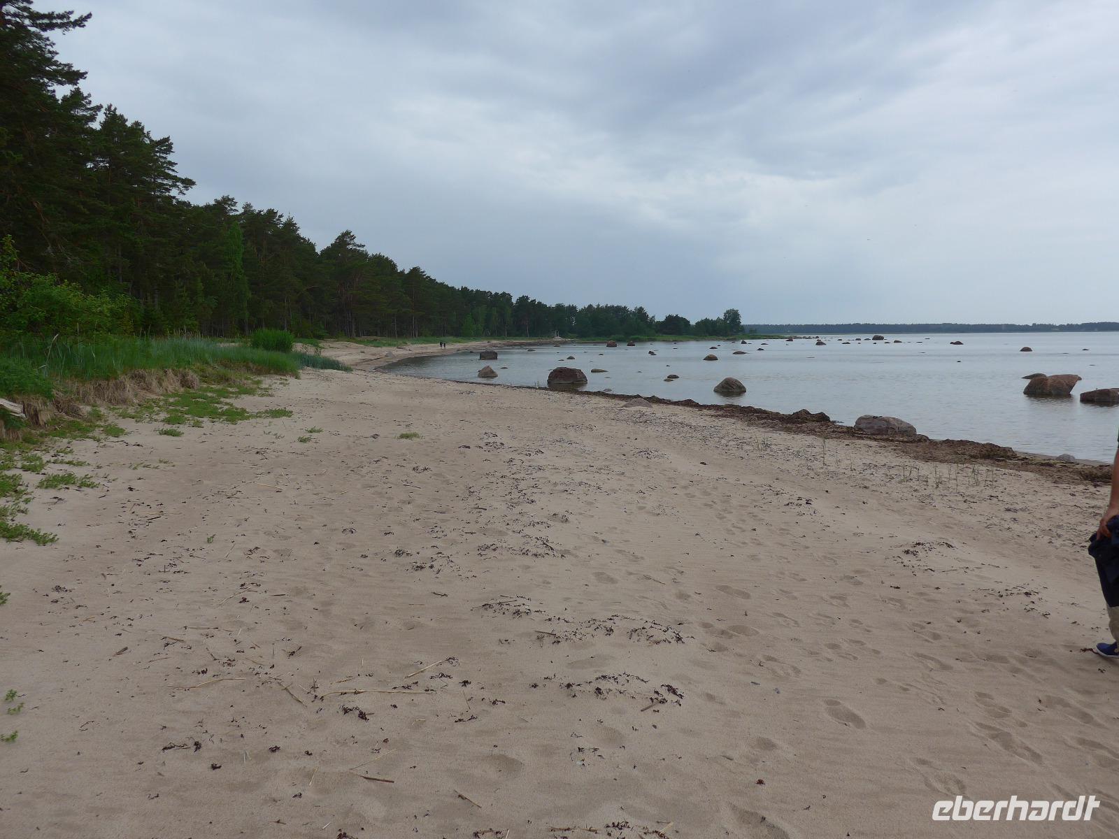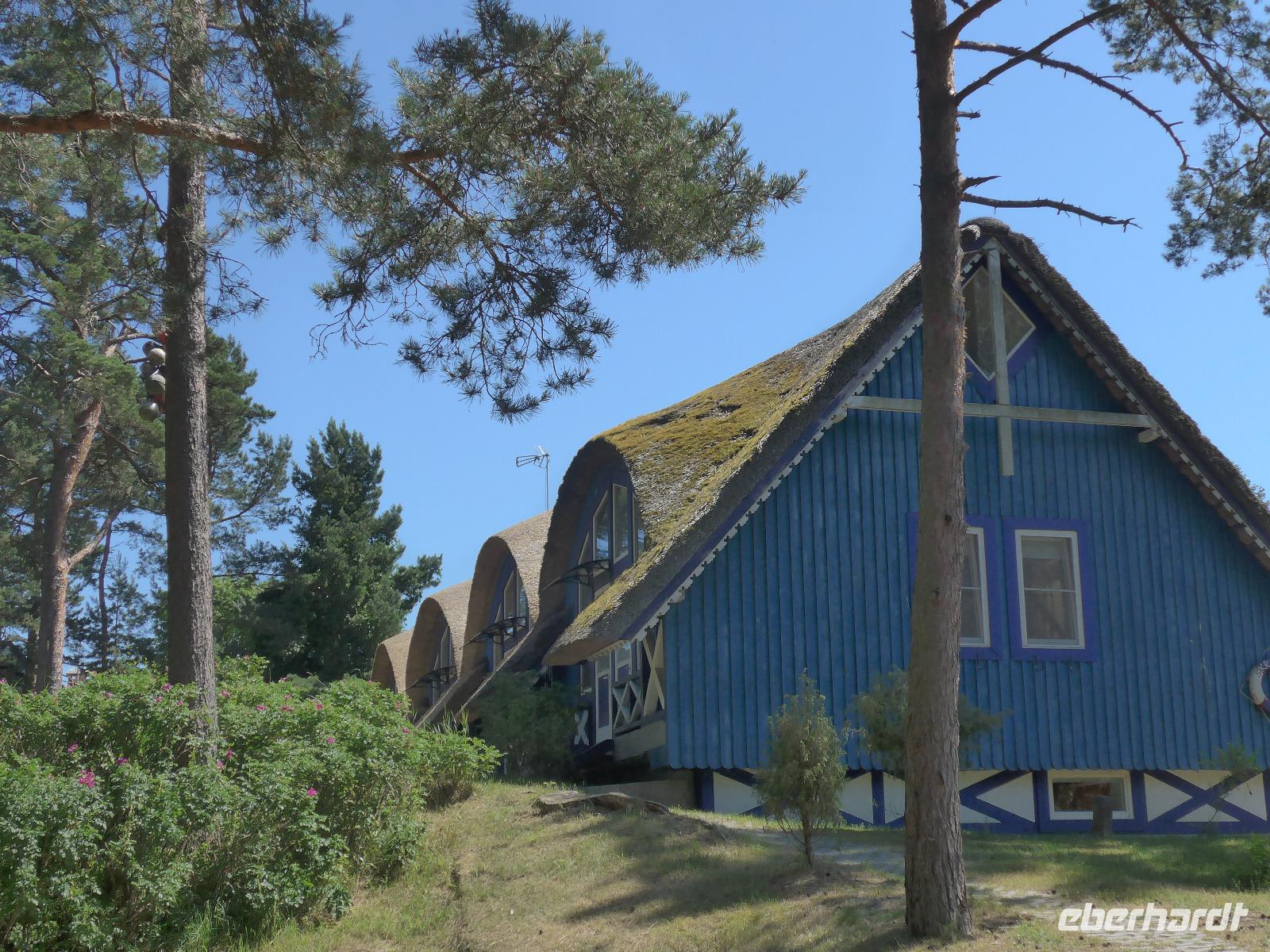 Heute bekamen wir zusätzlich noch einen estnischen Reiseleiter. Eduard sein Name und er fuhr mit uns durch die Vorstädte Tallinns und gab viele Informationen zum "Lachsberg", einem Neubauviertel mit 130 000 Einwohnern. Unsere erste Wanderung im Lahemaa-NP führte durch ein Hochmoor, wo uns Eduard Blau-, Heidel-, Moos- und Moltebeeren zeigte. Auf gut befestigten Stegen erreichten wir einen Aussichtsturm und eine Stelle, wo einst Torf abgebaut wurde und man nun mit der Renaturalisierung zu tun hat. Mit dem Bus ging es danach weiter bis nach Altja und dort begaben wir uns auf eine Rundwanderung. Die Strecke führte zunächst durch den Wald und dann entlang der Ostseeküste. Im Wasser lagen viele große und kleinere Steine und eine abwechslungsreiche Vegetation säumte den Uferbereich. So ganz anders, als wie wir es bislang im Baltikum kennengelernt hatten. Zum Mittagessen waren wir in Altja im "Krug", einer Traditionsgaststätte, die für ihre einfachen estnischen Gerichte bekannt ist. Gut gestärkt fuhren wir weiter zu den Guitshöfen.