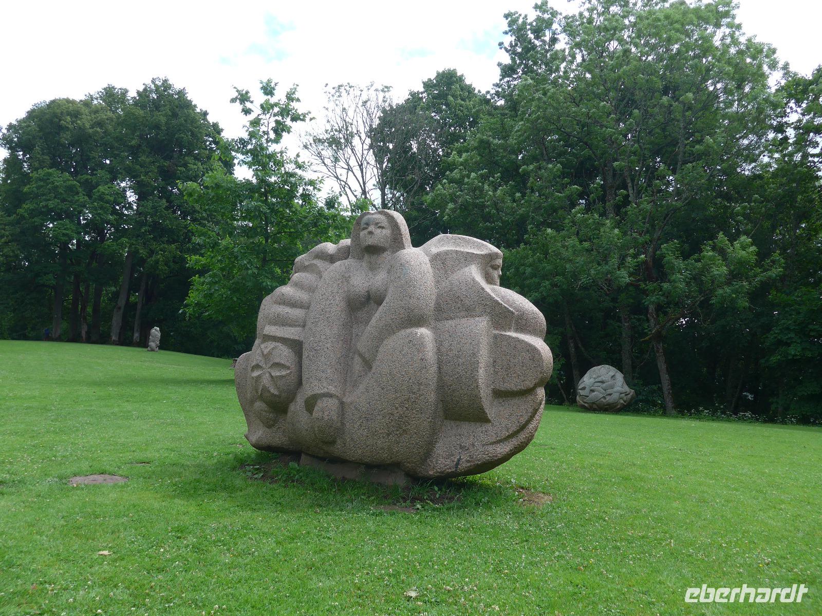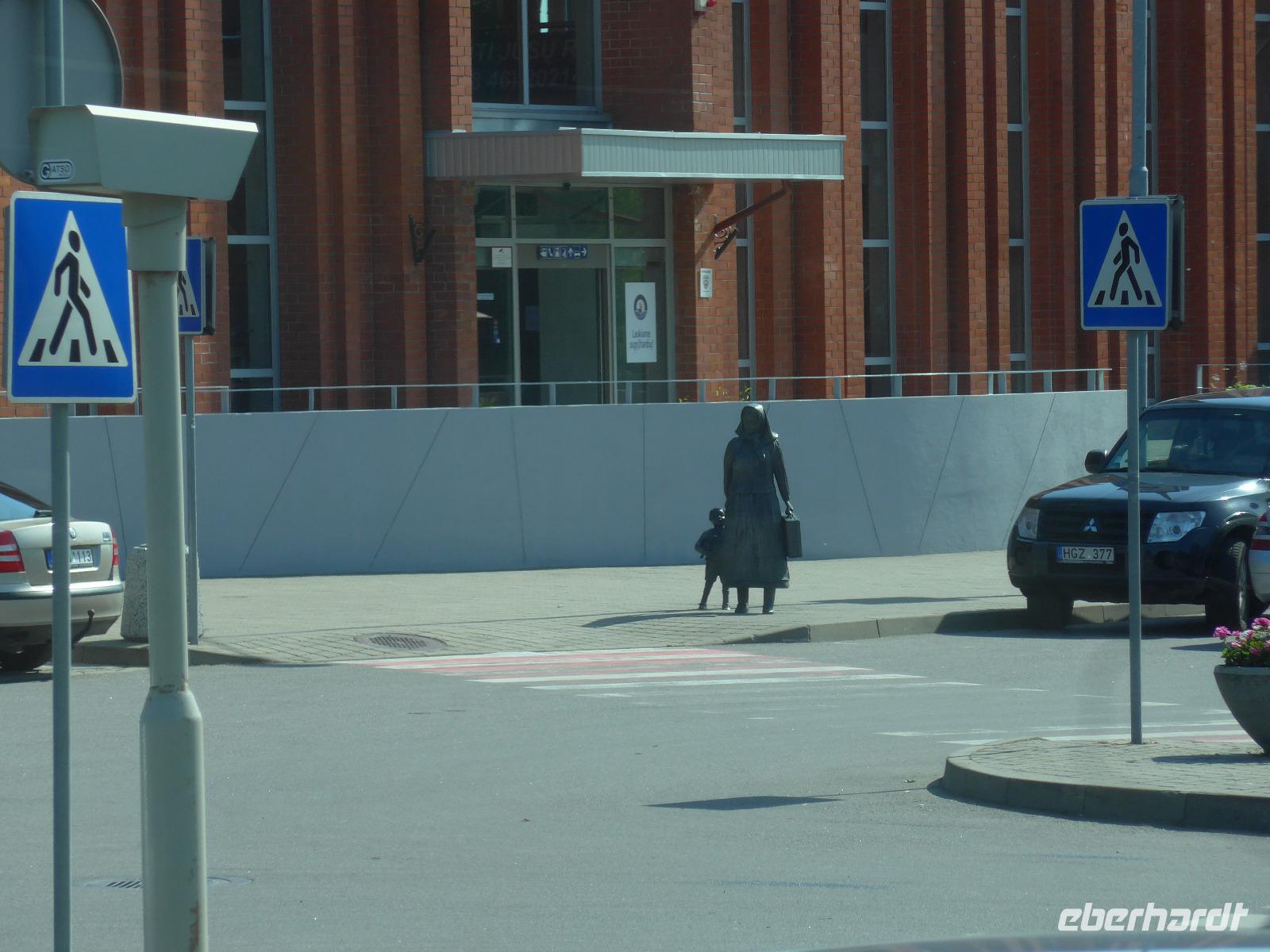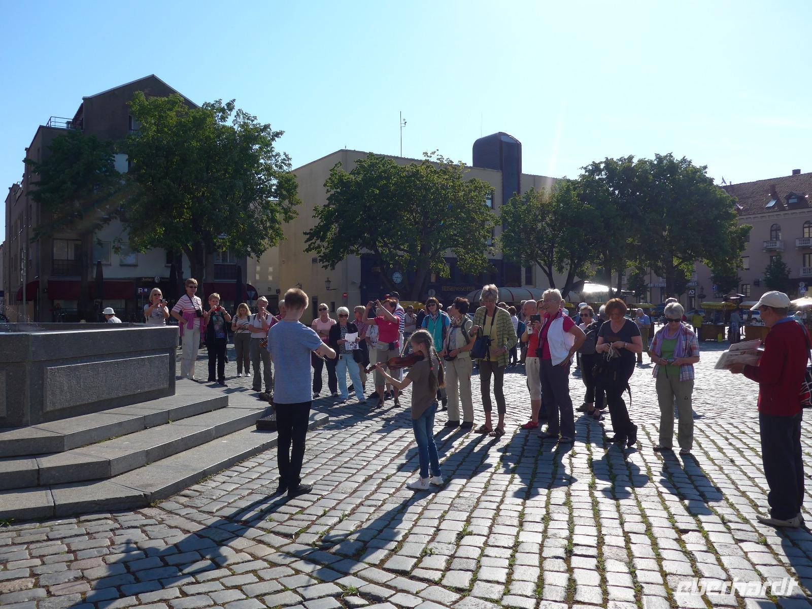 Gleich nach dem Frühstück fuhren wir ins Zentrum von Kleipeda zur Stadtbesichtigung. Wir gingen zu Fuß zum Simon-Dach-Brunnen und dort spielten 2 sehr talentierte Kinder auf der Geige für uns das "Ännchen von Tharau" und für unser Geburtstagskind noch ein extra Ständchen. Am Ende des 2. Weltkrieges war Kleipeda fast vollständig zerstört und so gab es heute nur noch sehr wenige historische Gebäude zu bewundern. Wir spazierten durch die Gassen, an der Dane entlang und sahen u.a. noch ein altes Speicherhaus, ein Segelschulschiff, was heute als Gaststätte genutzt wird und das Denkmal, das 2003 anläßlich des 80. Jahrestages der Vereinigung Litauens mit dem Memelgebiet errichtet wurde. Über die Lindenstraße fuhren wir zum Skulpturenpark und zum Bahnhof.