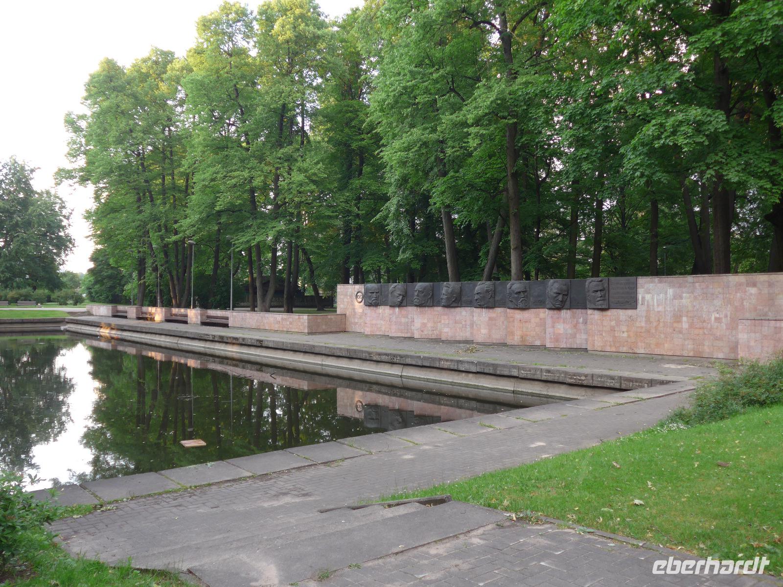 Wir erlebten eine richtige Großstadt mit viel Verkehr bis wir unser Hotel IBIS STYLES erreichten. Das Restaurant war im 12. Stock und von dort hatten wir eine grandiose Sicht auf die Stadt. Nach dem Abendessen machten sich einige aus unserer Gruppe noch auf zu einem Spaziergang. Bis ins Stadtzentrum war es zu Fuß zu weit. Aber gleich in der Nähe des Hotels fanden wir einen schönen Park mit einem Denkmal zum 100. Jahrestages des Sängerfestes, was aller 5 Jahre stattfindet. An einer Wand waren 8 berühmte Komponisten dargestellt, die durch die Sängerfeste bekannt geworden waren.