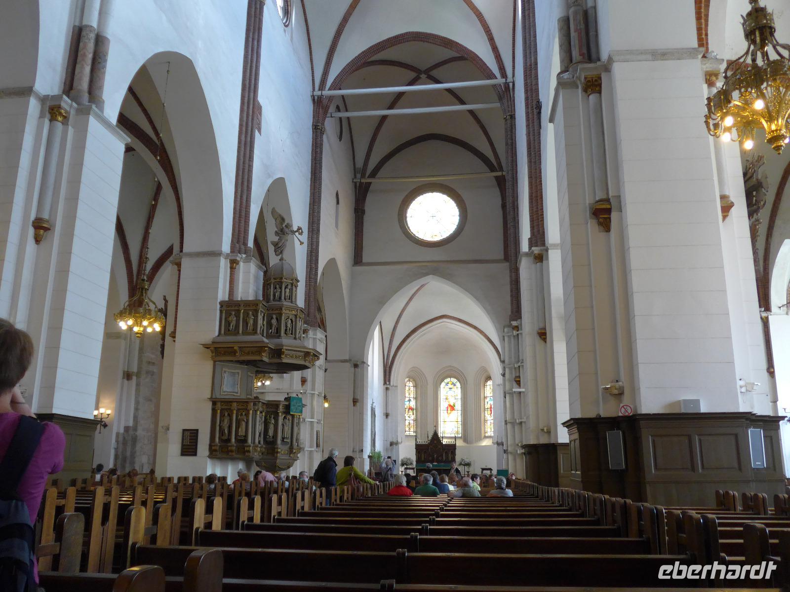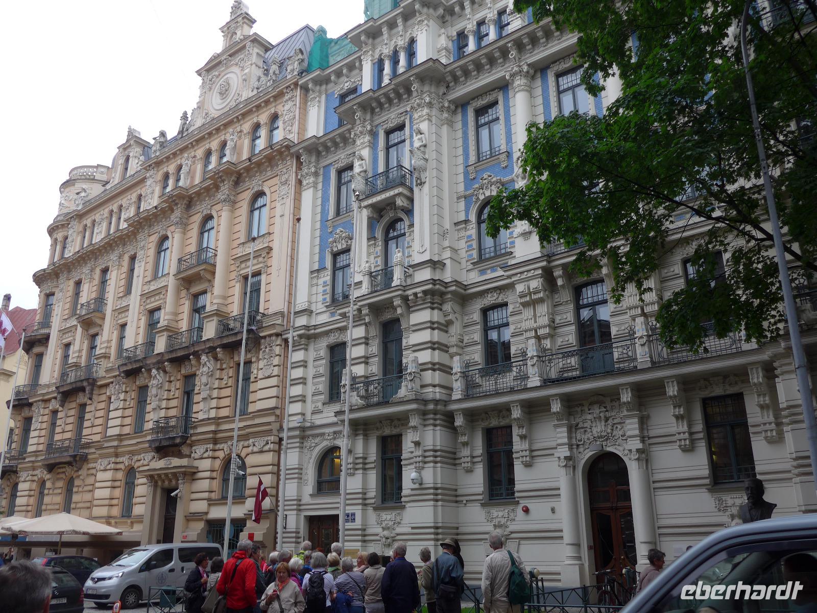 Unsere Stadtbesichtigung in Riga begannen wir im Viertel mit den vielen Jugendstilhäusern. Vor dem Jugendstil wurde im Historismus gebaut mit symmetrischen Fronten. Wir liefen durch die Elizabeth- und Albertstrasse mit den schönsten Häusern. Danach brachte uns der Bus zur Freiheitssäule und von dort gingen wir zu Fuß in den Park, zum Denkmal für Bürgermeister George Armitstead, zur Oper, zum Brunnen, dessen Vorbild in Görlitz steht, zum Livenplatz mit großer und kleiner Gilde, zum Denkmal "Bremer Stadtmusikanten", zur Petrikirche und zum Rathausplatz mit dem Schwarzhäupterhaus. Im Zentrum trafen wir eine Eberhardt Busgruppe und gemeinsam besuchten wir 12 Uhr im Dom das Orgelkonzert. Aigars Reinis spielte für uns Werke von Bach, Schumann und Widor - ein unvergeßliches Erlebnis. Danach besuchten wir den Kreuzgang des Domes. Während der Mittagspause stärkten wir uns im LIDO-Restaurant und 14 Uhr trafen wir uns wieder.