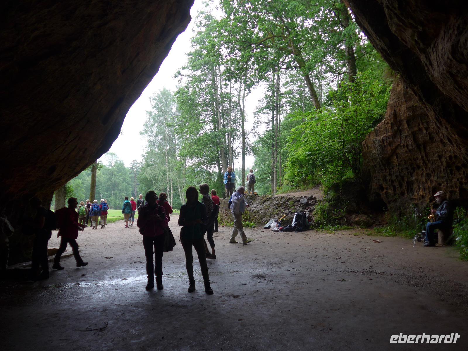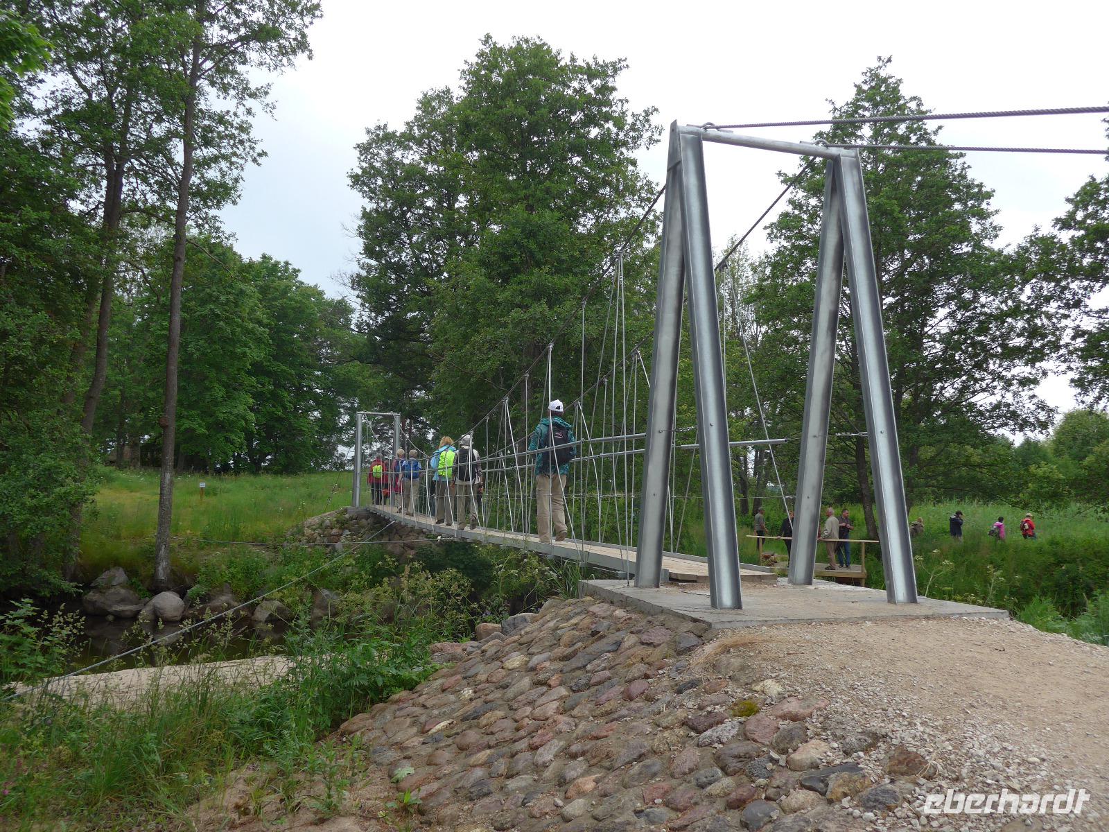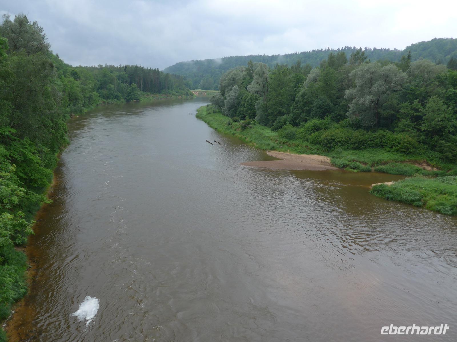 Über die 13 km lange Freiheitsstrasse verließen wir Riga vorbei an alten Fabriken, wo einst u. a. Fahrräder und die berühmte Minox-Kamera produziert wurden. Unsere erste Station im Gauja-NP war Sigulda - die Wintersportstadt Lettlands. Auf der Bob- und Schlittenbahn trainieren berühmte Sportler und auf den Hängen kann man Ski fahren. Wir begannen unsere Wanderung an der Seilbahnstation, die beide Seiten der Gauja verbindet. Auf einem gut hergerichteten Weg gingen wir steil hinunter ins Tal der Gauja und am Fluß entlang bis zur Gutmannshöhle. Imposante, bis zu 80 m hohe Buntsandsteinwände säumten den Weg. Die Höhle selbst ist ein Mundloch und diente als Lager und Versteck. Die Wände sind über die Jahrhunderte mit Wappen und Inschriften "verziert" worden. Mit dem Bus fuhren wir nach der Besichtigung hinauf nach Turaida.