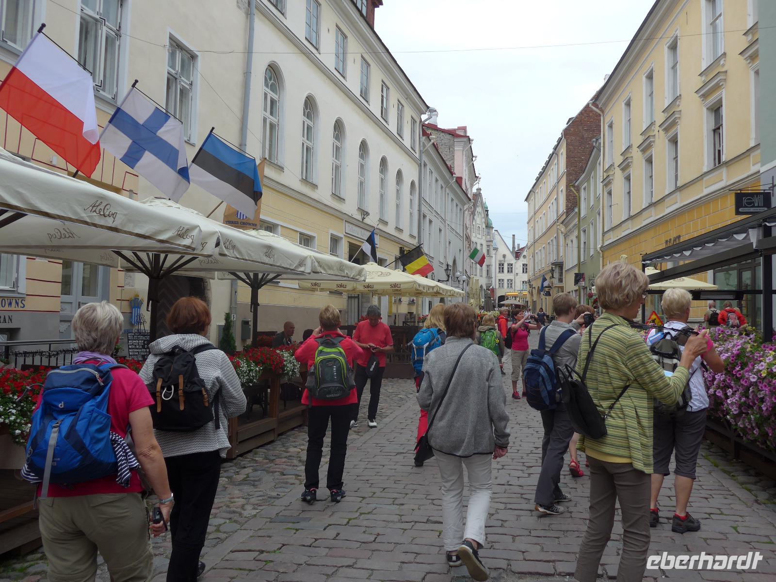 Die estnische Hauptstadt ist sehr beliebt bei Kreuzfahrern und wenn mehrere Schiffe anlegen auch sehr voll. Am späten Nachmitag spürten wir davon nichts mehr und hatten die Stadt fast für uns allein. Es war sehr entspannt, durch die Gassen zu laufen und die wichtigsten Gebäude zu sehen. Unsere Route führte über die Viru Strasse hinein in die Altstadt, Katharinengasse, Olde Hanse, Marktplatz, Heiliggeistkirche, Kalev-Marzipan, über langes Bein in die Oberstadt, Deutsche Botschaft, Aussichtsterrassen, Sitz des Parlaments, Dom, Alexander Newski Kirche zur Stadtmauer am langen Herman, dem Turm, wo die Fahne Estlands weht. Gleich dahinter befand sich unser Hotel Park INN. Zum Abendessen konnten wir erstmals von einem reichhaltigen Buffet wählen.