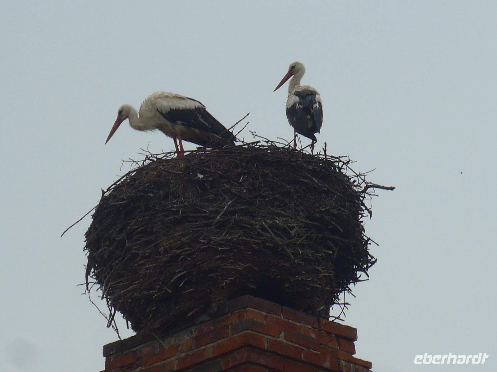 Vorbei am Gutshof Sagadi erreichten wir Palmse. Beim ehemaligen Gutshof des Barons Pahlen gab es ein Informationszentrum über den Lahemaa-NP und einen eindrucksvollen Film anzuschauen. Die Innenbesichtigung des Herrenhauses gestaltete Eduard sehr interessant und so konnten wir in die Kleidung von damals schlüpfen und Aija und Eduard versuchten sich beim Tango Tanzen. Im Keller ist noch eine komplett eingerichtete Küche zu besichtigen und im Weinkeller nebenan kann man die Obstweine aus Estland probieren. Ich spendierte für meine Gäste einen Moosbeerwein und alle waren erstaunt über die gute Qualität des Weines. Das Herrenhaus grenzt an einen wunderschönen Park mit Schwanenteich und Palmenhaus. In der ehemaligen Schnapsbrennerei wurde ein kleines aber feines Hotel mit 27 Zimmern eingerichtet. Beim Gutshof konnten wir dann endlich auch ein Storchennest ganz aus der Nähe betrachten und fotografieren.