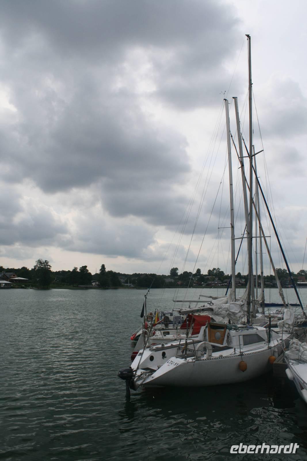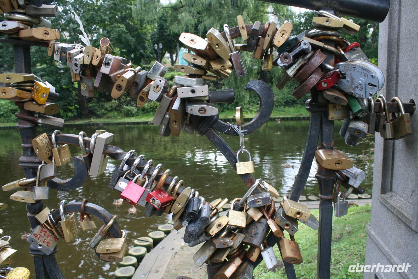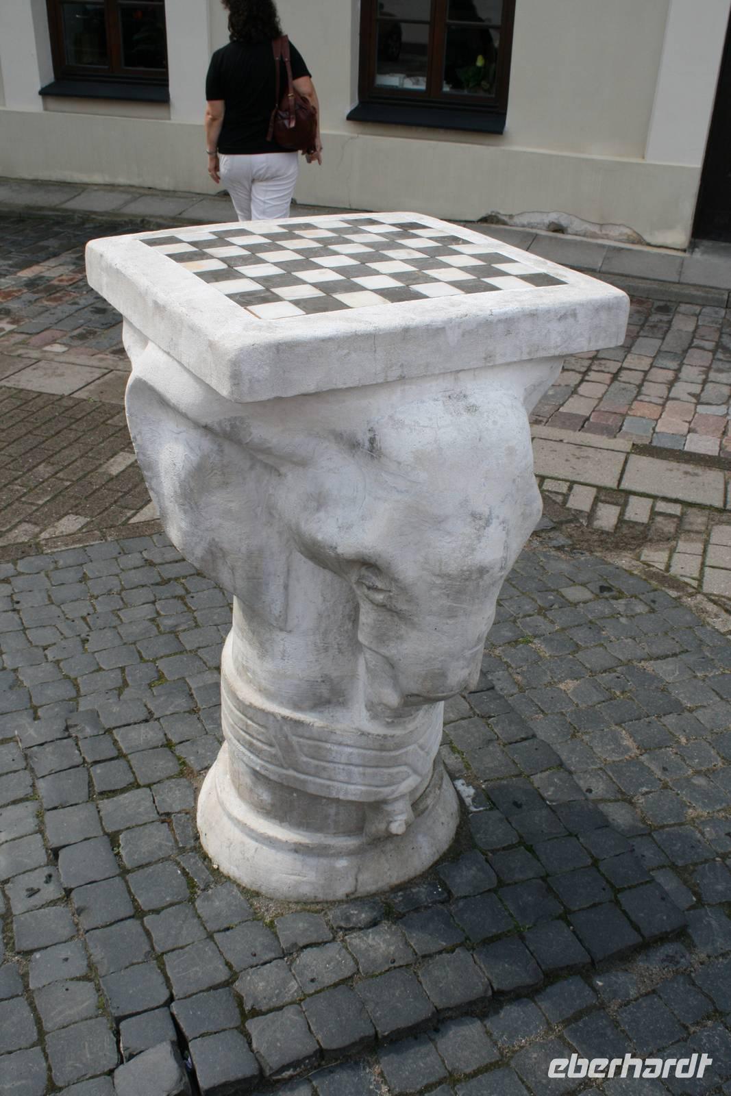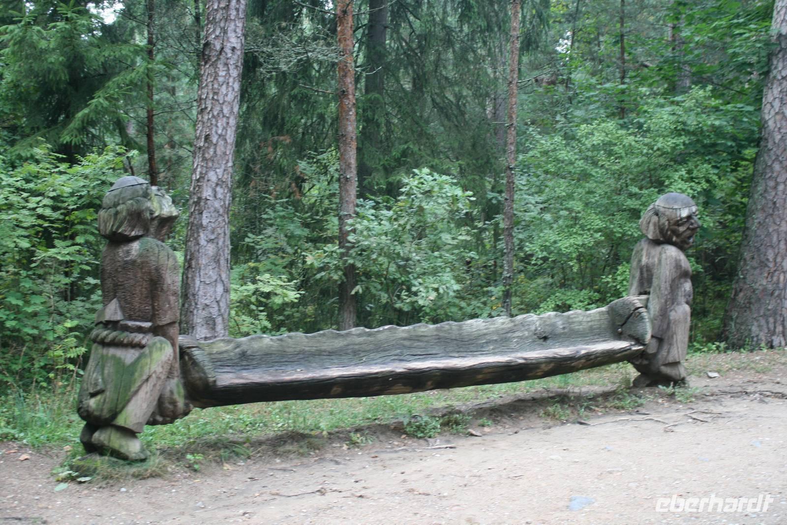 Heute verließen wir unser Hotel und machten uns auf den Weg nach Klaipeda, auch als Memel bekannt. Unterwegs besuchten wir Kaunas, die zweitgrößte Stadt Litauens. Von einem Aussichtspunkt bekamen wir einen schönen Eindruck der Stadt und dem Fluss Memel, danach erkundeten wir die Innenstadt zu Fuß und besuchten die Vytautas-Kirche am Ufer der Memel. Am Rathausplatz, mit seinem skurrilen Kunstwerk aus weißen Fahrrädern, die geschmückt mit Blumen an einer großen Säule hingen, machten wir unsere Mittagspause. In den kleinen Straßen gab es dutzende von Cafés und Restaurants, in denen leckere Kleinigkeiten angeboten wurden. Später ttrafen wir vor der gewaltigen aber stark verfallenen St. Georgskirche einen Franziskanermönch und spazierten an der großen Burg vorbei. Da gerade Wochenende war, sahen wir zahlreiche Hochzeitsgesellschaften in festlicher Kleidung, die die halbe Innenstadt für sich erobert zu haben schienen. Weiter ging die Fahrt nach Klaipeda, wo wir das berühmte Ännchen von Tharau besuchten und in den umliegenden Straßen einen kurzen Spaziergang mit Regina unternahmen. Leider zwang uns der Regen früh zurück in den Bus und so fuhren wir schließlich zu unserem Hotel im Stadtzentrum, wo wir uns - nachdem wir die etwas eigene Technik der Fahrstühle begriffen hatten - nach diesem ereignisreichen Tag ausruhen und zu Abend essen konnten.