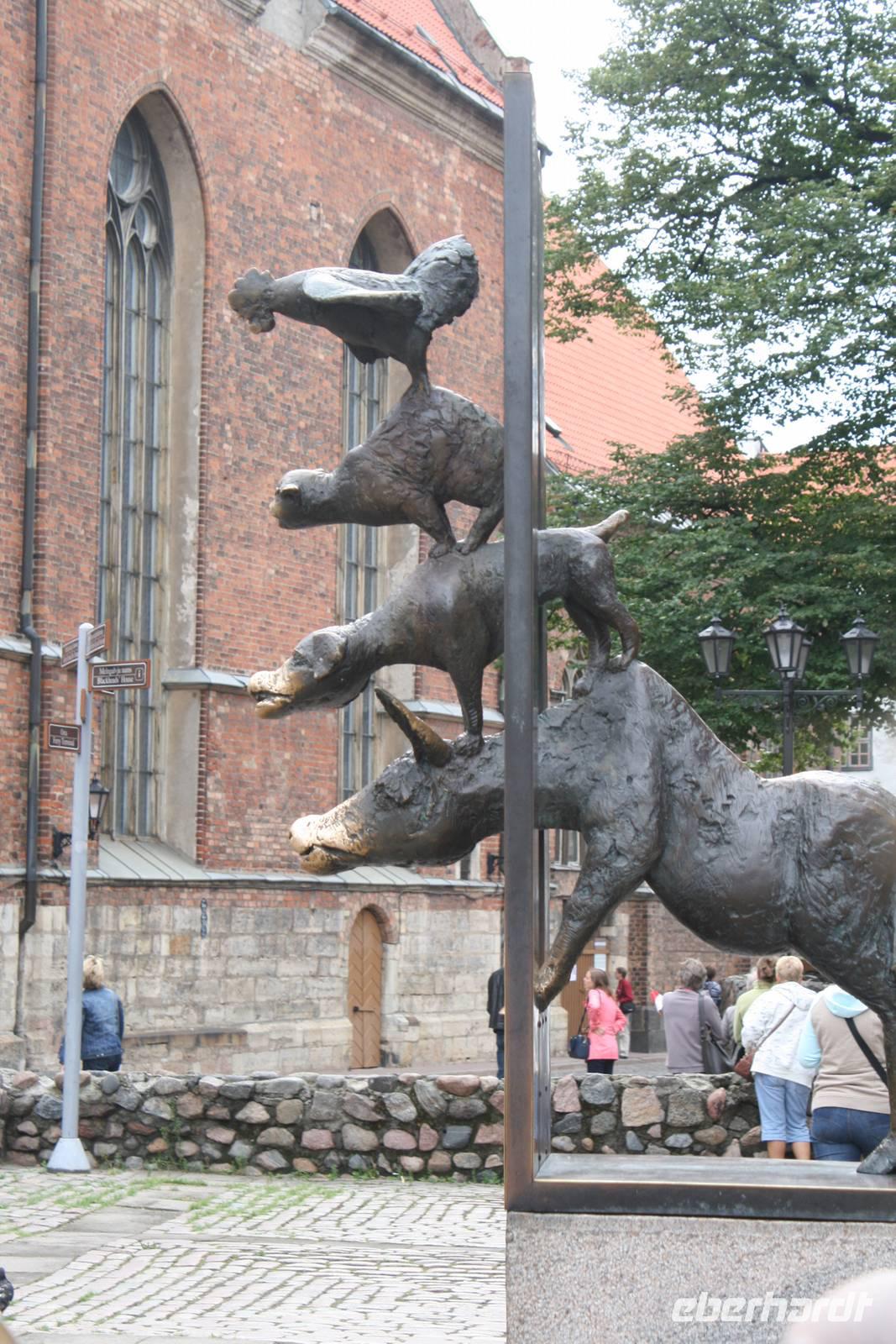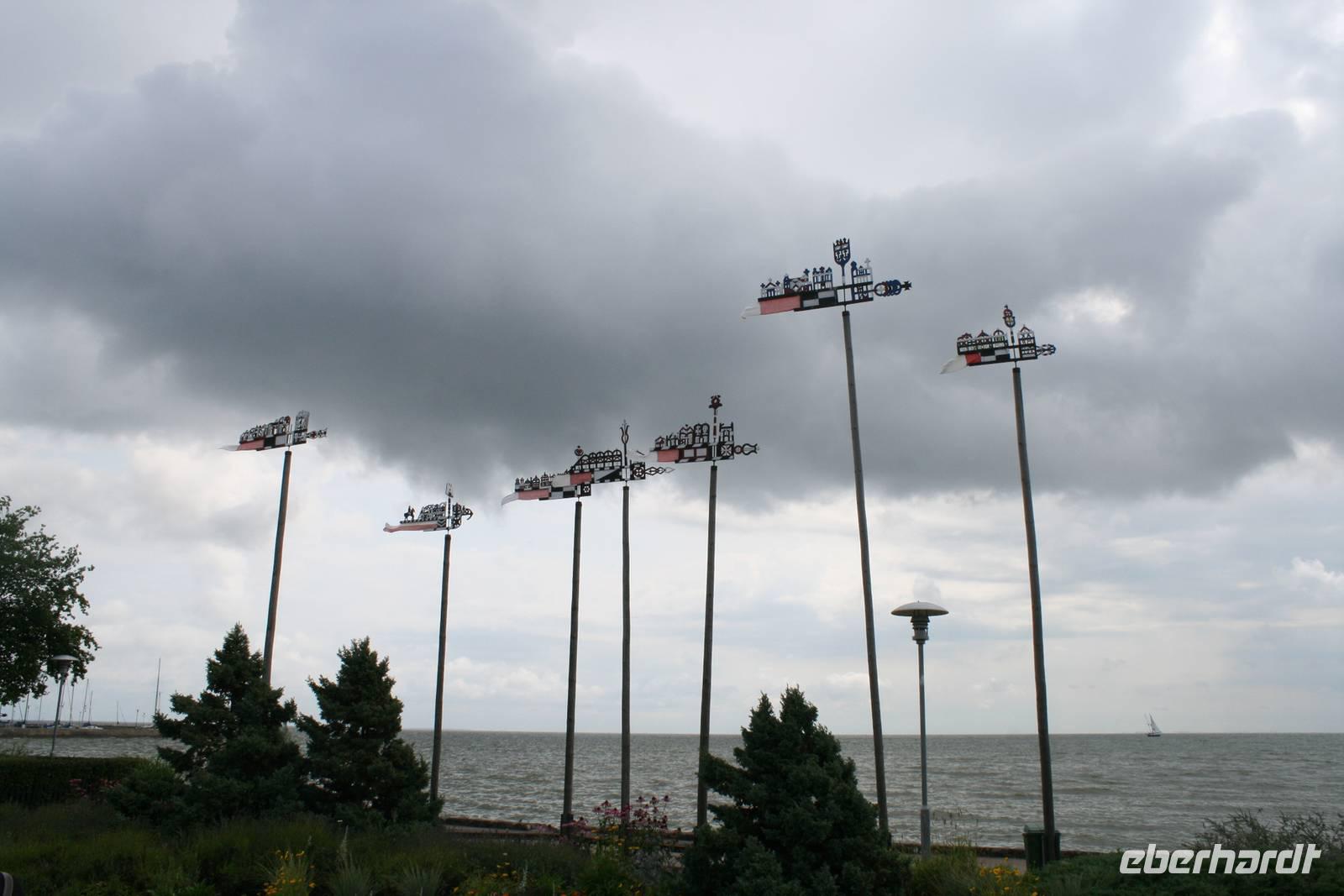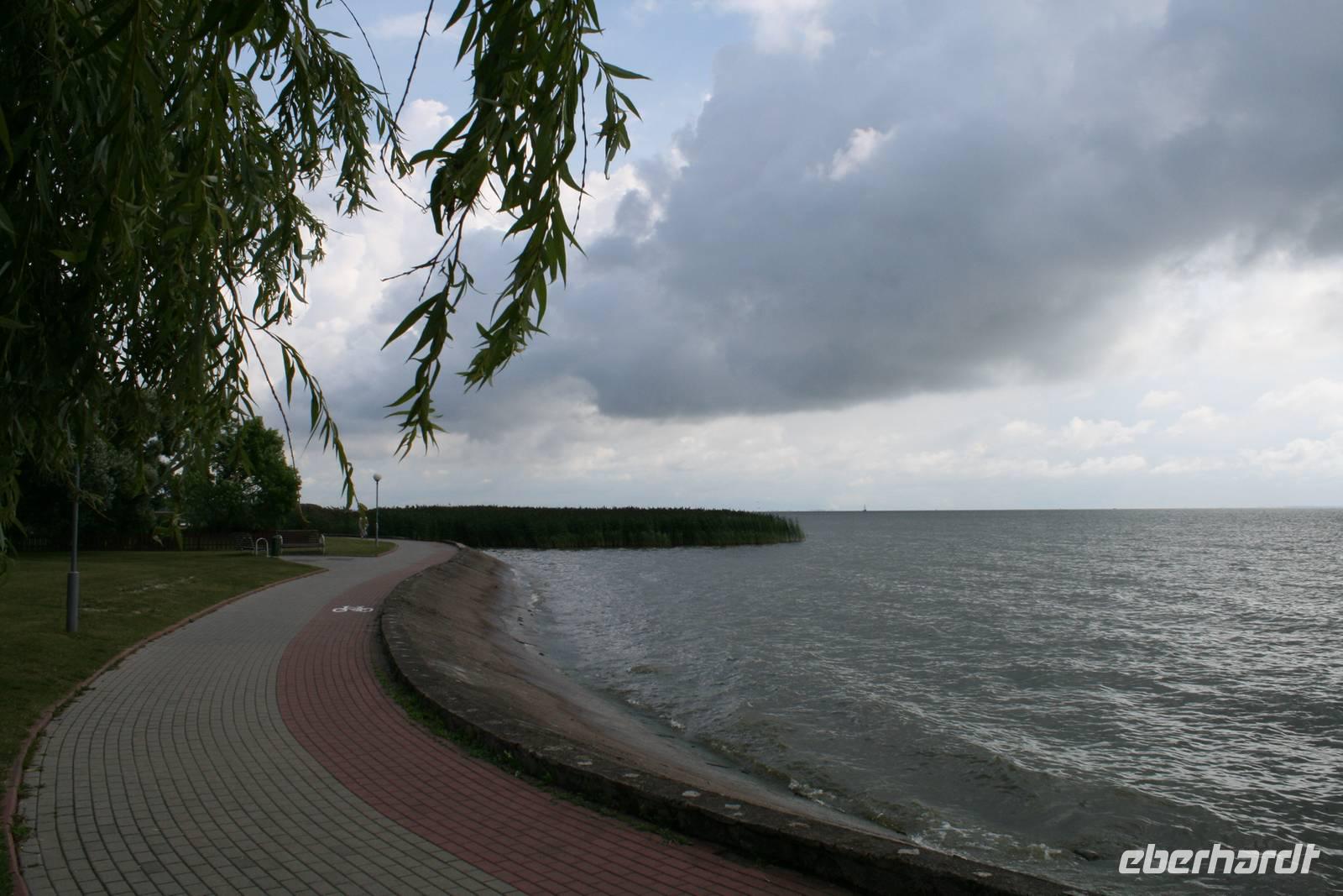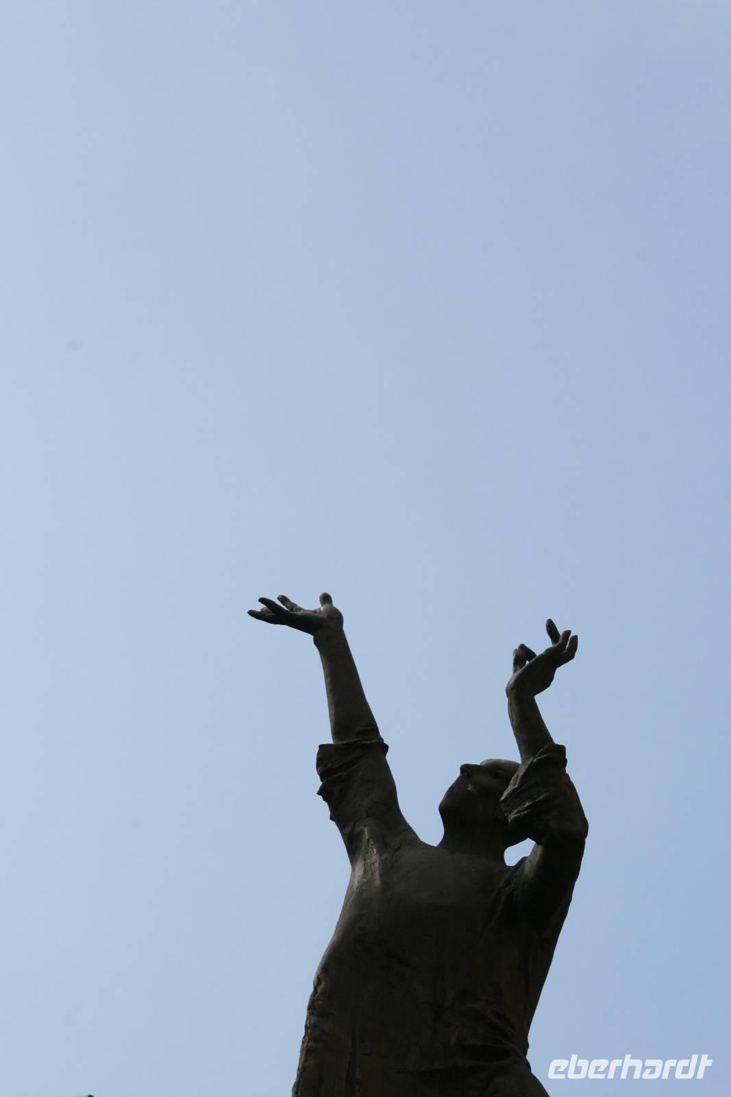 Heute verließen wir unser Hotel und machten uns auf den Weg nach Klaipeda, auch als Memel bekannt. Unterwegs besuchten wir Kaunas, die zweitgrößte Stadt Litauens. Von einem Aussichtspunkt bekamen wir einen schönen Eindruck der Stadt und dem Fluss Memel, danach erkundeten wir die Innenstadt zu Fuß und besuchten die Vytautas-Kirche am Ufer der Memel. Am Rathausplatz, mit seinem skurrilen Kunstwerk aus weißen Fahrrädern, die geschmückt mit Blumen an einer großen Säule hingen, machten wir unsere Mittagspause. In den kleinen Straßen gab es dutzende von Cafés und Restaurants, in denen leckere Kleinigkeiten angeboten wurden. Später ttrafen wir vor der gewaltigen aber stark verfallenen St. Georgskirche einen Franziskanermönch und spazierten an der großen Burg vorbei. Da gerade Wochenende war, sahen wir zahlreiche Hochzeitsgesellschaften in festlicher Kleidung, die die halbe Innenstadt für sich erobert zu haben schienen. Weiter ging die Fahrt nach Klaipeda, wo wir das berühmte Ännchen von Tharau besuchten und in den umliegenden Straßen einen kurzen Spaziergang mit Regina unternahmen. Leider zwang uns der Regen früh zurück in den Bus und so fuhren wir schließlich zu unserem Hotel im Stadtzentrum, wo wir uns - nachdem wir die etwas eigene Technik der Fahrstühle begriffen hatten - nach diesem ereignisreichen Tag ausruhen und zu Abend essen konnten.
