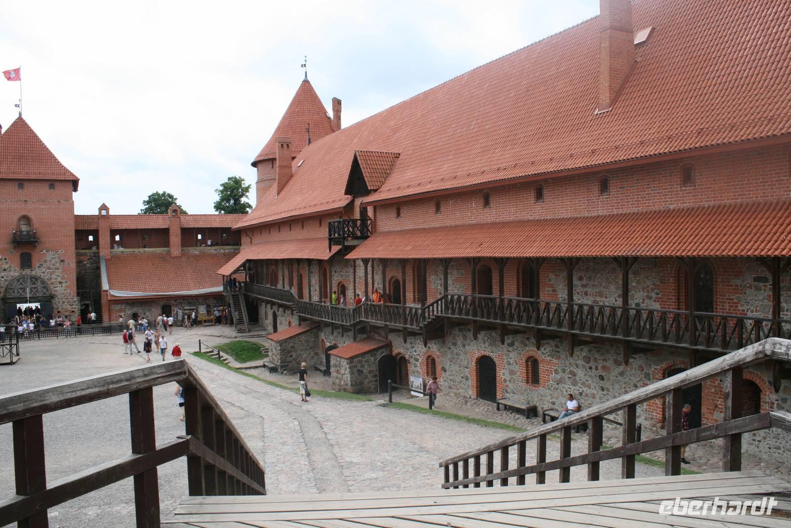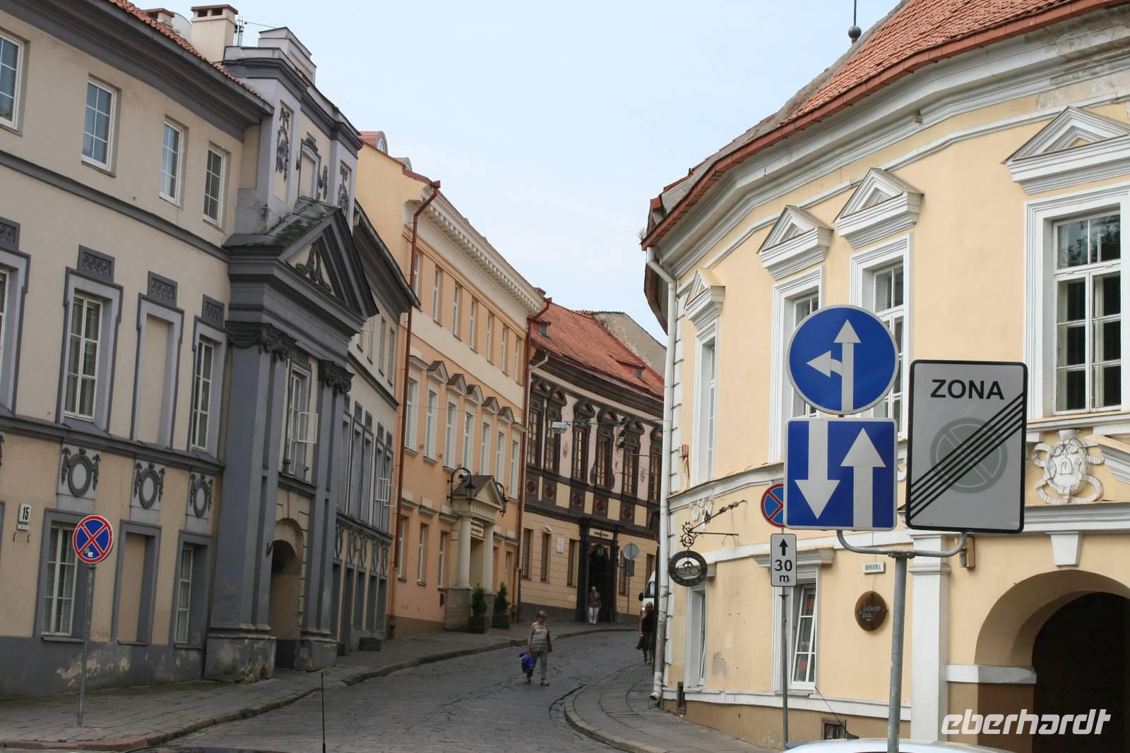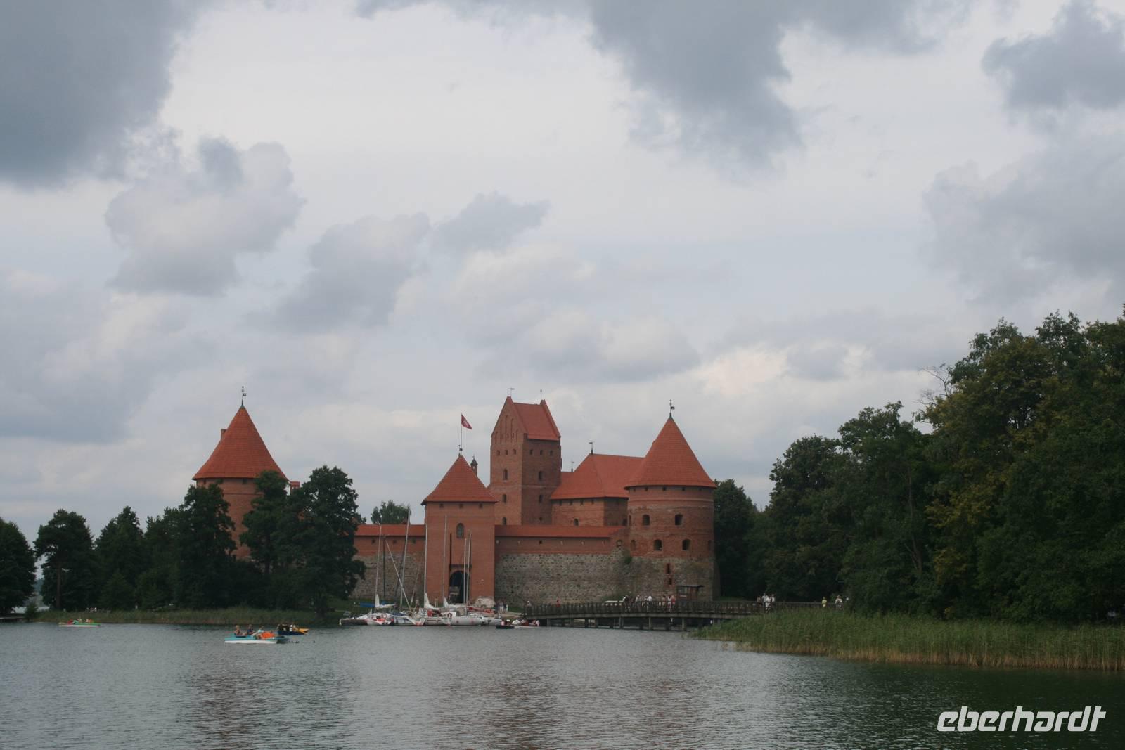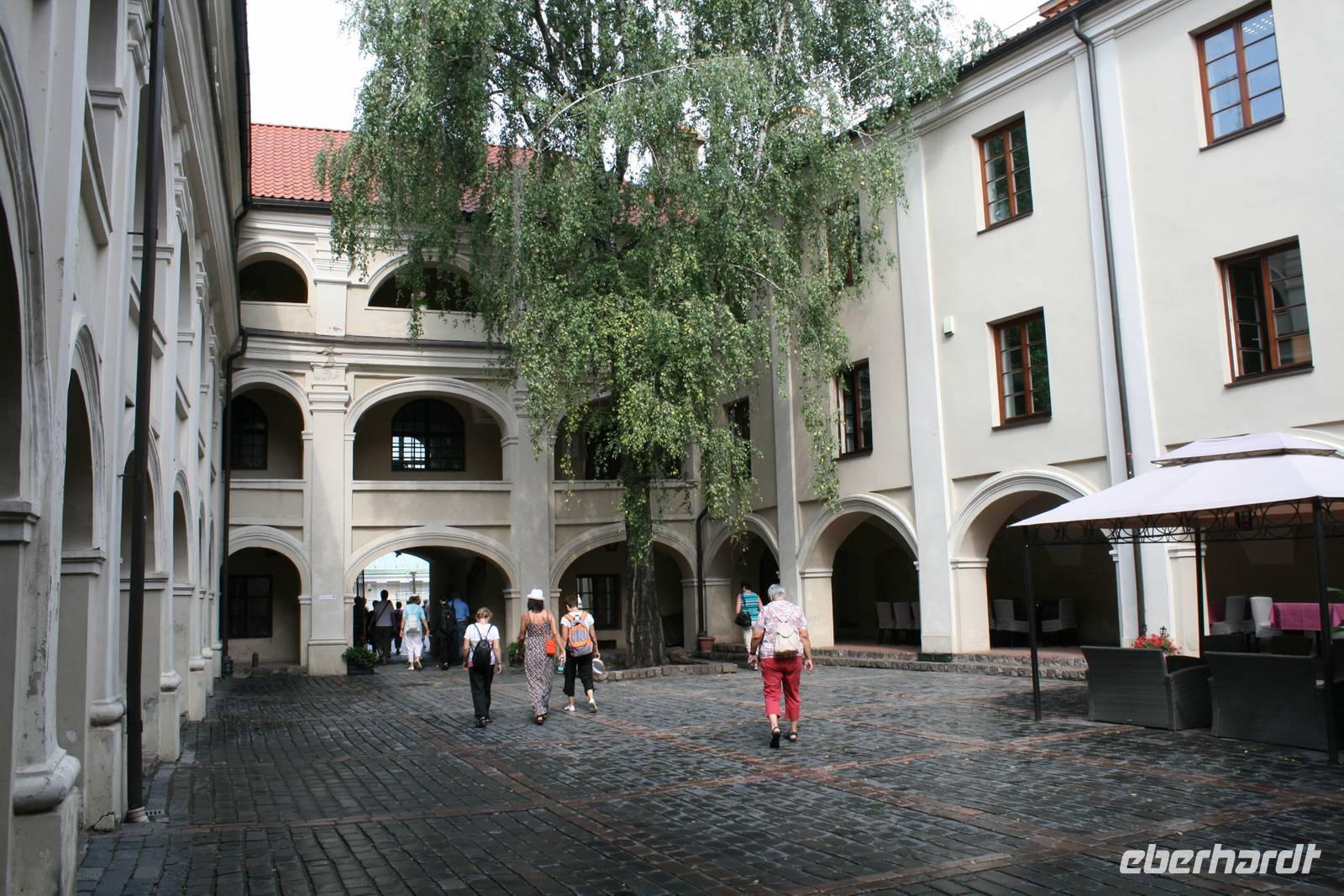 Unser erster Tag in Litauens Hauptstadt begann mit einer Stadtrundfahrt. Regina zeigte uns die Peter- und Paulkirche mit ihren barocken Stuckelementen. Außerdem besuchten wir die große, von außen eher griechisch anmutende Kathedrale und besichtigten dort den reich dekorierten Barock-Altar. Weiter ging es zum Gelände der Universität bis zum Präsidentenpalast. Wir schlenderten durch die Literatengasse mit den vielen bunten Kacheln, die in die Wände eingelassen sind und an große Schriftsteller erinnern und machten einen Stopp an der St. Annen-Kirche, einem architektonischem Beispiel der Backsteingotik. Auf dem Rathausplatz hatten wir Zeit, in eines der zahlreichen Restaurants oder Bistros einzukehren, um einheimische Spezialitäten wie zum Beispiel Rote-Beete-Suppe zu probieren. Danach fuhren wir nach Trakai und besichtigten die berühmte Wasserburg, die auf dem See zu schweben scheint. Regina führte uns treppauf treppab durch die verschiedenen Räume mit ihren vielfältigen Ausstellungsstücken aus der bewegten Geschichte des Bauwerks. Auf den Rückweg hatten wir Zeit, am See entlangzuschlendern und uns in den vielen Geschäften der Uferpromenade Souveniers aus Leinenstoff oder Bernstein zu kaufen. Wer wollte, konnte auch ein leckeres Eis essen, denn die Sonne schien herrlich. Zurück in Vilnius, aßen wir im luxuriösen Neringa-Restaurant zu abend und spazierten in der warmen Abendluft zurück zum Hotel.