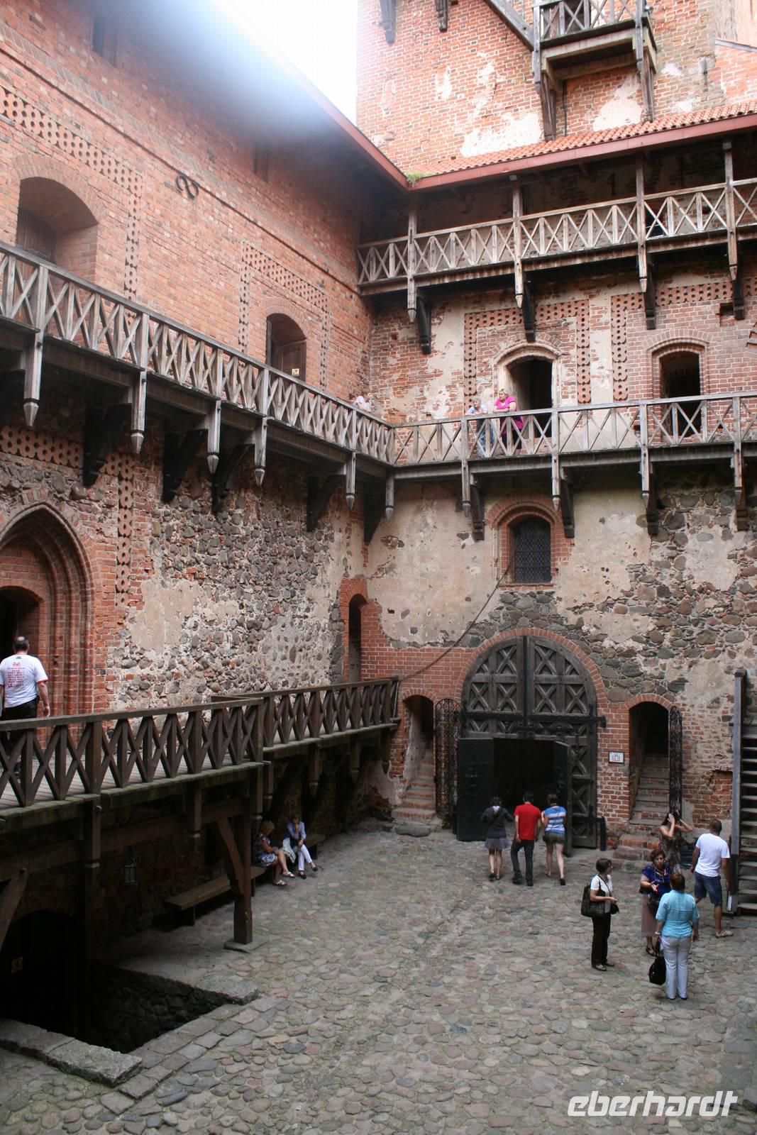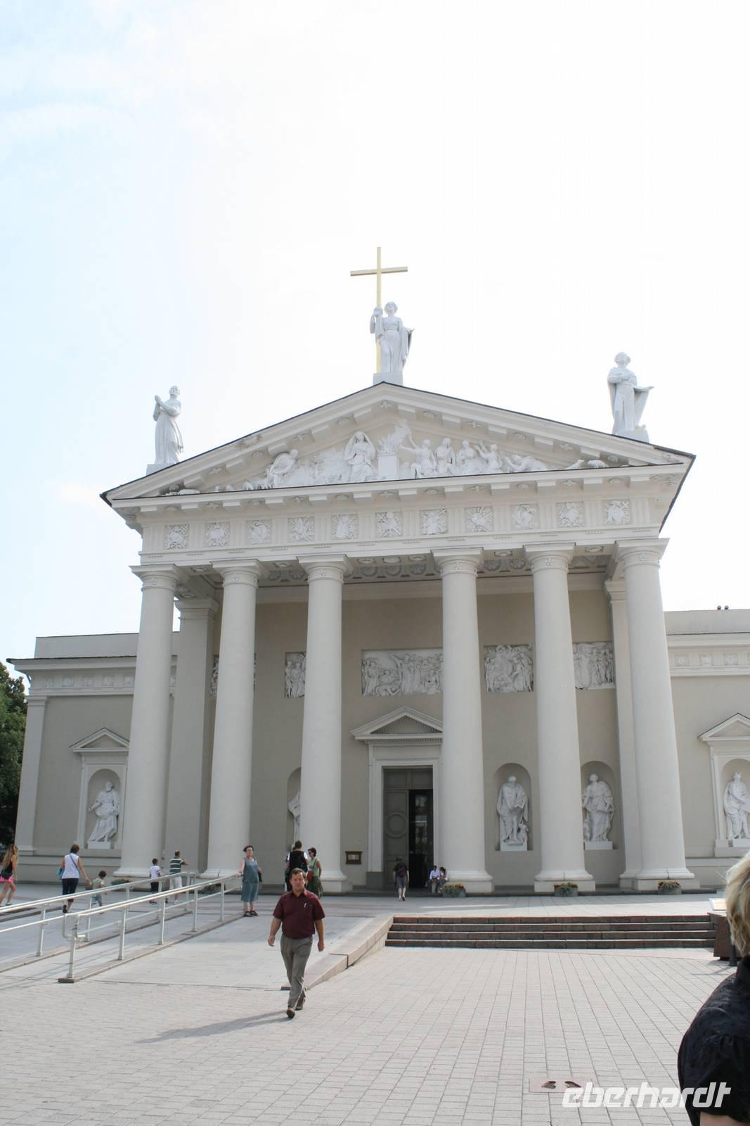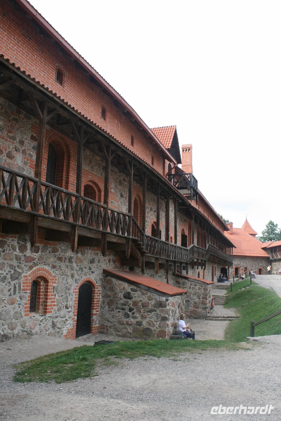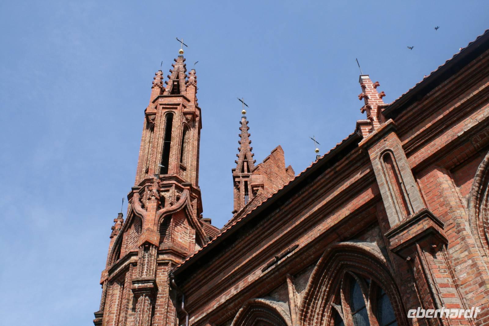 Unser erster Tag in Litauens Hauptstadt begann mit einer Stadtrundfahrt. Regina zeigte uns die Peter- und Paulkirche mit ihren barocken Stuckelementen. Außerdem besuchten wir die große, von außen eher griechisch anmutende Kathedrale und besichtigten dort den reich dekorierten Barock-Altar. Weiter ging es zum Gelände der Universität bis zum Präsidentenpalast. Wir schlenderten durch die Literatengasse mit den vielen bunten Kacheln, die in die Wände eingelassen sind und an große Schriftsteller erinnern und machten einen Stopp an der St. Annen-Kirche, einem architektonischem Beispiel der Backsteingotik. Auf dem Rathausplatz hatten wir Zeit, in eines der zahlreichen Restaurants oder Bistros einzukehren, um einheimische Spezialitäten wie zum Beispiel Rote-Beete-Suppe zu probieren. Danach fuhren wir nach Trakai und besichtigten die berühmte Wasserburg, die auf dem See zu schweben scheint. Regina führte uns treppauf treppab durch die verschiedenen Räume mit ihren vielfältigen Ausstellungsstücken aus der bewegten Geschichte des Bauwerks. Auf den Rückweg hatten wir Zeit, am See entlangzuschlendern und uns in den vielen Geschäften der Uferpromenade Souveniers aus Leinenstoff oder Bernstein zu kaufen. Wer wollte, konnte auch ein leckeres Eis essen, denn die Sonne schien herrlich. Zurück in Vilnius, aßen wir im luxuriösen Neringa-Restaurant zu abend und spazierten in der warmen Abendluft zurück zum Hotel.