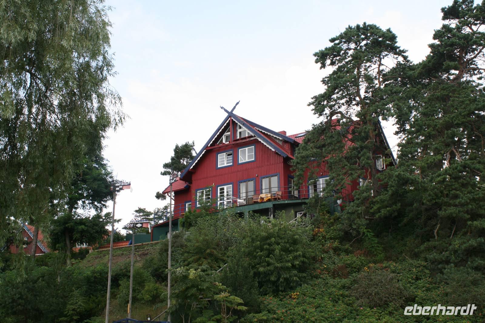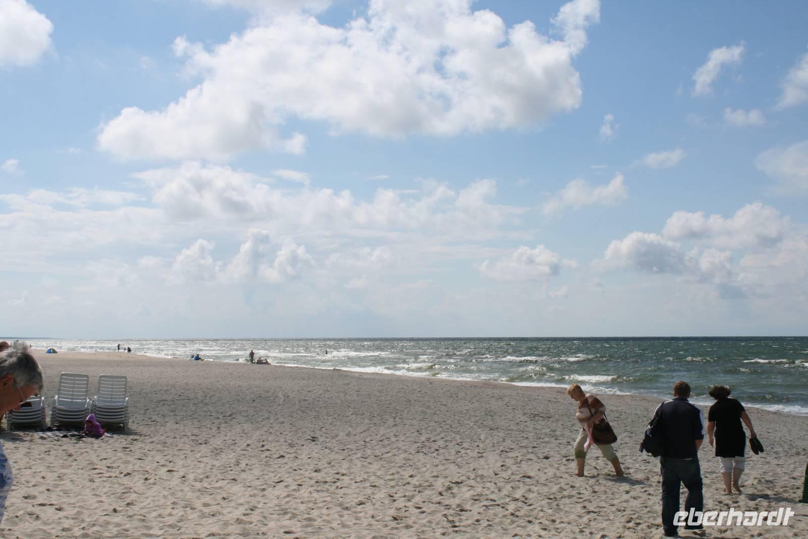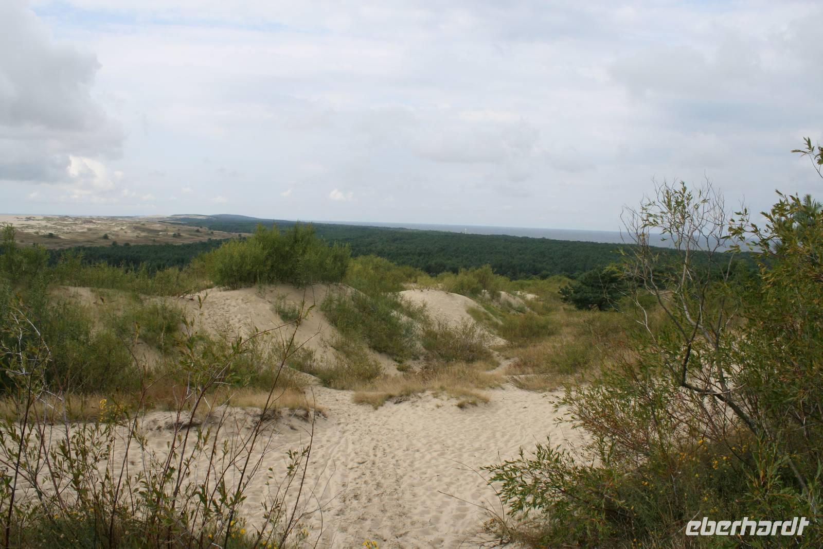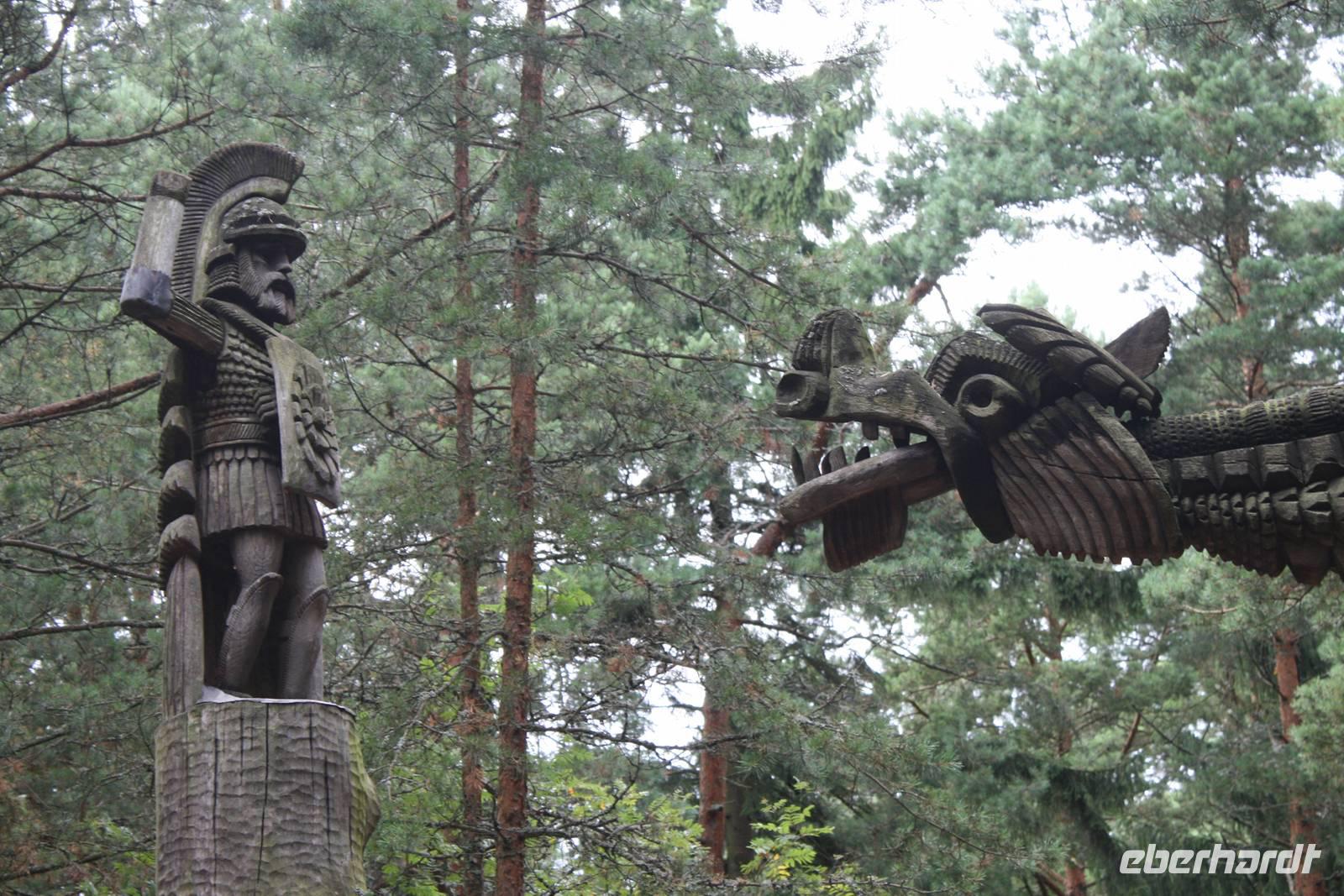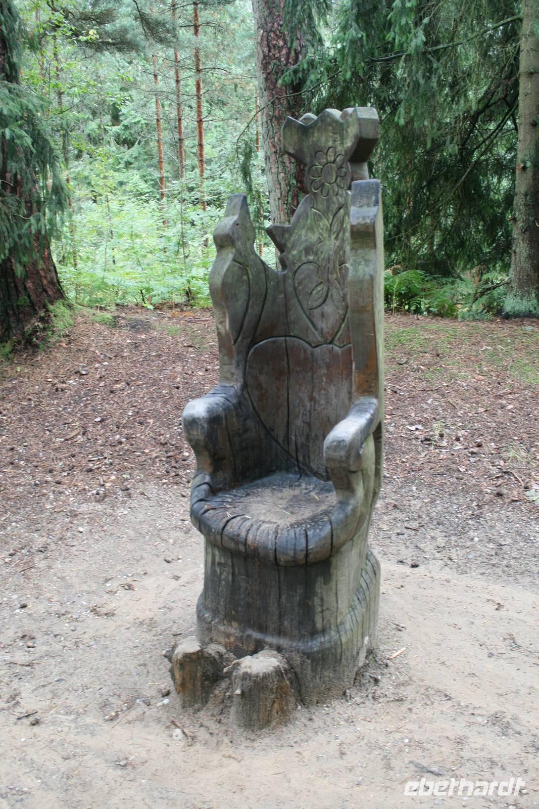 Von Klaipeda aus fuhren wir mit Bus und Fähre an die Küste zur Kurischen Nehrung. Einen ersten Stopp legten wir an der großen Wanderdüne ein und atmeten die frische Meerluft. Natürlich fehlten auch hier nicht die Händler mit ihren Bernstein-Waren am Busparkplatz. Weiter ging unsere Reise nach Nidden, wo wir zuerst ein Souvenier-Geschäft besuchten, wo uns die Logik und der Aufbau der regional typischen Kurenwimpel erklärt wurde. Diese geben anhand von Farben und geschnitzten Symbolen Auskunft über die Herkunft, den Beruf und Familienstand des jeweiligen Hausbesitzers. Wir besuchten das Thomas-Mann-Haus und erhielten Einblich in die lebensweise des berühmten Schriftstellers. Nach einem gemütlichen Spaziergang am Ufer entlang konnte jeder etwas Freizeit individuell in dem romantischen Fischerort verbringen und zum Beispiel geräucherten Fisch probieren oder die imposamte Kunstflugschau am Ufer bewundern. Als wir uns alle sattgegessen hatten, nutzten wir die Nachmittagssonne für einen Halt am Sandstrand. Einige Mutige gingen sogar in den doch recht hohen Wellen der Ostsee baden, während der Rest der Gruppe sich in der Sonne entspannte und die Füße in den Sand steckte. Wer noch Lust dazu hatte, konnte mit auf eine kleine Wanderung über den Hexenberg kommen, wo man gewaltige Holzschnitzereien mit Figuren aus der litauischen Sagenwelt bewundern kann. Natürlich konnte man auch nach Herzenlust an der Promenade entlangspazieren. Alvidas holte uns schließlich mit dem Bus ab und brachte uns mit seiner üblichen sicheren Fahrweise über die Fähre zurück ins Hotel.