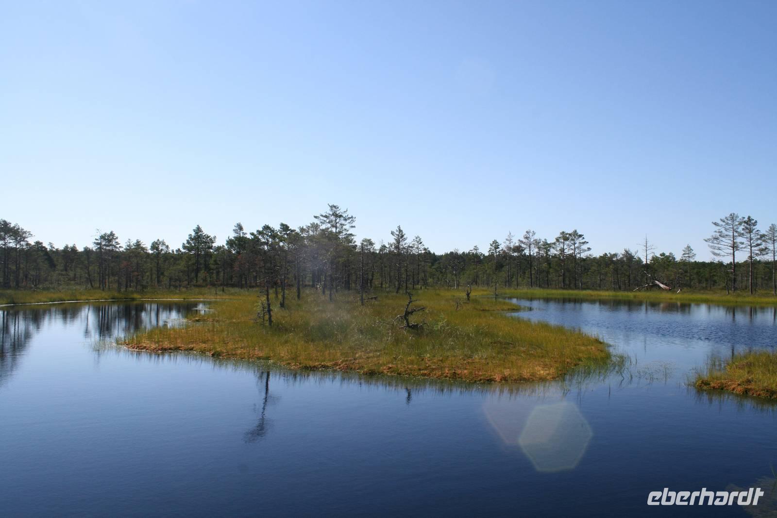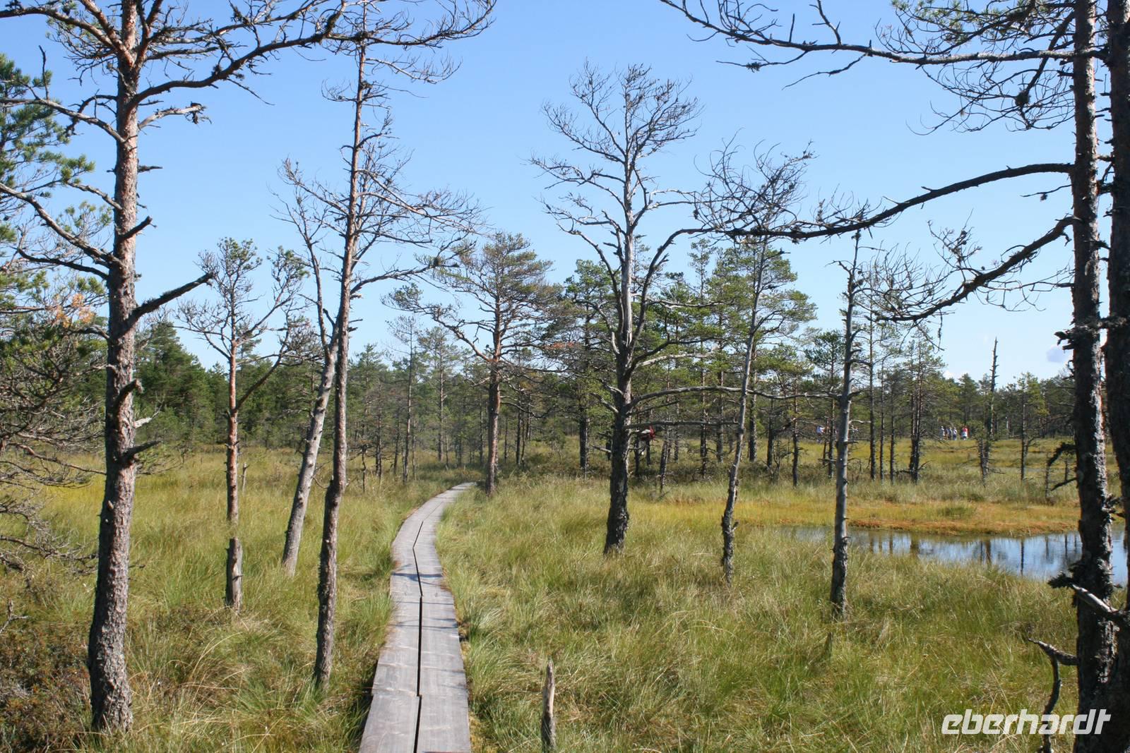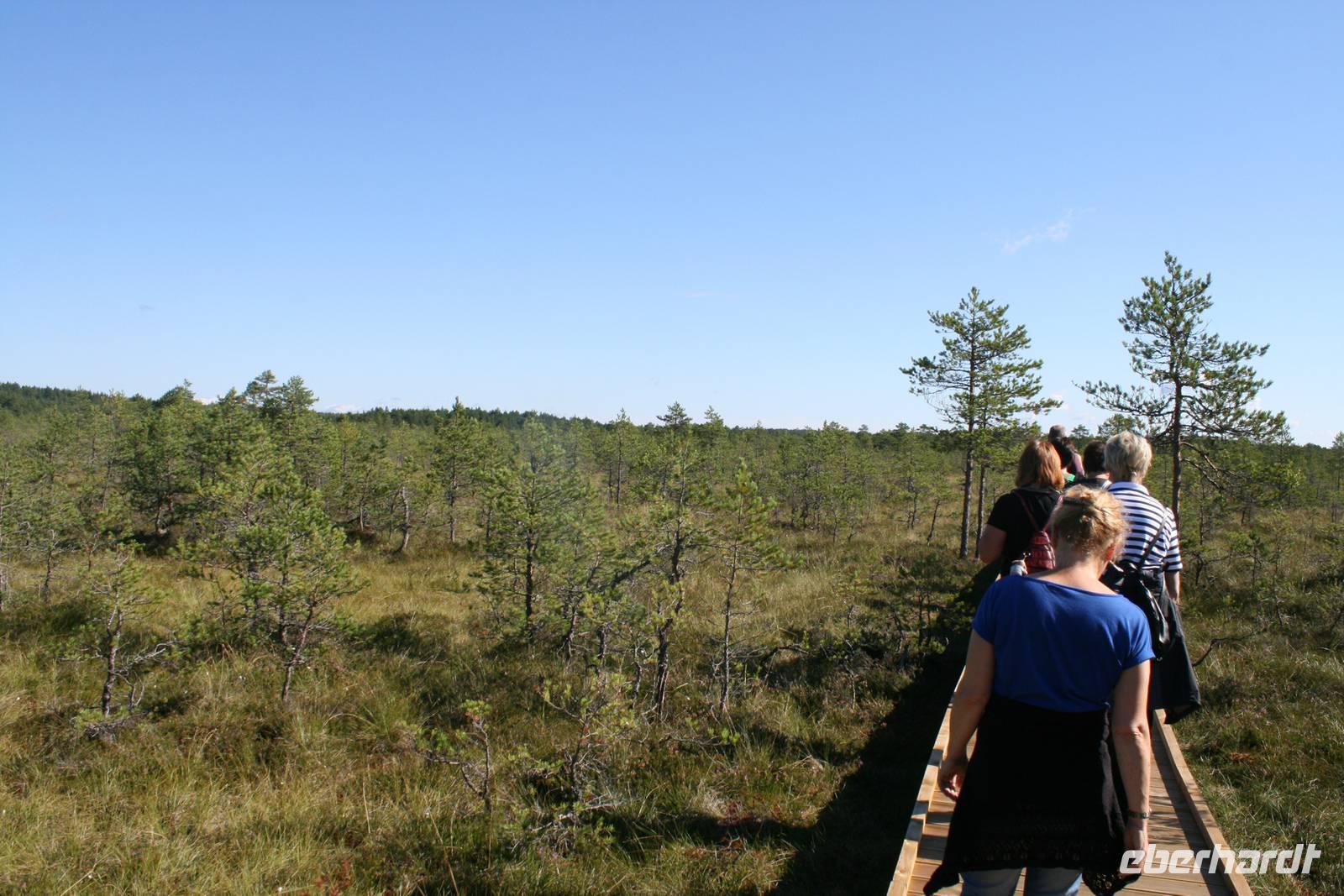 Unser letzter Reisetag brachte mit Reiseleiter Eduard noch einmal frischen Wind in die Gruppe. Er führte uns in den Laheema-Nationalpark, um uns die weite Moorlandschaft in Estlands Norden zu zeigen. Unterwegs besichtigten wir den Gutshof Palmse mit dem Palmenhaus, dem herrlichen Ziergarten und dem opulent eingerichteten Herrenhaus. Auf Brücken und schmalen Holzplanken ging es schließlich zu Fuß durch das Moor. Die verwachsenen Bäumchen und spiegelglatten Wasserflächen inmitten der Moose und flechten zeigten uns eine völlig fremde Natur, die es in unseren Gefilden so nirgends gibt. Nach dem langen Spaziergang gab es eine kräftige Stärkung: Wir kehrten in eine Dorfschänke im Fischerdorf Altja ein und wurden vom Wird mit einem köstlichen 3-Gang-Menü verwöhnt. Ein besonderes Highlight war das Dessert - eingeweichtes Schwarzbrot mit saurer Sahne und Beerengrütze - eine echte regionale Spezialität. Nach dem Essen spazierten wir zum nahegelegen Strand, der anders als in Litauen mit vielen schroffen Felsen gespickt war. Wir probierten süßen Johannisbeerwein und fuhren schließlich gemeinsam mit Eduard zurück nach Tallinn, wo wir den letzten Abend in der Hauptstadt noch einmal individuell verbringen konnten. Genügend Möglichkeiten zum Einkaufen, Abendessen und spazieren bietet die Stadt zweifellos!