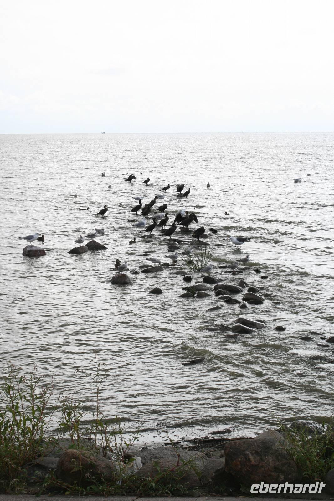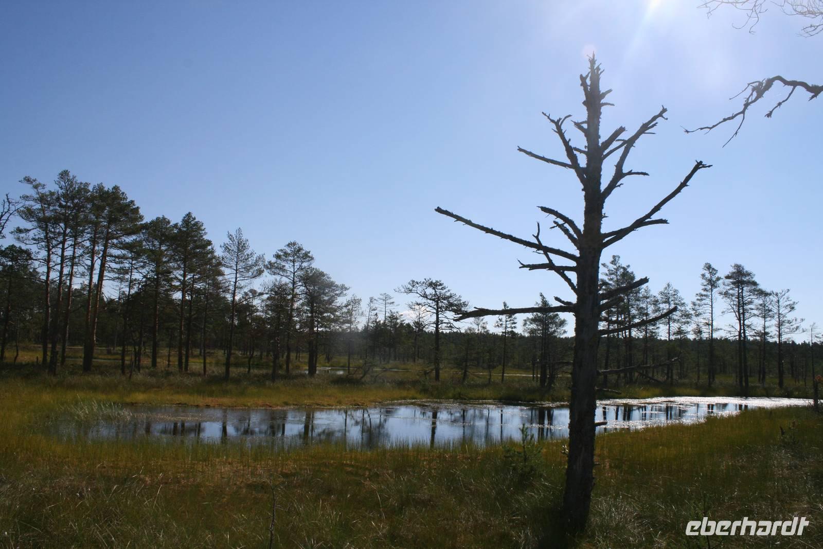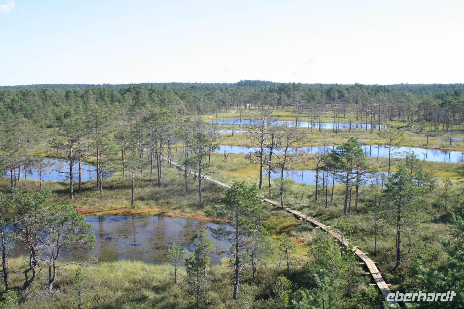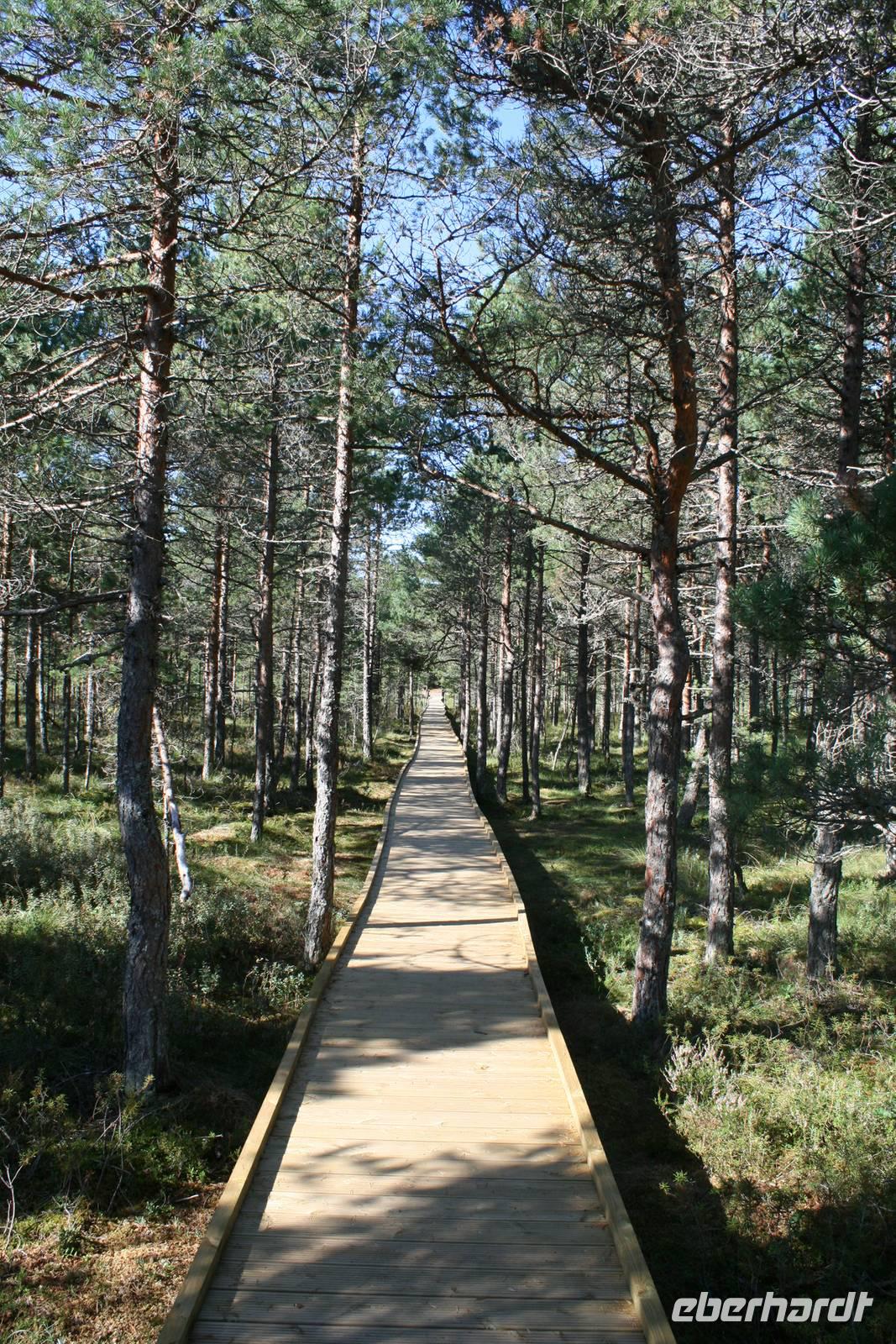 Unser letzter Reisetag brachte mit Reiseleiter Eduard noch einmal frischen Wind in die Gruppe. Er führte uns in den Laheema-Nationalpark, um uns die weite Moorlandschaft in Estlands Norden zu zeigen. Unterwegs besichtigten wir den Gutshof Palmse mit dem Palmenhaus, dem herrlichen Ziergarten und dem opulent eingerichteten Herrenhaus. Auf Brücken und schmalen Holzplanken ging es schließlich zu Fuß durch das Moor. Die verwachsenen Bäumchen und spiegelglatten Wasserflächen inmitten der Moose und flechten zeigten uns eine völlig fremde Natur, die es in unseren Gefilden so nirgends gibt. Nach dem langen Spaziergang gab es eine kräftige Stärkung: Wir kehrten in eine Dorfschänke im Fischerdorf Altja ein und wurden vom Wird mit einem köstlichen 3-Gang-Menü verwöhnt. Ein besonderes Highlight war das Dessert - eingeweichtes Schwarzbrot mit saurer Sahne und Beerengrütze - eine echte regionale Spezialität. Nach dem Essen spazierten wir zum nahegelegen Strand, der anders als in Litauen mit vielen schroffen Felsen gespickt war. Wir probierten süßen Johannisbeerwein und fuhren schließlich gemeinsam mit Eduard zurück nach Tallinn, wo wir den letzten Abend in der Hauptstadt noch einmal individuell verbringen konnten. Genügend Möglichkeiten zum Einkaufen, Abendessen und spazieren bietet die Stadt zweifellos!