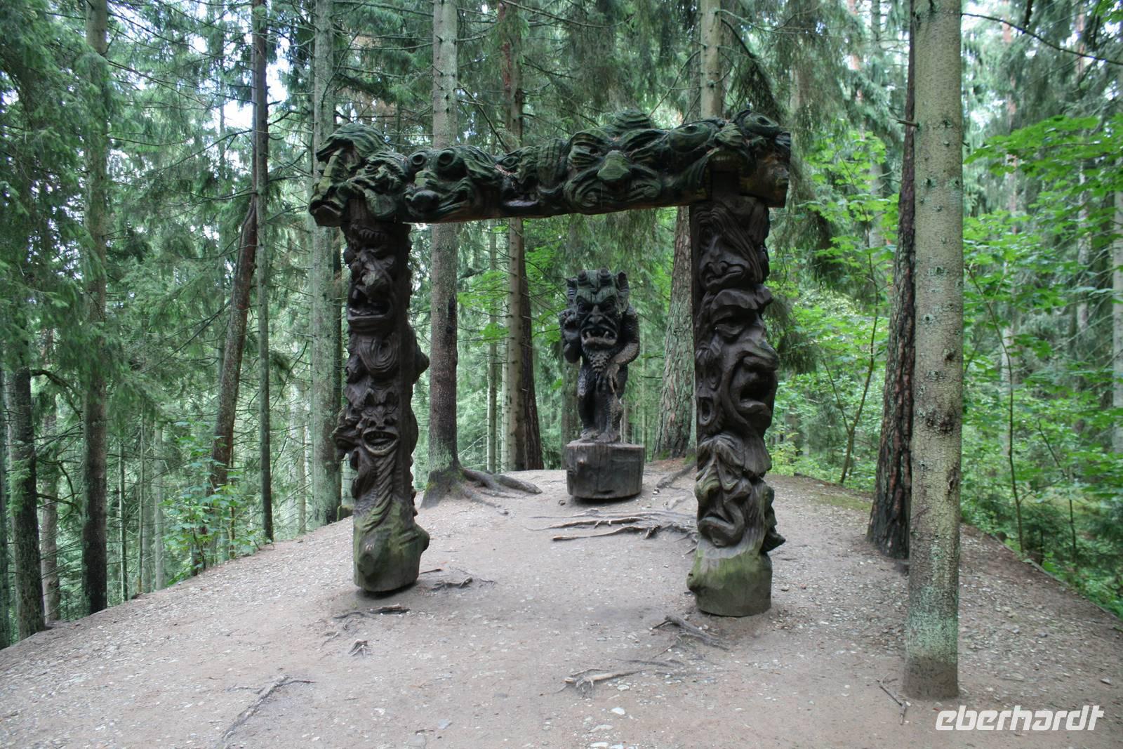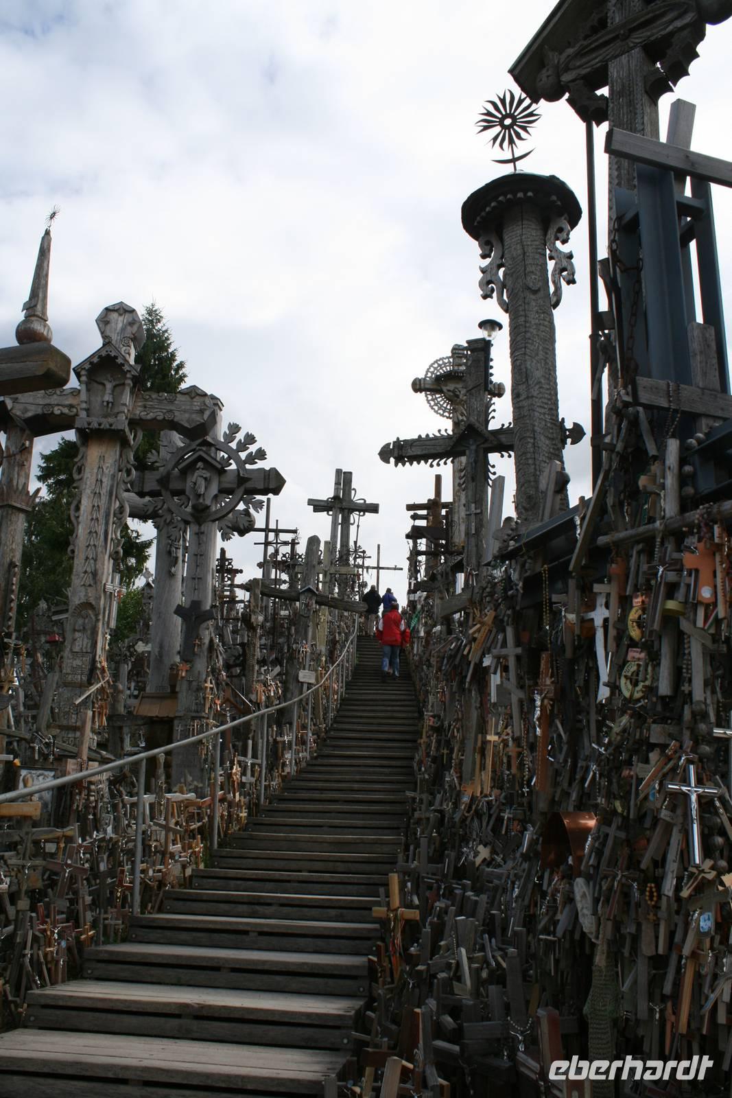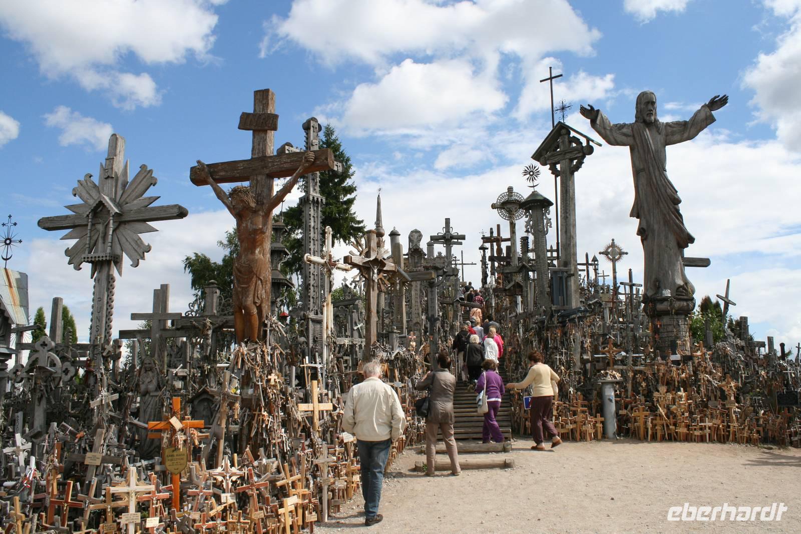 Die nächste Station erwartete uns heute: Riga! Um die lange Fahrt etwas zu versüßen, machten wir unterwegs einen Ausflug zum Berg der Kreuze in Šiauliai. Auf dem künstlichen Hügel befinden sich schätzungsweise mehrere zehntausend Kreuze, da die Anzahl jedoch ständig wächst, wäre es sinnlos, genau zu zählen. Gemütlich schlenderten wir durch das bunte Sammelsurium von Heiligenbildern und Kreuzen in allen Farben, aus allen denkbaren Materialien und natürlich an jeder erdenklichen Stelle, ob in den Boden gesteckt, an anderen Kreuzen befestigt oder einfach in die Zweige der Bäume gehängt. Auf dem Busparkplatz machten wir ein kleines Picknick und dann ging es schon weiter nach Lettland. In Riga spazierten wir kurz durch das Jugendstilviertel mit seinen verspielten und aufwändig gestalteten Häuserfassaden, bevor wir schließlich in unser Hotel direkt im Zentrum eincheckten und unser Abendessen vom Buffet genossen.