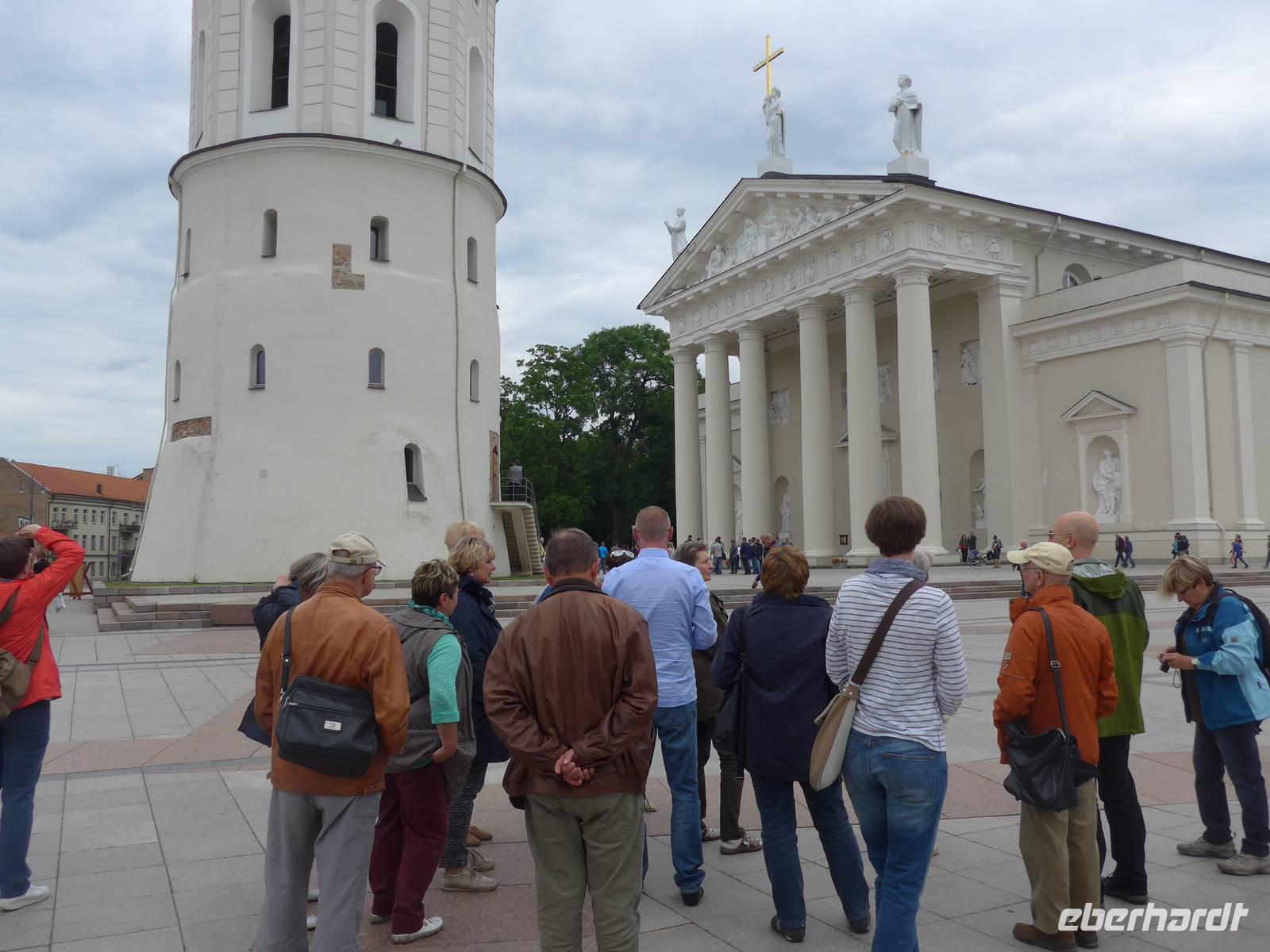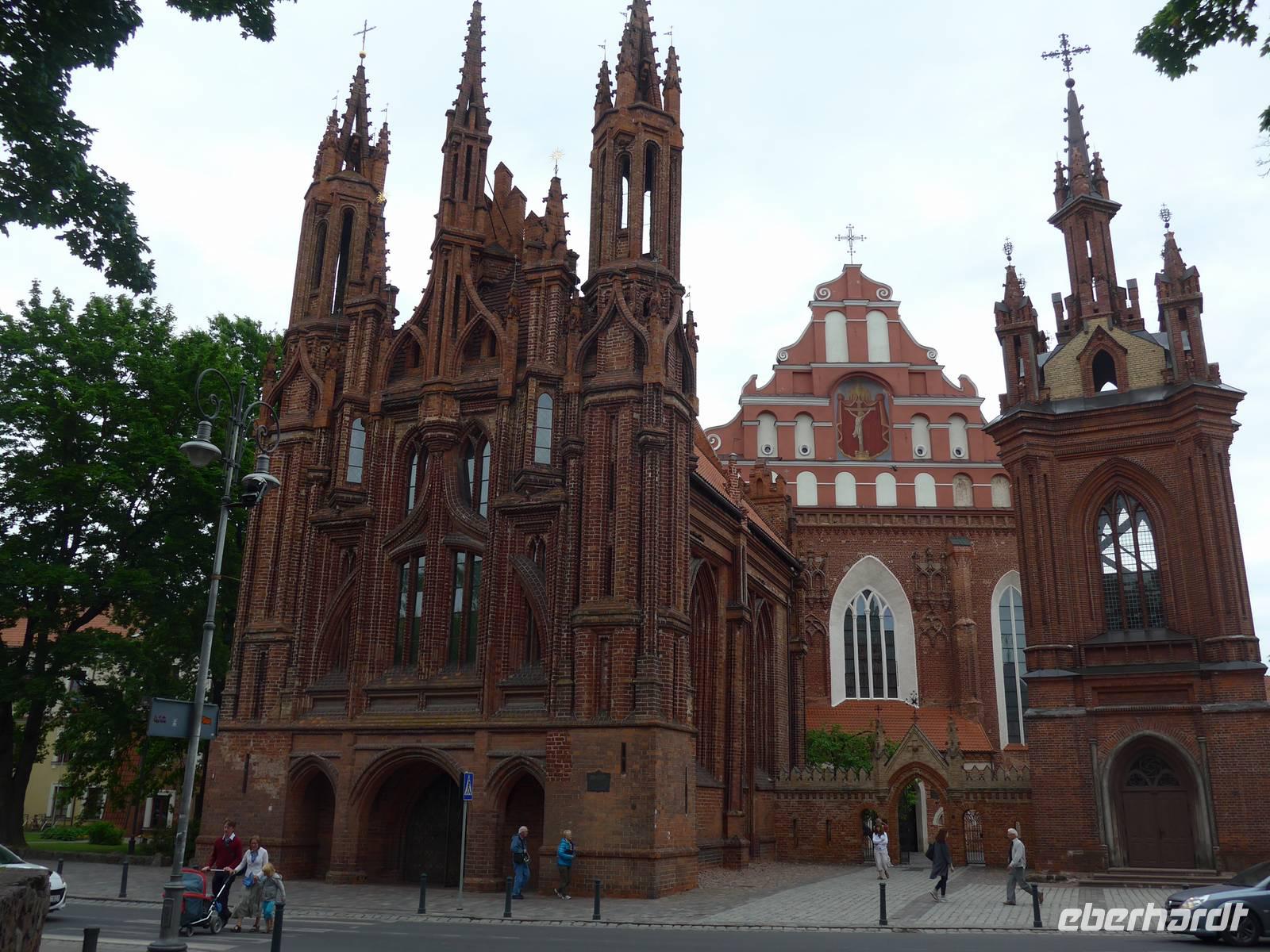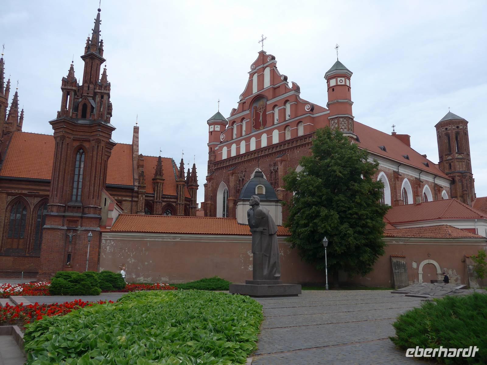 Die meisten Gäste nutzten den Haustürtransfer von Eberhardt Travel zum Flughafen und mit Lufthansa ging es dann von Dresden, Leipzig, Berlin und Hannover nach Frankfurt. Dort war unsere Gruppe endlich komplett und wir flogen gemeinsam in die litauische Hauptstadt Vilnius. Am Flughafen empfing uns Roland, unser Reiseleiter für die nächsten 10 Tage im Baltikum. Nach einer kurzen Busfahrt erreichten wir unser Hotel und bezogen unsere Zimmer. Es war noch früh am Nachmittag und so trafen wir uns zum ersten Teil unserer Stadtbesichtigung in Vilnius. Vorbei an den neuen, modernen Gebäuden fuhren wir ins Zentrum der Altstadt und begannen unseren Rundgang zu Fuß am Kathedralenplatz. Zunächst machte uns Roland mit der Gründungsgeschichte der Stadt bekannt. Danach besuchten wir die erzbischöfliche Kathedrale und die angrenzende St. Kazimir Kapelle. Weiter gingen wir zu Fuß zum Präsidentenpalast, zur Universität und vorbei am "Tanzenden Juden" in die historische Burgstraße. Den nächsten Höhepunkt bildete der Gotische Winkel mit dem Besuch der Annakirche und der Bernhardinerkirche. Ein Stück weiter erwartete uns das Künstlerviertel Uzupio mit einer eigenen Verfassung. Wir spazierten hindurch und trafen dann unseren Bus, der uns zurück ins Hotel brachte. Nach dem reichlichen Abendessen spazierten wir hinüber ans andere Ufer der Neris und fuhren in die Skybar des Radisson Hotels. Vom 22.Stock hatte man einen traumhaften Blick auf die Stadt und wir waren erstaunt, was wir an unserem ersten Tag der Reise schon alles gesehen und erlebt hatten.