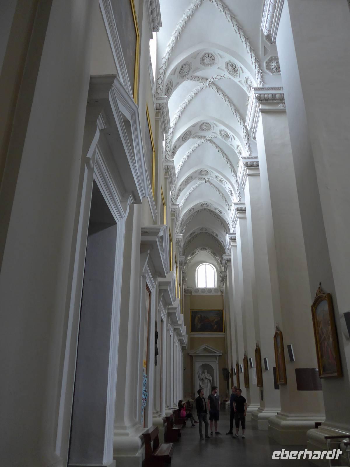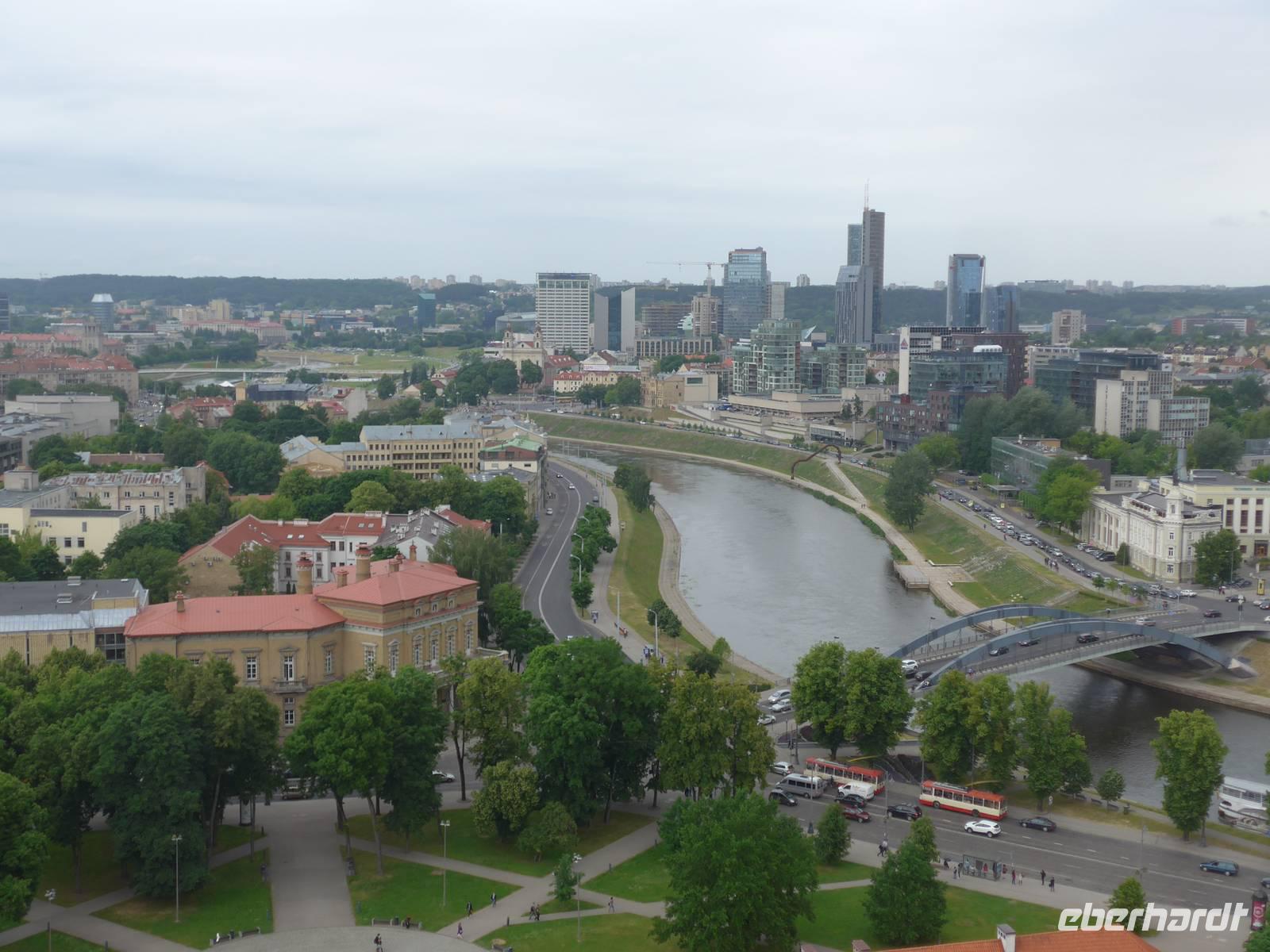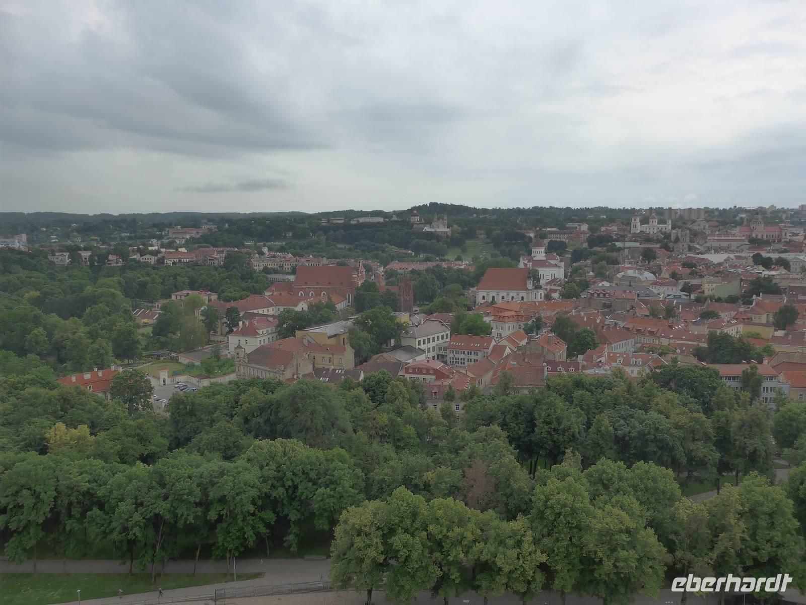 Die meisten Gäste nutzten den Haustürtransfer von Eberhardt Travel zum Flughafen und mit Lufthansa ging es dann von Dresden, Leipzig, Berlin und Hannover nach Frankfurt. Dort war unsere Gruppe endlich komplett und wir flogen gemeinsam in die litauische Hauptstadt Vilnius. Am Flughafen empfing uns Roland, unser Reiseleiter für die nächsten 10 Tage im Baltikum. Nach einer kurzen Busfahrt erreichten wir unser Hotel und bezogen unsere Zimmer. Es war noch früh am Nachmittag und so trafen wir uns zum ersten Teil unserer Stadtbesichtigung in Vilnius. Vorbei an den neuen, modernen Gebäuden fuhren wir ins Zentrum der Altstadt und begannen unseren Rundgang zu Fuß am Kathedralenplatz. Zunächst machte uns Roland mit der Gründungsgeschichte der Stadt bekannt. Danach besuchten wir die erzbischöfliche Kathedrale und die angrenzende St. Kazimir Kapelle. Weiter gingen wir zu Fuß zum Präsidentenpalast, zur Universität und vorbei am "Tanzenden Juden" in die historische Burgstraße. Den nächsten Höhepunkt bildete der Gotische Winkel mit dem Besuch der Annakirche und der Bernhardinerkirche. Ein Stück weiter erwartete uns das Künstlerviertel Uzupio mit einer eigenen Verfassung. Wir spazierten hindurch und trafen dann unseren Bus, der uns zurück ins Hotel brachte. Nach dem reichlichen Abendessen spazierten wir hinüber ans andere Ufer der Neris und fuhren in die Skybar des Radisson Hotels. Vom 22.Stock hatte man einen traumhaften Blick auf die Stadt und wir waren erstaunt, was wir an unserem ersten Tag der Reise schon alles gesehen und erlebt hatten.