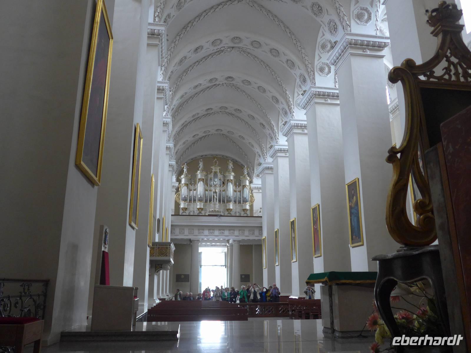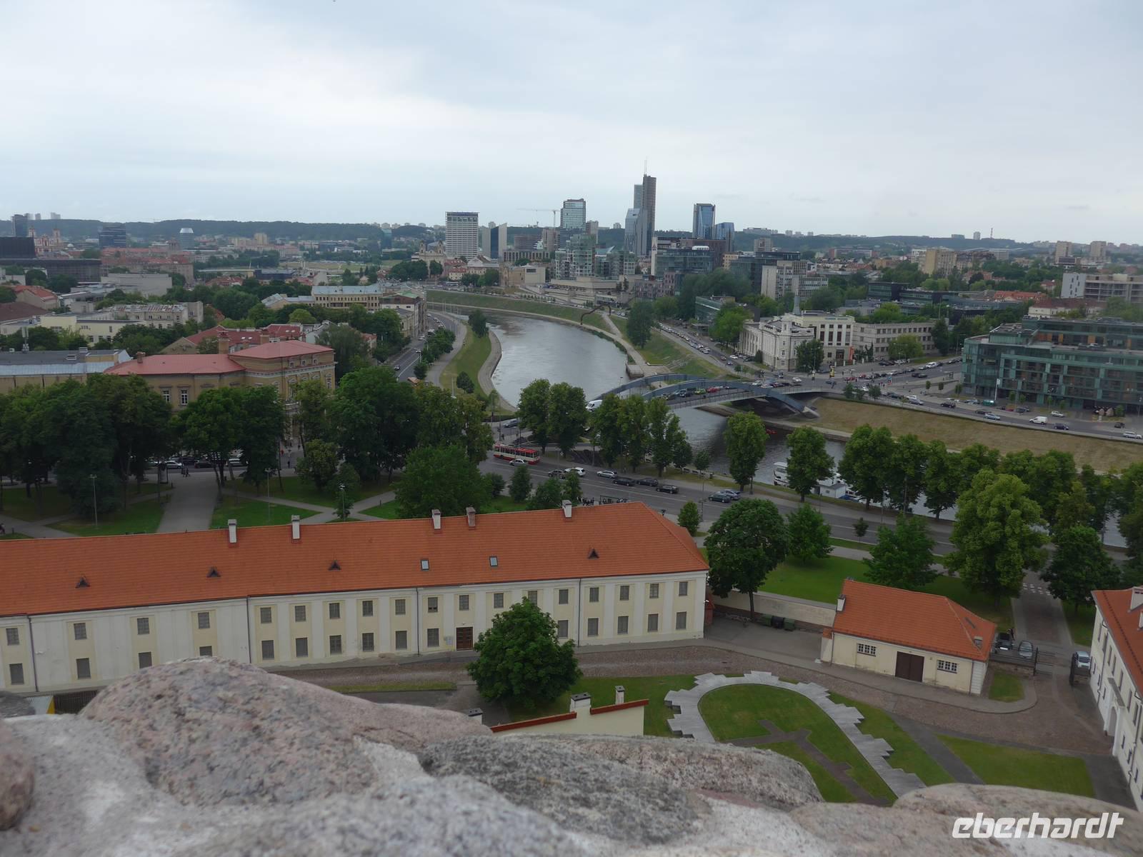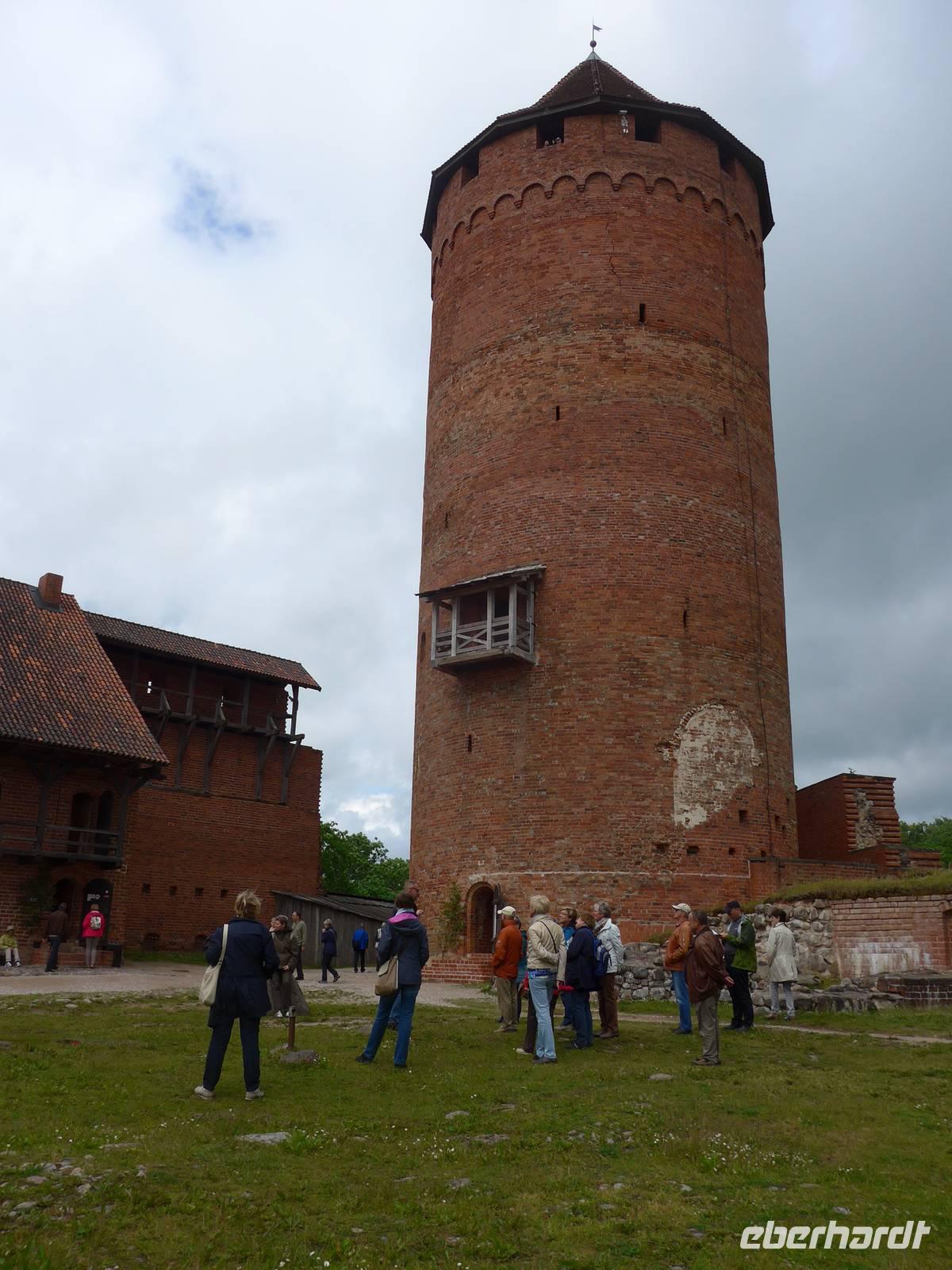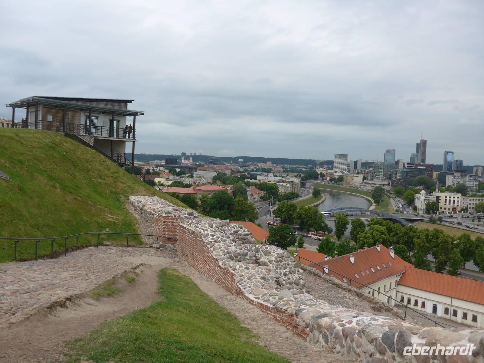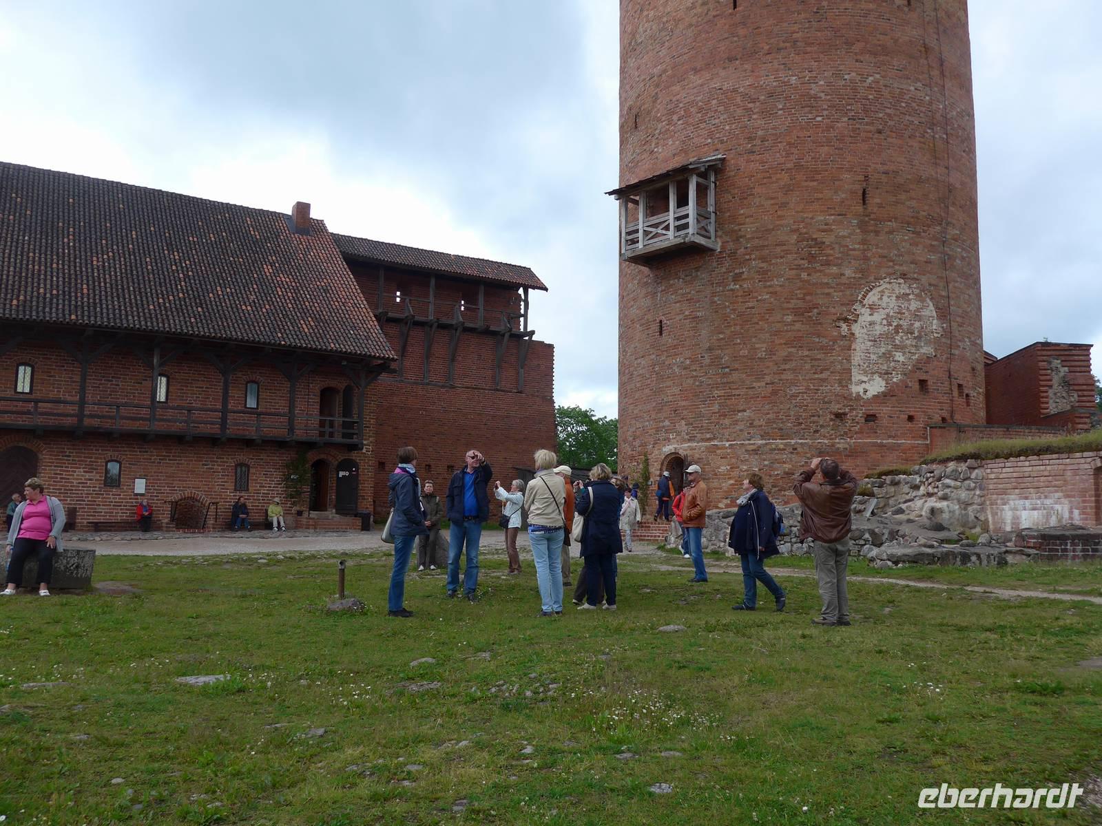Der Ort hat rund 5000 Einwohner und ist von 3 Seen umgeben. Auf einer Insel im Seen liegt die berühmte Wasserburg aus dem 14. Jahrhundert. Wir nahmen Aufstellung zum Gruppenfoto vor dieser historischen Kulisse und danach folgte unsere Vorstellungsrunde bei einem Gläschen 999 Kräuter. Gut gelaunt spazierten wir nun hinüber zur Burg und begannen mit der Besichtigung. Im Inneren ging es treppauf und treppab. Die Ausstellung zur Geschichte der Burg hatte uns alle begeistert. Wir waren hungrig und so stoppte unser Bus auf der Rückfahrt an der "Akropolis" zu einem späten Mittagessen. Das Abendessen nahmen wir wieder in unserem Hotel ein und danach gingen wir am Ufer der Neris entlang bis zur Burg. Der Aufzug war nicht mehr in Betrieb und so nahmen wir den steilen Weg bergan auf die Burg und hatten zum Abschied einen herrlichen Blick auf die Stadt Vilnius mit den vielen Kirchen. Unten mischten wir uns unter die vielen feiernden Menschen. Wieder im Hotel gab es noch ein tolles Feuerwerk zu sehen.