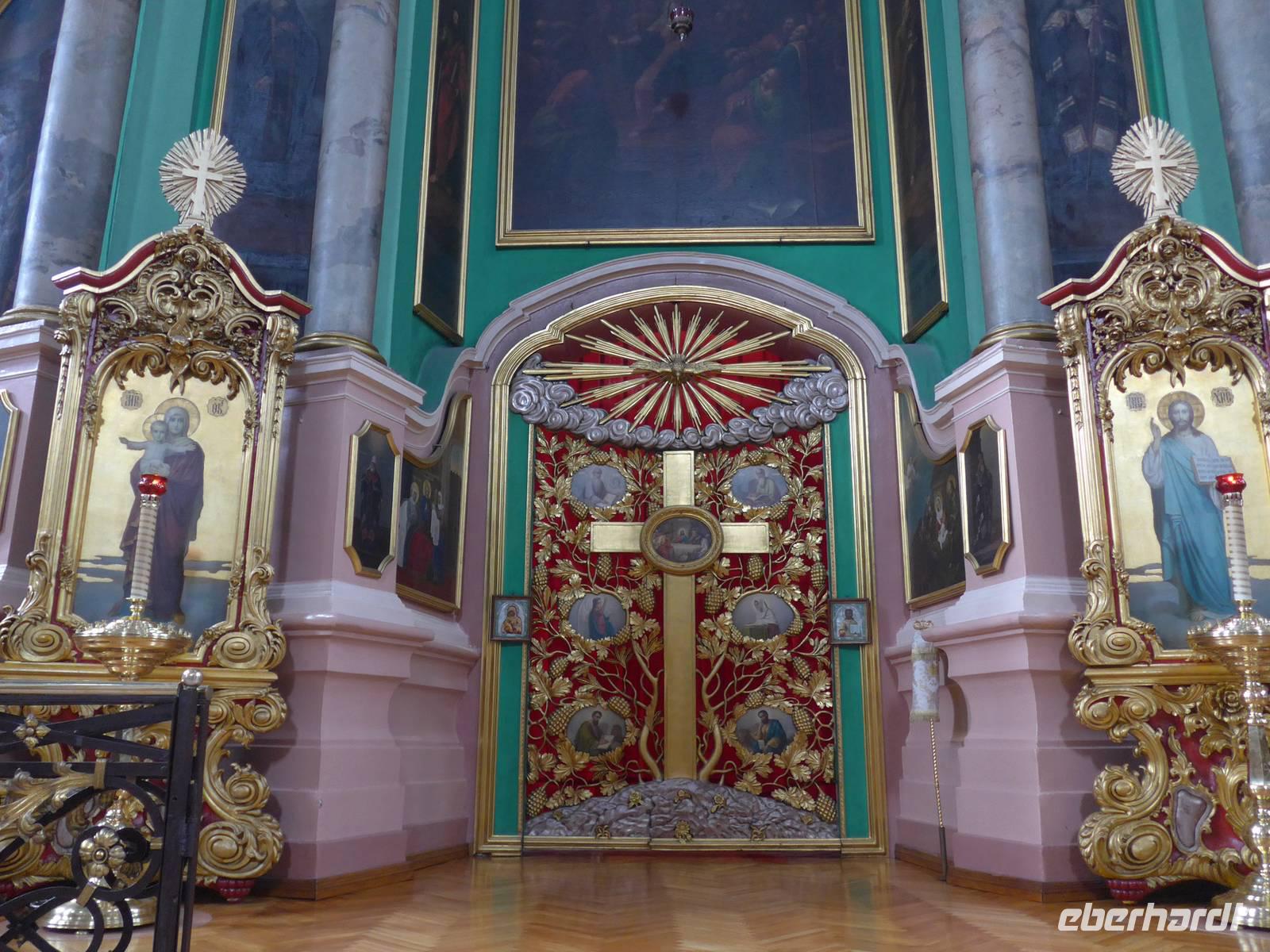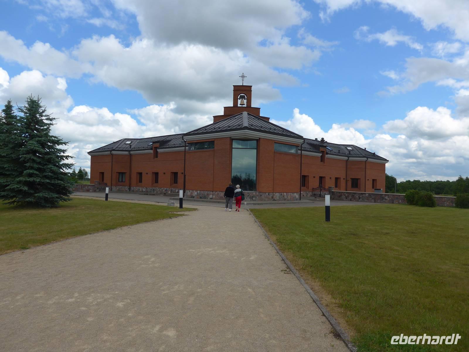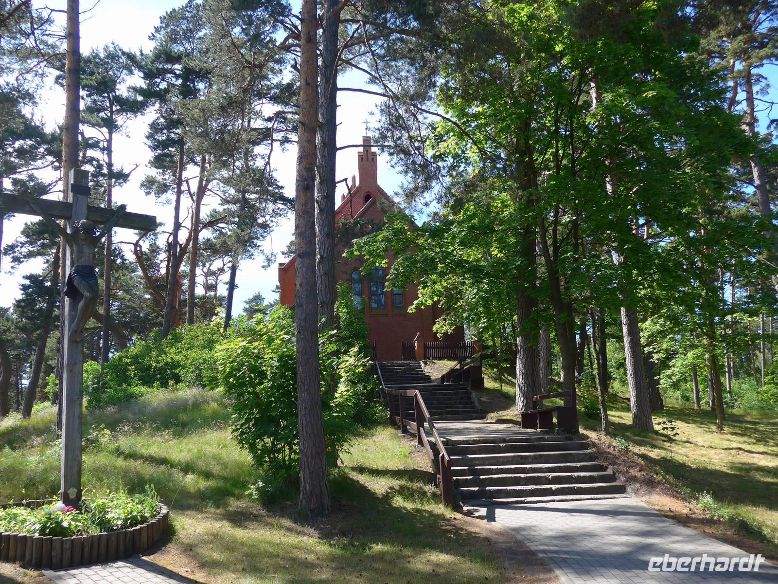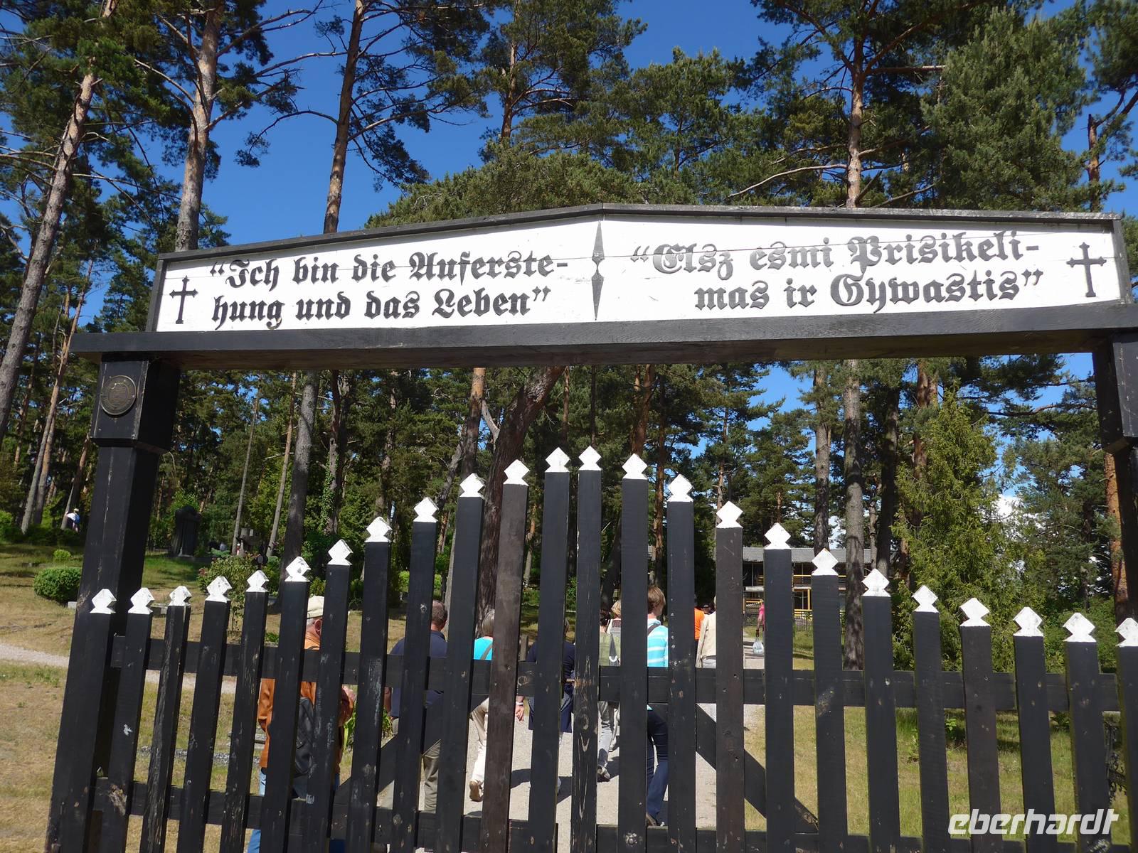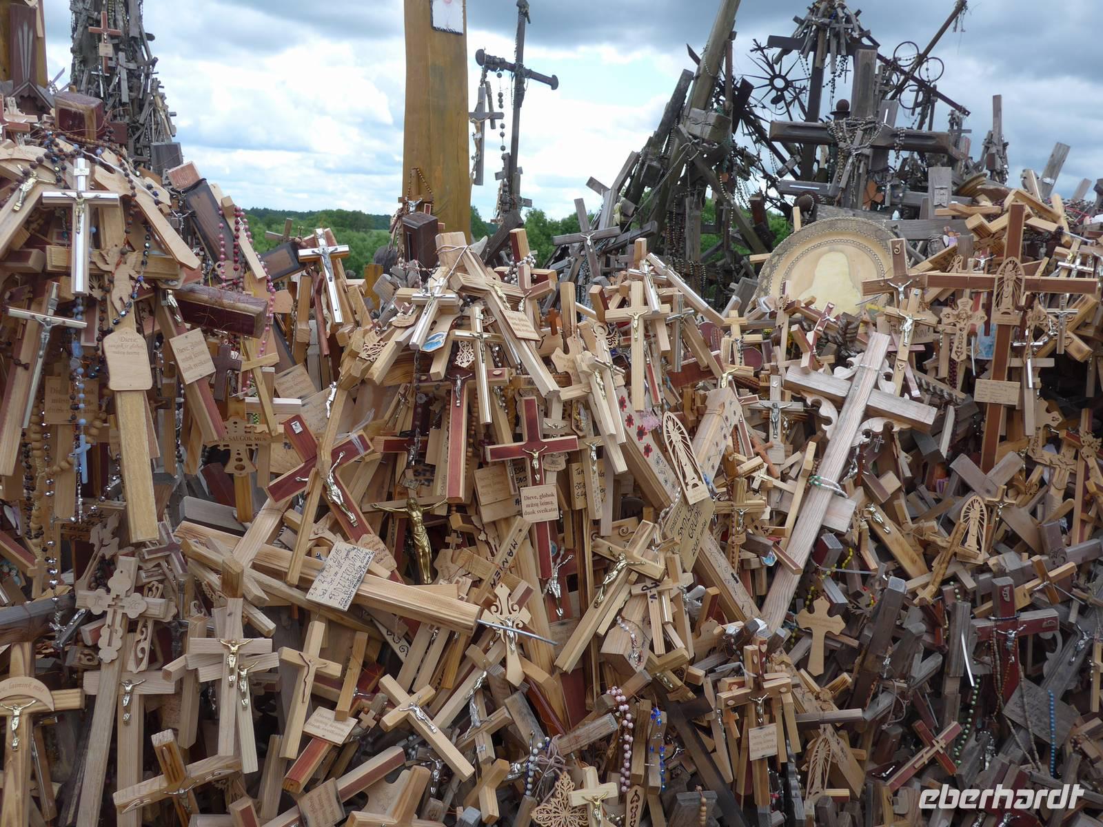 Wieder hieß es 8.45 Uhr mit Koffern am Bus und wir starteten nach Lettland. In Kleipeda zeigte uns Roland noch den alten Bahnhof und einen Park, der einst ein Friedhof war. Auf der Autobahn sahen wir dann eine DVD zu Thomas Mann "Mein Sommerhaus" mit herrlichen Aufnahmen von der Kurischen Nehrung und vielen historischen Bildern. Nach der Pause an einer Tankstelle hörten wir litauische Folklore im Bus. Wir fuhren durch Siauliai und erfuhren, daß hier einst der größte Militärflughafen der SU war und das Gelände nun von der NATO genutzt wird. In der Stadt war die Produktion von Fernsehgeräten und Fahrrädern zu Hause, aber nur die Fahrradfabrik gibt es heute noch. Am Mittag erreichten wir den Berg der Kreuze. Wir hingen auch ein Kreuz für unsere Gruppe auf und gingen über den Berg bis zum Kloster, welches nach dem Papstbesuch von 1992 errichtet wurde. 20 Mönche leben heute dort und von der Kirche schaut man durch ein großes Fenster zum Berg der Kreuze.