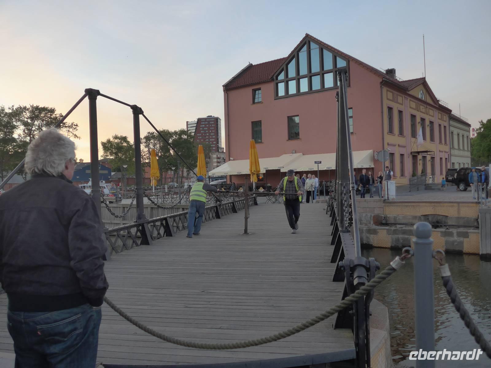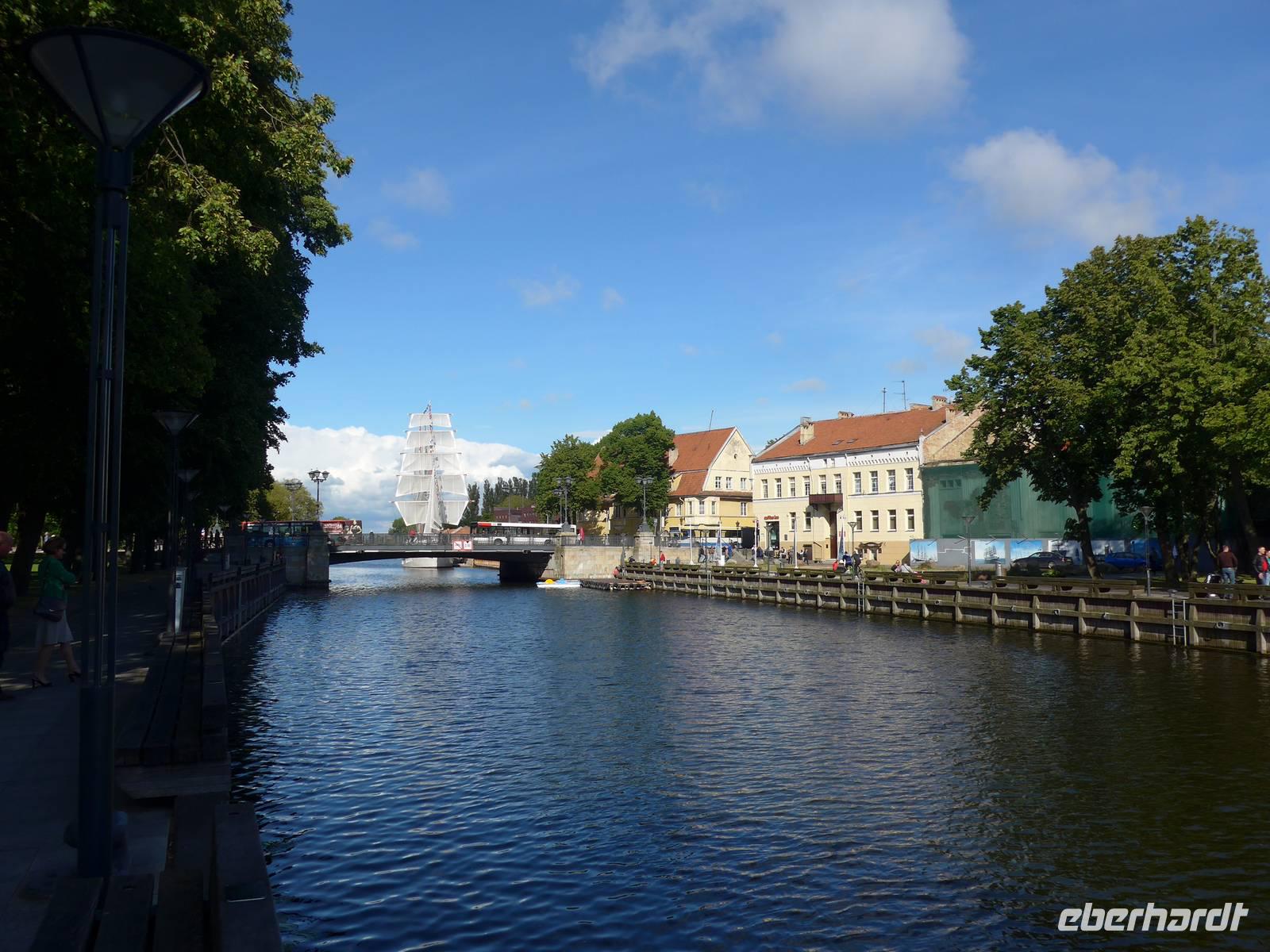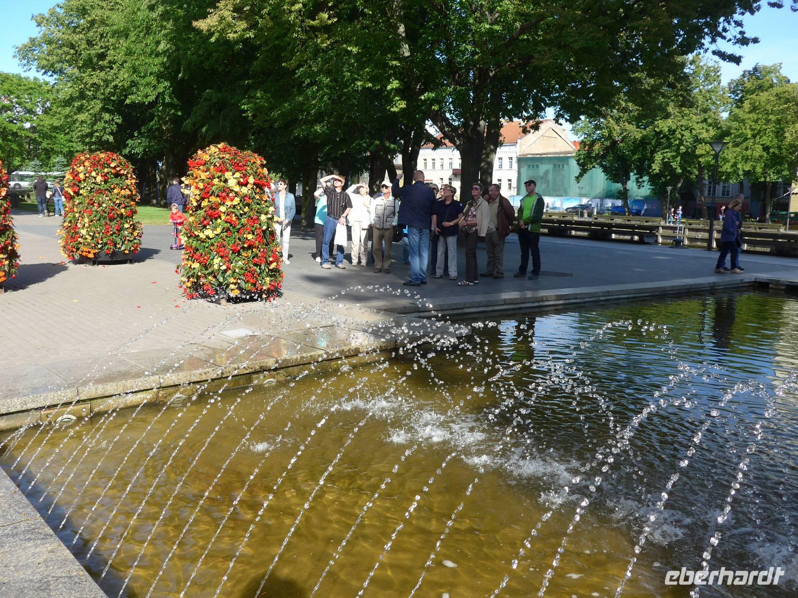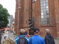 Auf der Weiterfahrt im Bus stimmte uns Roland auf das Memelland und seine Heimatstadt Kleipeda ein. Wir bezogen unsere Zimmer im Hotel "Amberton" und gingen danach noch eine Runde durch das Zentrum von Kleipeda. An der Dane entlang sahen wir die alten Speicherhäuser und am Brunnen sangen wir das Lied "Ännchen von Tharau". In der Tourist-Info machten wir eine kurze Shoppingpause und spazierten dann weiter über die Marktstrasse zum Platz der ehemaligen Johannikirche. Auf dem Rückweg zum Hotel ging es vorbei am Segelschiff, welches neuerdings als Restaurant der gehobenen Preisklasse dient. Nach dem Abendessen wollten wir die tolle Aussicht vom 21. Stock unseres Hotels bei einem Drink genießen, aber wir sollten dafür Eintritt zahlen und so entschieden wir uns für einen Spaziergang zum Haff und kehrten dort ein.