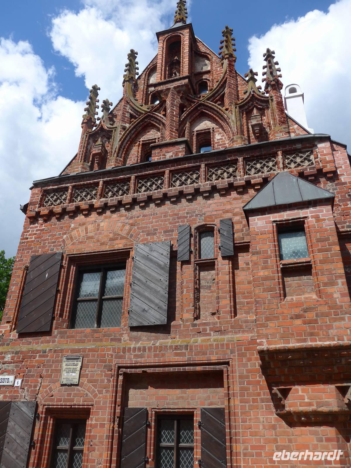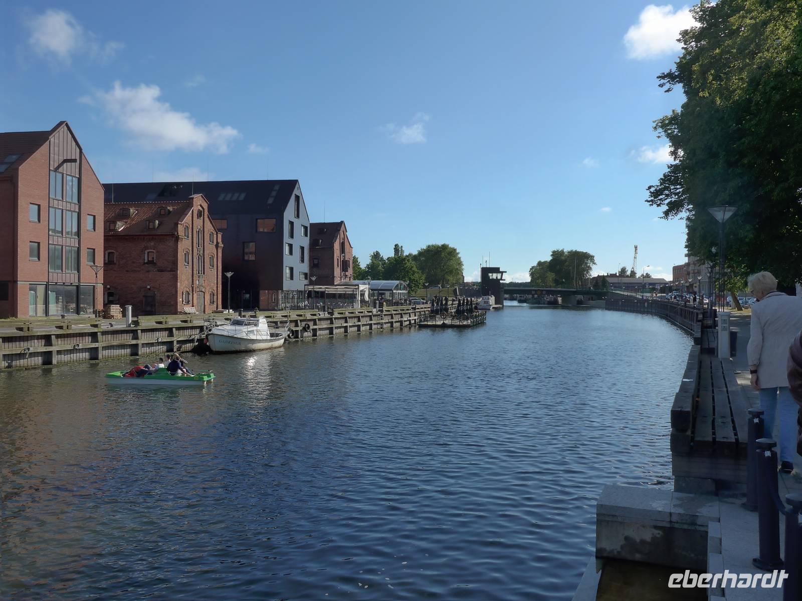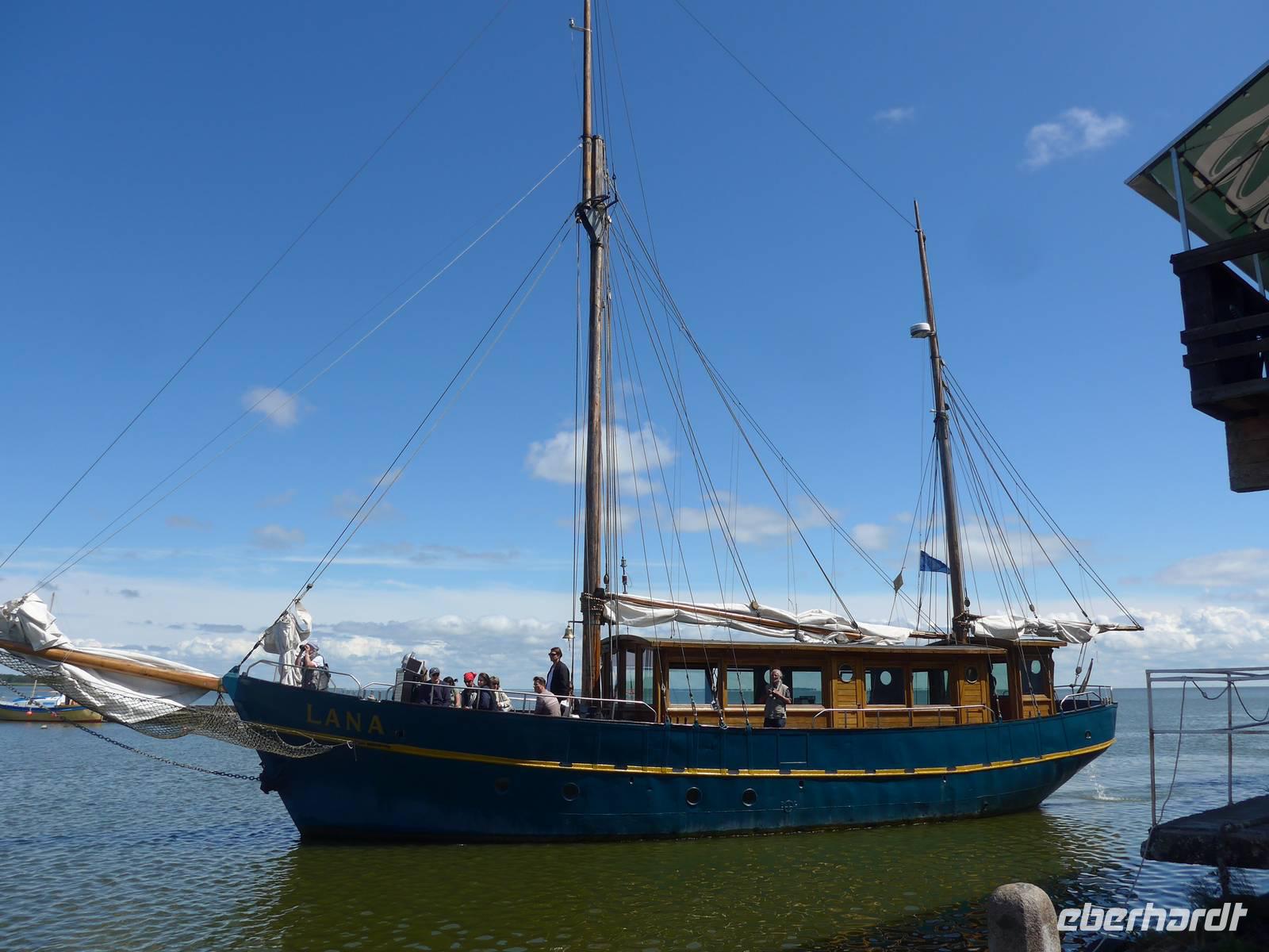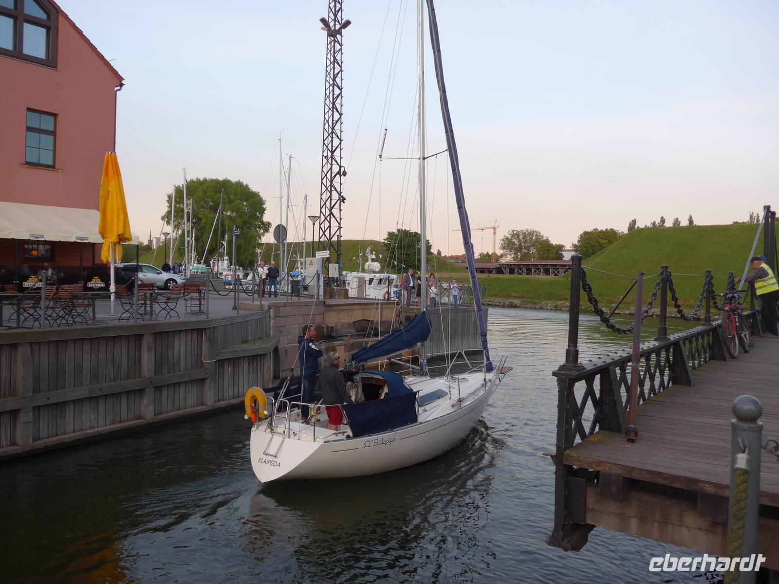 Auf der Weiterfahrt im Bus stimmte uns Roland auf das Memelland und seine Heimatstadt Kleipeda ein. Wir bezogen unsere Zimmer im Hotel "Amberton" und gingen danach noch eine Runde durch das Zentrum von Kleipeda. An der Dane entlang sahen wir die alten Speicherhäuser und am Brunnen sangen wir das Lied "Ännchen von Tharau". In der Tourist-Info machten wir eine kurze Shoppingpause und spazierten dann weiter über die Marktstrasse zum Platz der ehemaligen Johannikirche. Auf dem Rückweg zum Hotel ging es vorbei am Segelschiff, welches neuerdings als Restaurant der gehobenen Preisklasse dient. Nach dem Abendessen wollten wir die tolle Aussicht vom 21. Stock unseres Hotels bei einem Drink genießen, aber wir sollten dafür Eintritt zahlen und so entschieden wir uns für einen Spaziergang zum Haff und kehrten dort ein.