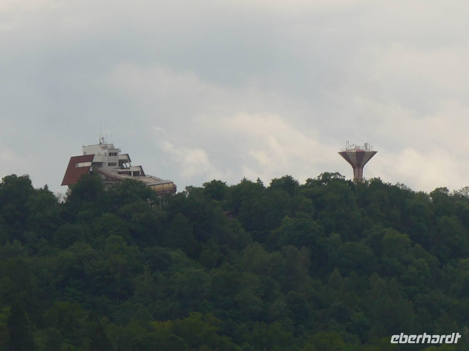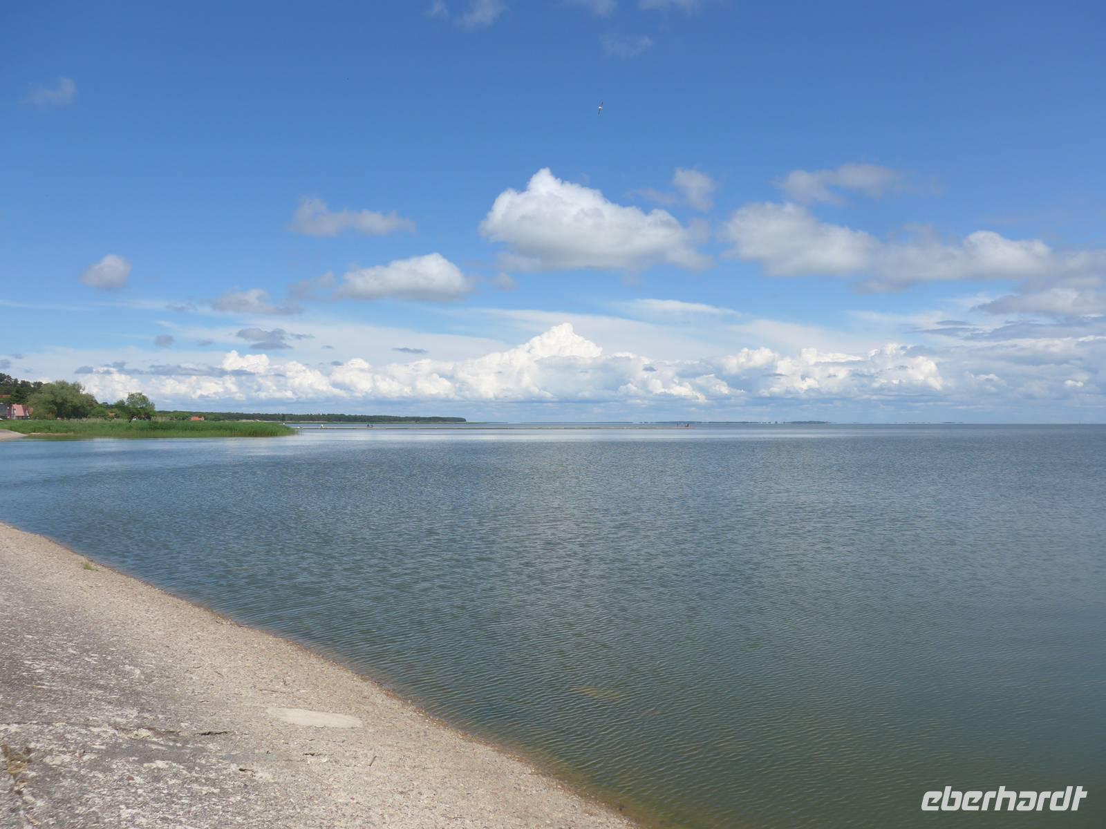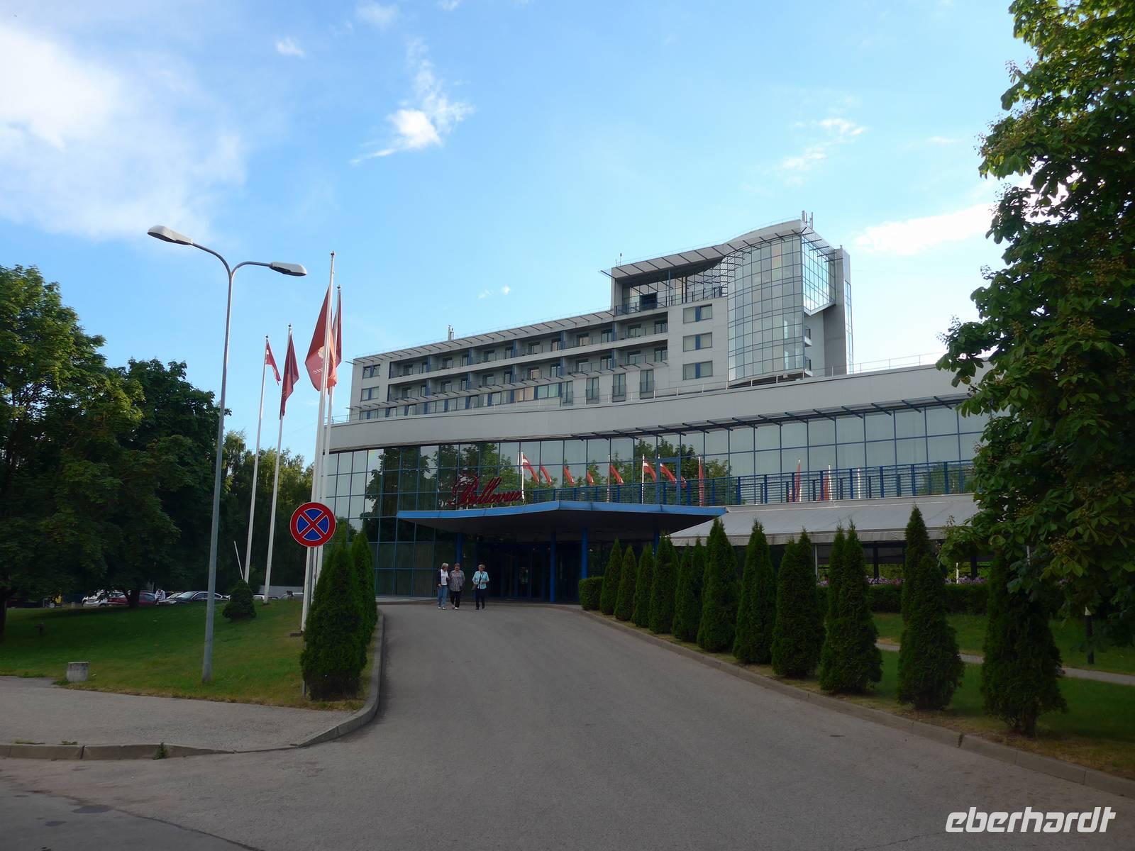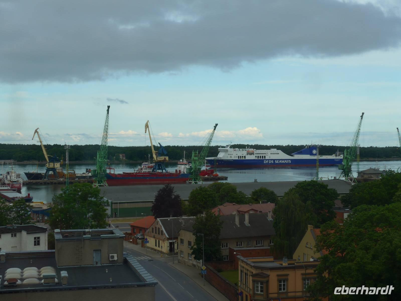Nach dem Abendessen im Hotel fuhren wir in den 21.Stock hinauf und genossen in der Abendsonne den Blick über das Haff auf die Kurische Nehrung und die Ostsee.
