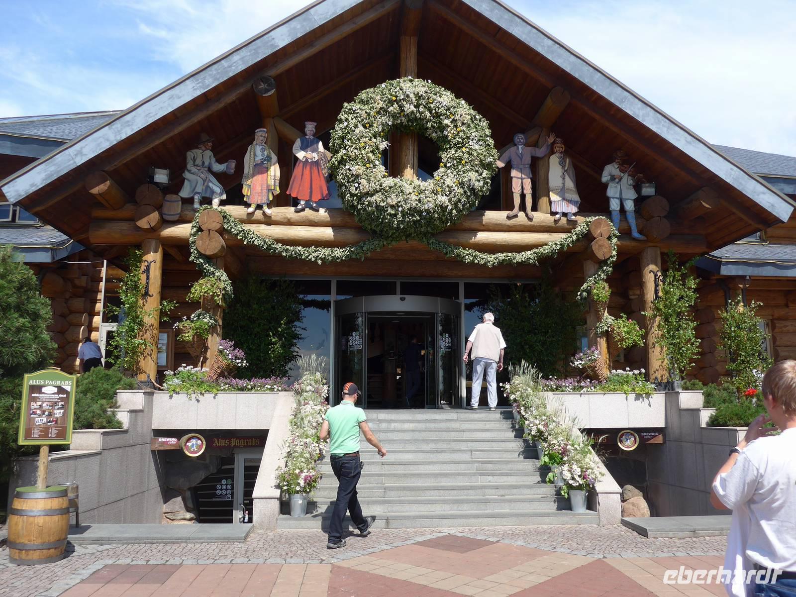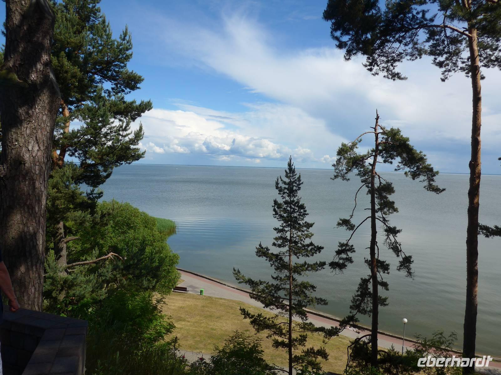 Unsere Fahrt begann mit einem Ständchen für unser Geburtstagskind und für unseren Fahrer, der Namenstag hatte. Wir verließen Riga gen Norden und kamen an der Gertrudenkirche, der Kirche für die Reisenden vorbei. In dem Industriegebiet rechts und links der Straße wurden einst Waggons und Kofferradios für die Sowjetunion hergestellt. Gegen 10 Uhr erreichten wir Sigulda, die Hochburg der Lettischen Bobfahrer und Rodler im Gauja-Nationalpark. Wir besuchten die Parkanlage am Rathaus und schwebten anschließend mit der Seilbahn über das Gaujatal. Drüben bestiegen wir unseren Bus und fuhren zur Bischofsburg Turaida. Durch den großen gepflegten Park gingen wir zur Burg und stiegen die 135 Stufen auf den Turm hinauf. Von oben bot sich ein traumhafter Blick auf die Burganlage, den Park und das Gaujatal. Auf dem Rückweg besuchten wir die Kirche mit weißem Holzgestühl, die gern für Hochzeiten genutzt wird. Unser Mittagessen nahmen wir in Ragana bei der "Hexe" ein. Die Straße nach Estland verlief immer parallel zur Ostsee und hatte viele Baustellen. So kamen wir nur langsam voran und erreichten Pärnu erst 16 Uhr.