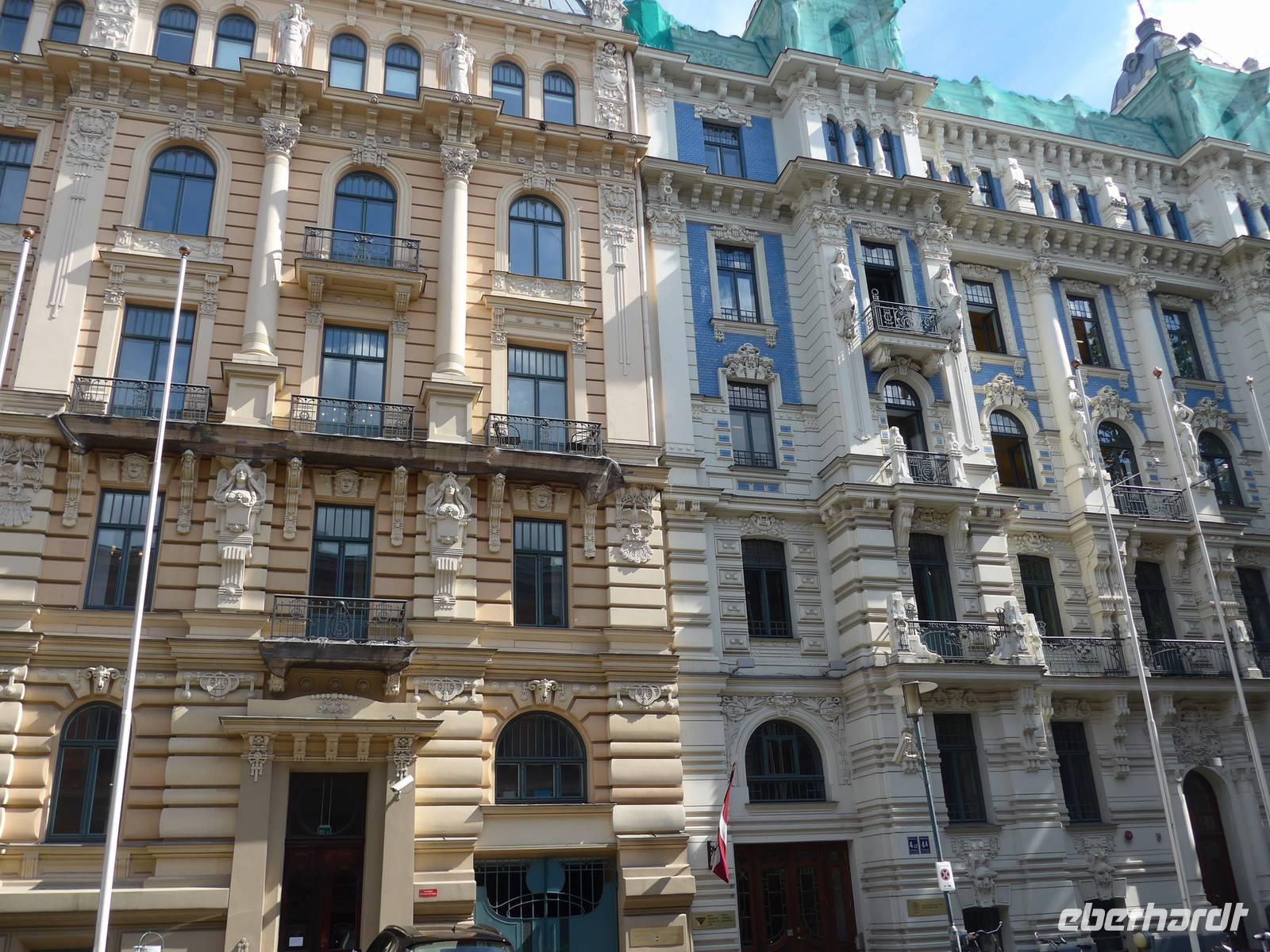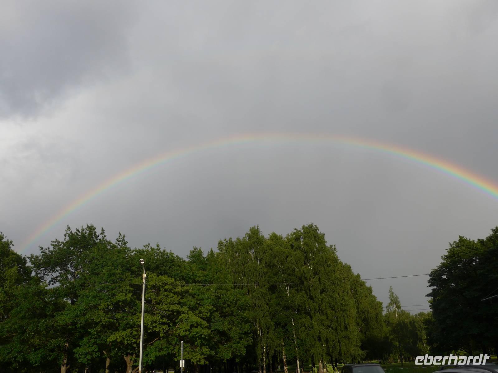 Unser erstes Ziel in Riga war das "LIDO" - ein tolles Buffet-Restaurant. Dort stärkten wir uns und fuhren danach noch in die Stadt zur Besichtigung der Jugendstilhäuser. Wir gingen zu Fuß durch die Albertstrasse und Elizabethstraße und Roland zeigte uns die schönsten Jugendstilbauten aus der Zeit von 1880-1915. Auf der Fahrt zu unserem Hotel sahen wir dann schon die Markthallen, den Bahnhof, das Opernhaus und die neue Bibliothek. Wir bezogen unsere Zimmer für 2 Nächte im Hotel "Bellevue" und nach dem Abendessen krönte ein Regenbogen den Abendhimmel.