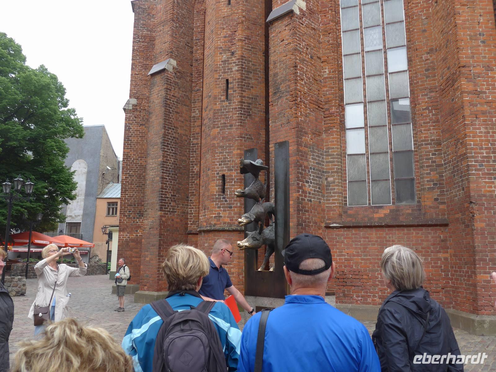 Der längste Tag und die kürzeste Nacht des Jahres standen bevor und in Lettland sind der 23. und 24.06.2015 Feiertage. Die öffentlichen Verkehrsmittel in der Stadt waren kostenlos zu benutzen und so fuhren wir mit der Straßenbahn von unserem Hotel 3 Stationen ins Stadtzentrum. Die Straßen waren noch menschenleer und wir begannen unseren Rundgang am Denkmal der roten Schützen am Okkupationsmuseum und gingen dann weiter zum Rathausplatz. Roland besorgte in der Tourist-Information Stadtpläne und kleine Reiseführer mit den wichtigsten Sehenswürdigkeiten. Das Rathaus mit dem Glockenspiel und das Schwarzhäupterhaus säumen den Platz und sind die wohl bekannntesten Sehenswürdigkeiten von Riga. Unser Rundgang führte weiter zur Petrikirche, den Bremer Stadtmusikanten, dem Konventhof, zur Oper, dem Freiheitsplatz, Pulverturm und Schwedentor, der Jakobikirche, den 3-Brüder-Häusern und zur Großen und Kleinen Gilde. Leider war das Wetter uns nicht hold und wir brauchten immer wieder unsere Regenschirme. In einem Fachgeschäft für "Rigaer Balsam" nahmen wir eine köstliche Probe ein. Auf dem Domplatz sahen wir das Rundfunkhaus und die Börse, gingen noch zum Herder-Denkmal und dann zurück zum Dom. Im Dom schauten wir uns in aller Ruhe um, besuchten noch den Kreuzgang und ab 12 Uhr lauschten wir dem Orgelkonzert zusammen mit vielen anderen Touristen und Litauern. Nach der Mittagspause trennten sich unsere Wege. Einige zog es zu den Markthallen, wo die Rigaer noch fleißig einkauften und Blumenkränze gebunden wurden für das Fest am Abend. Andere besuchten das Jugendstilmuseum. Beim Abendessen gab es deshalb viel zu erzählen.