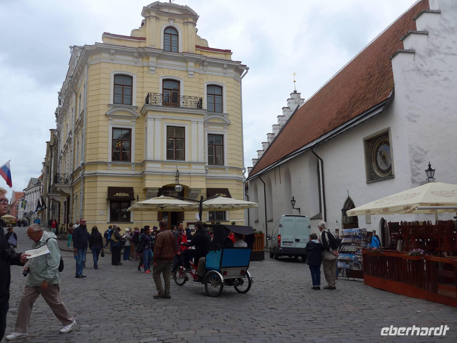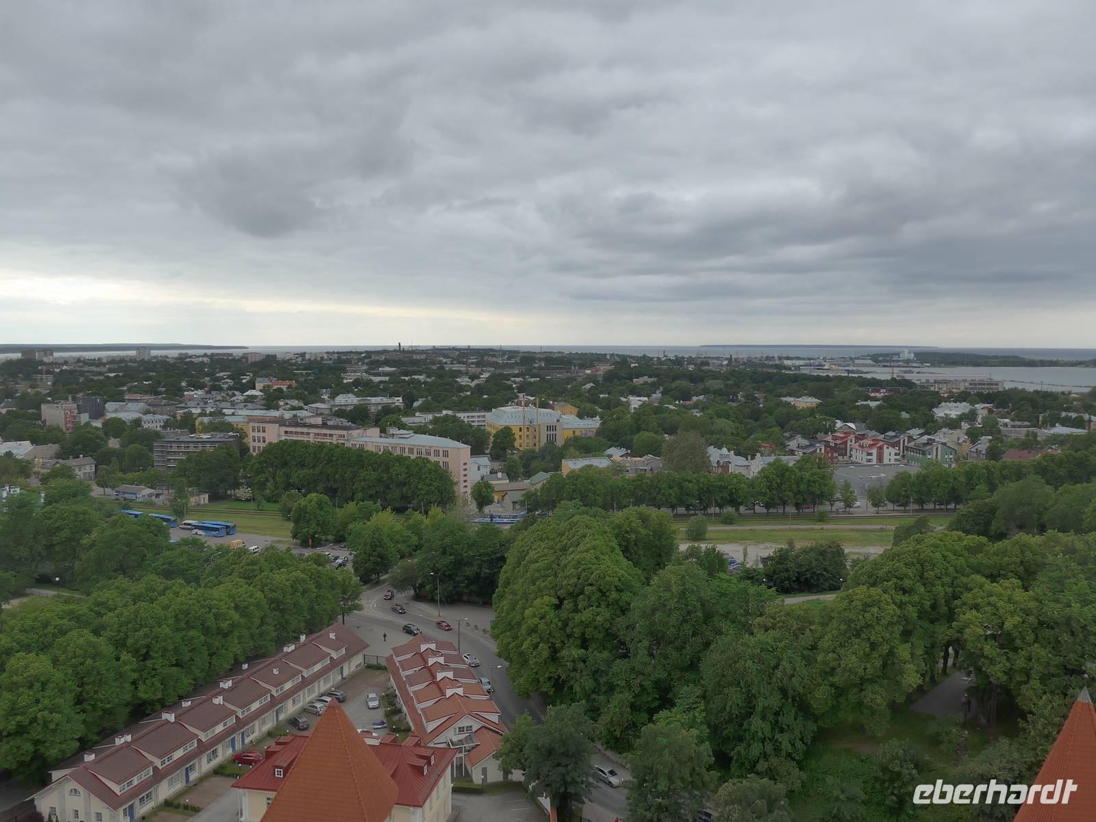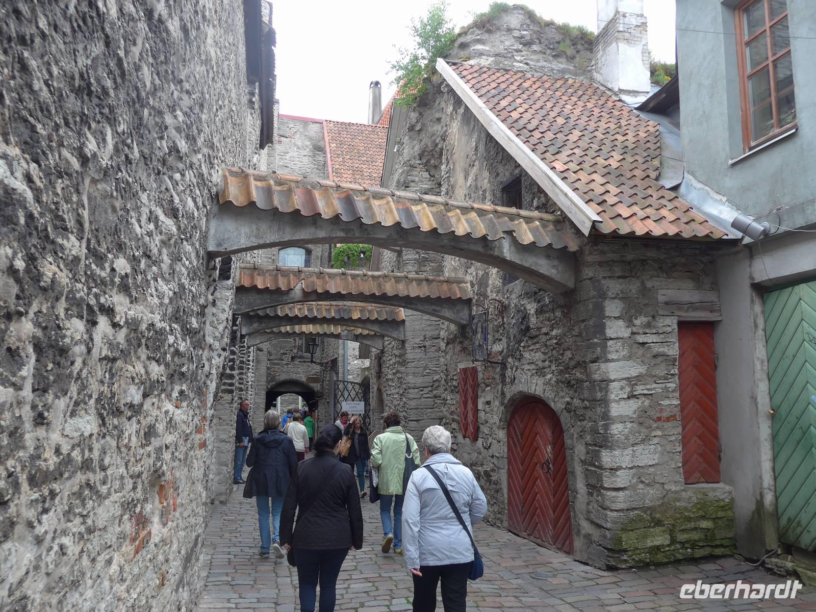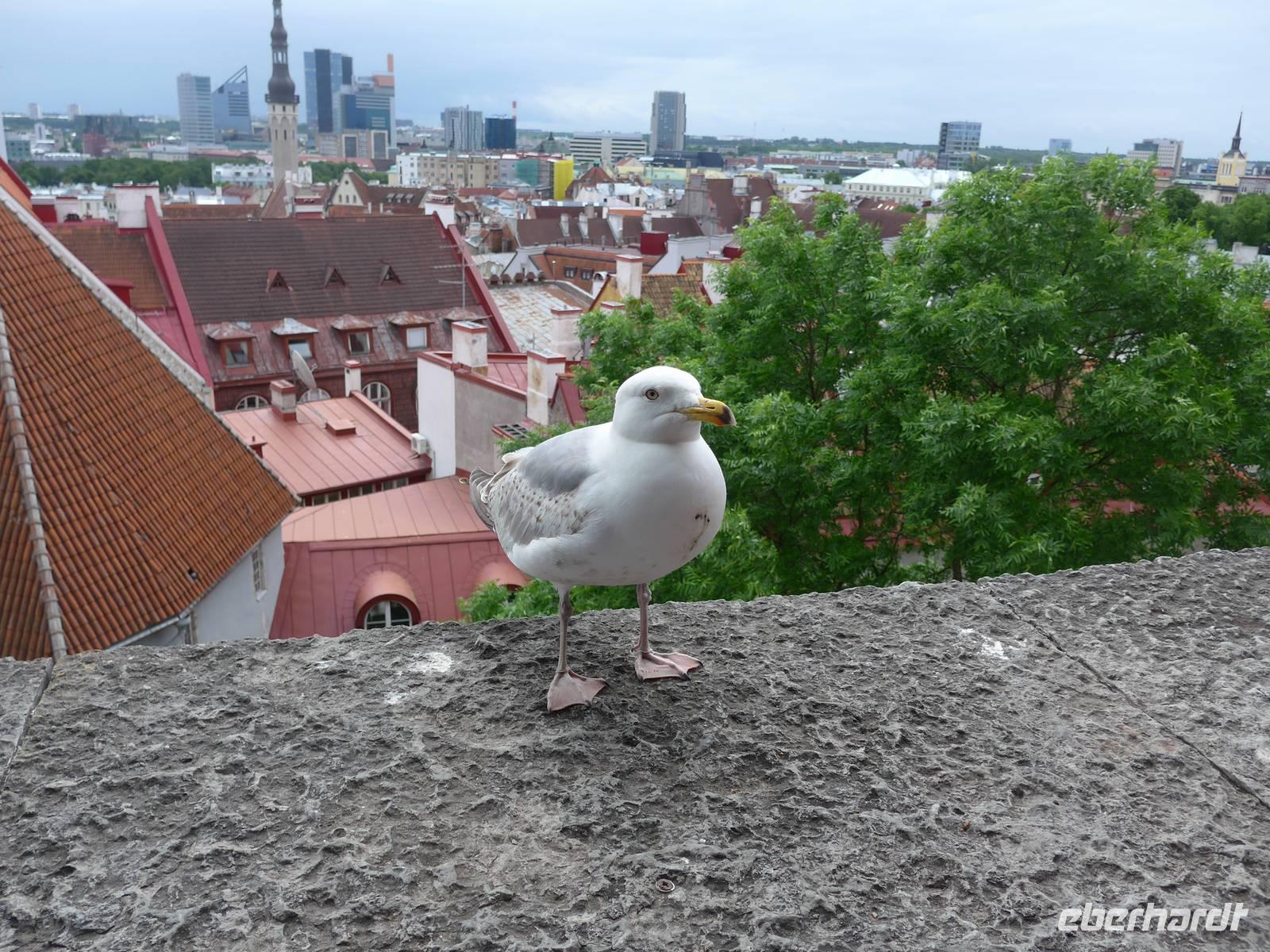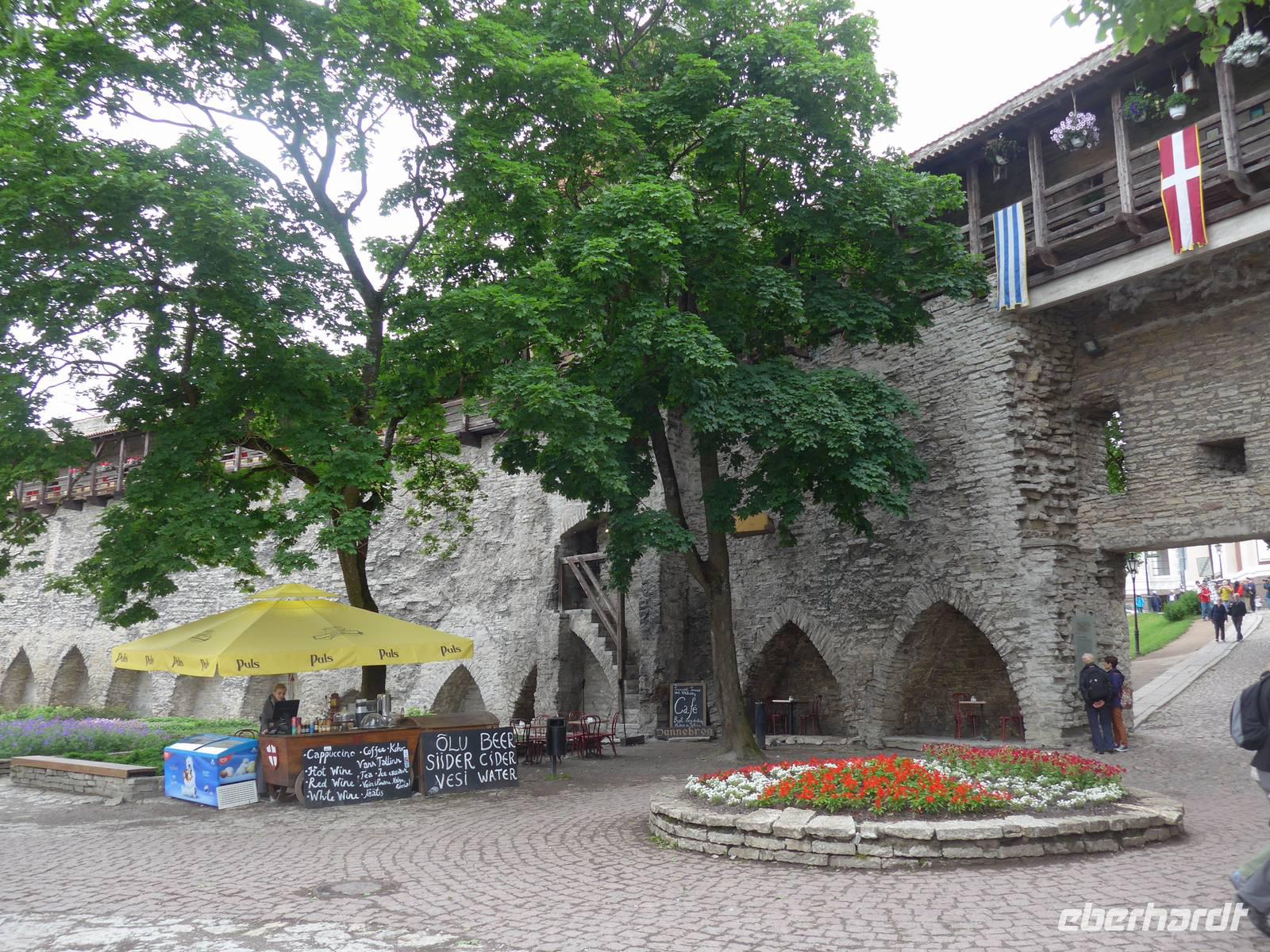 In Pärnu besorgte Roland uns Prospekte von Estland und wir spazierten durch die Hauptstrasse. Es war stürmisch und regenete immer wieder. Deshalb trafen wir uns recht schnell alle im Bus, wo unser Fahrer Jonas eine Flasche Balsam auf seinen Namenstag spendierte. Die letzten 140 km bis nach Tallinn vergingen recht schnell, da wir mit Walzermusik verwöhnt wurden. Unser Hotel in Tallinn lag direkt in der Altstadt und bis dorthin konnte unser Bus nicht fahren. Die Koffer wurden abgeholt und wir gingen das letzte Stück zu Fuß. Nach dem Abendessen im Hotel war noch herrliches Wetter und so erkundeten wir schon mal die mittelalterliche Stadt mit den 2 Aussichtsterrassen und schossen die ersten Fotos von Tallinn.