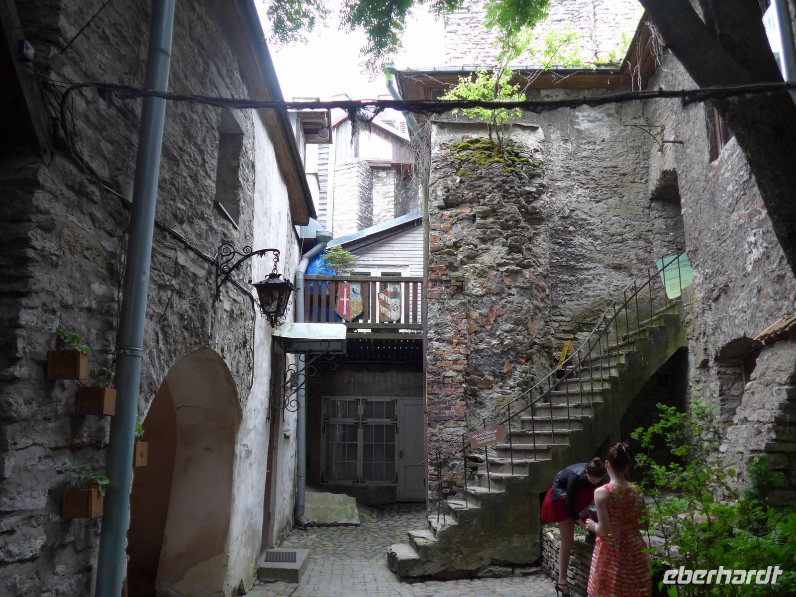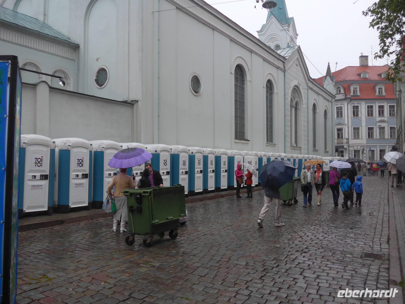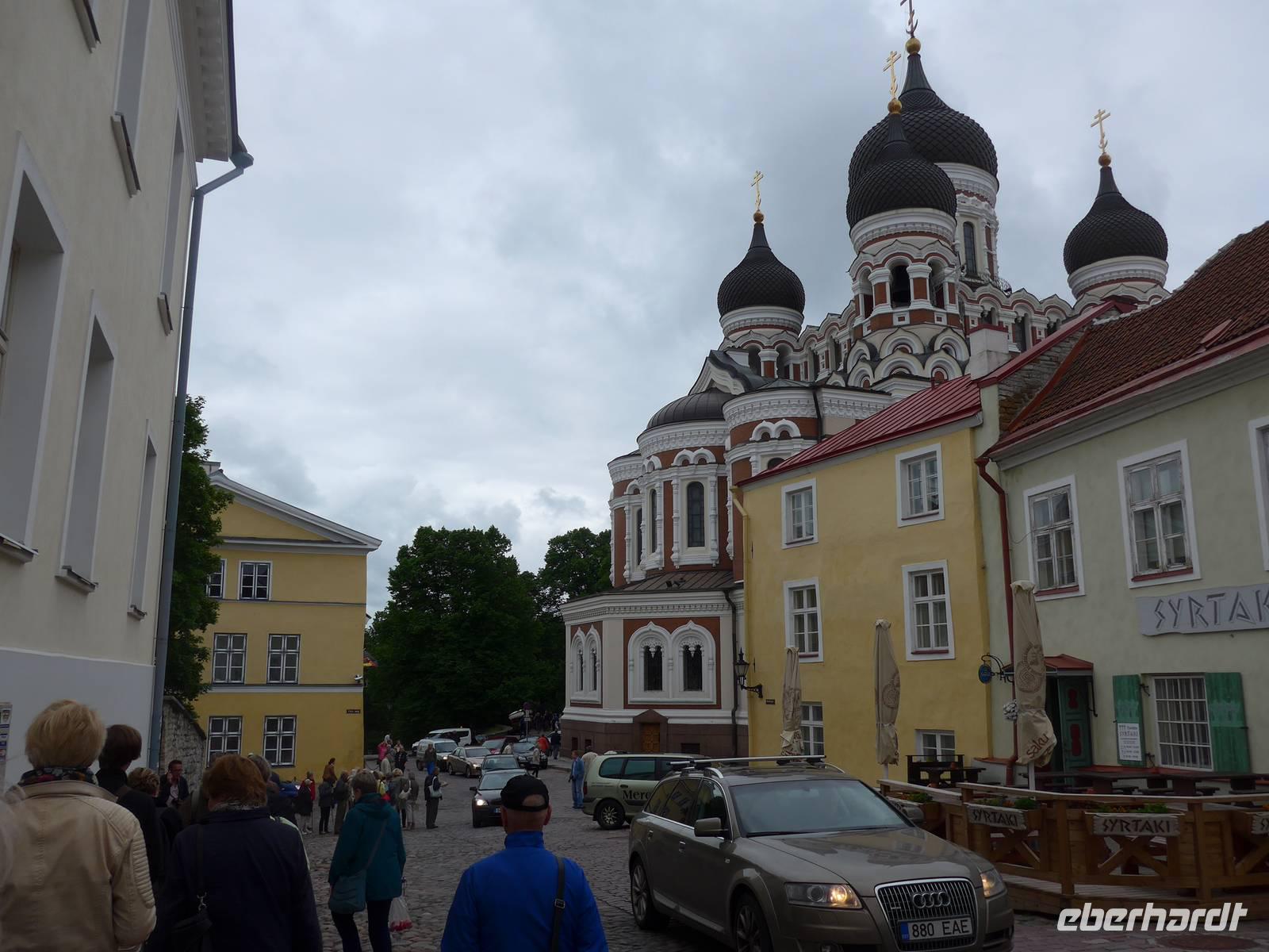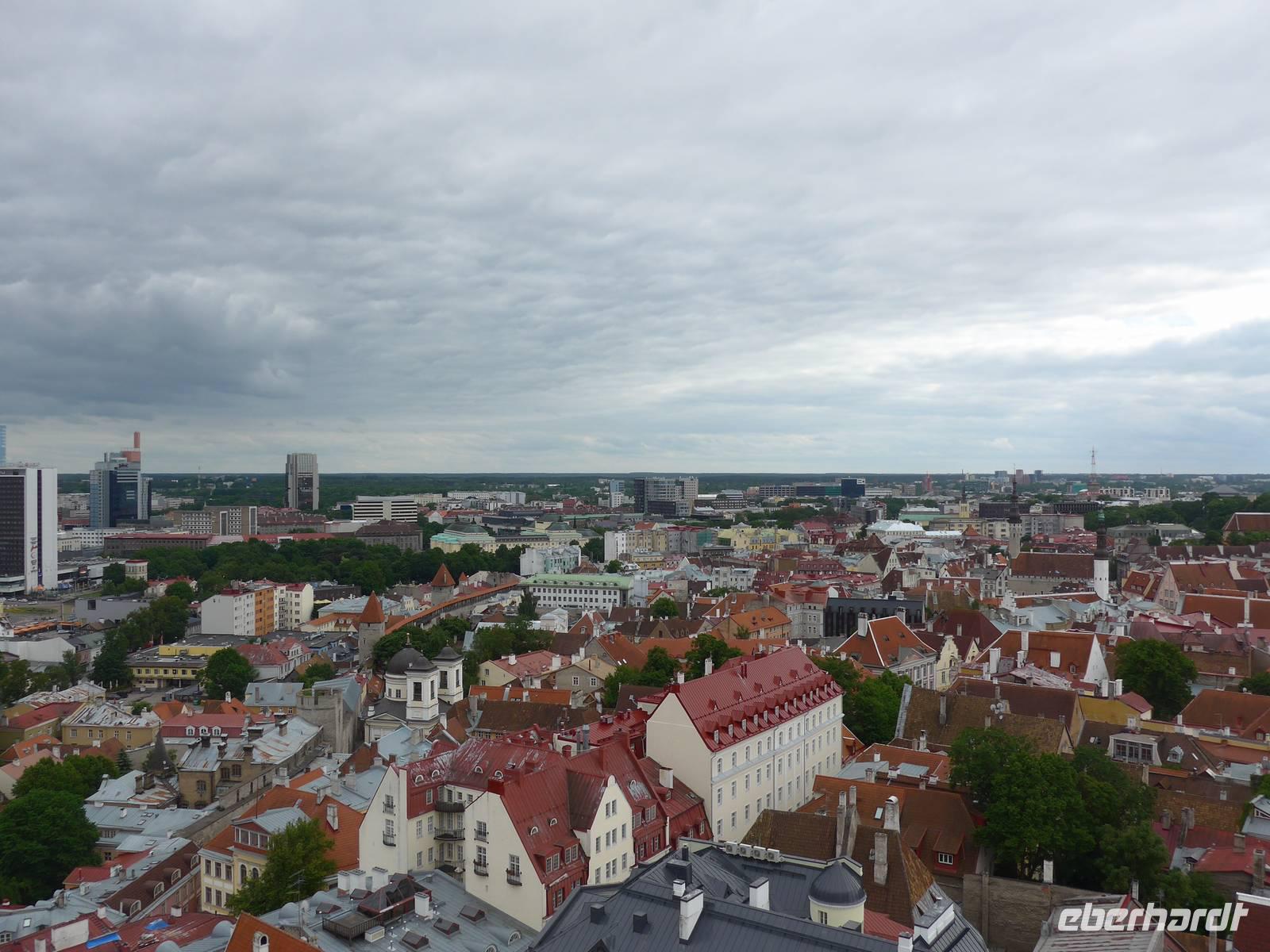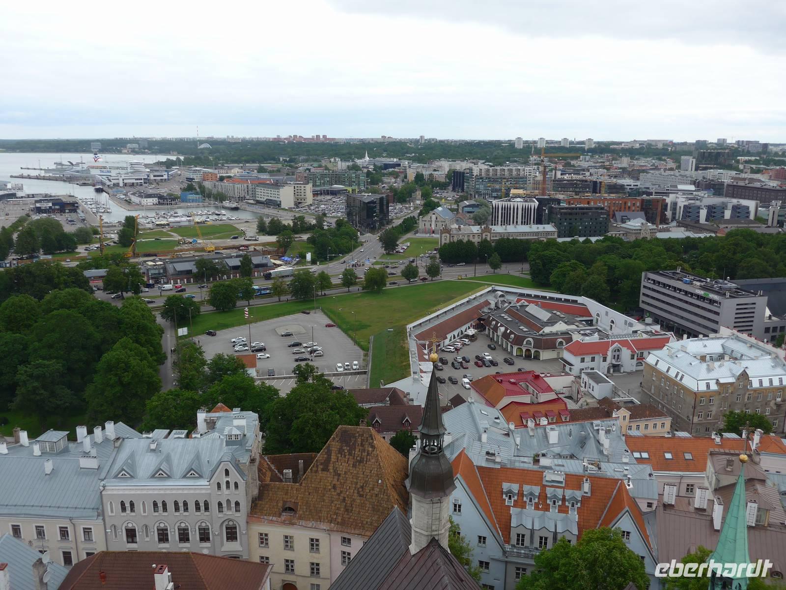 In Pärnu besorgte Roland uns Prospekte von Estland und wir spazierten durch die Hauptstrasse. Es war stürmisch und regenete immer wieder. Deshalb trafen wir uns recht schnell alle im Bus, wo unser Fahrer Jonas eine Flasche Balsam auf seinen Namenstag spendierte. Die letzten 140 km bis nach Tallinn vergingen recht schnell, da wir mit Walzermusik verwöhnt wurden. Unser Hotel in Tallinn lag direkt in der Altstadt und bis dorthin konnte unser Bus nicht fahren. Die Koffer wurden abgeholt und wir gingen das letzte Stück zu Fuß. Nach dem Abendessen im Hotel war noch herrliches Wetter und so erkundeten wir schon mal die mittelalterliche Stadt mit den 2 Aussichtsterrassen und schossen die ersten Fotos von Tallinn.