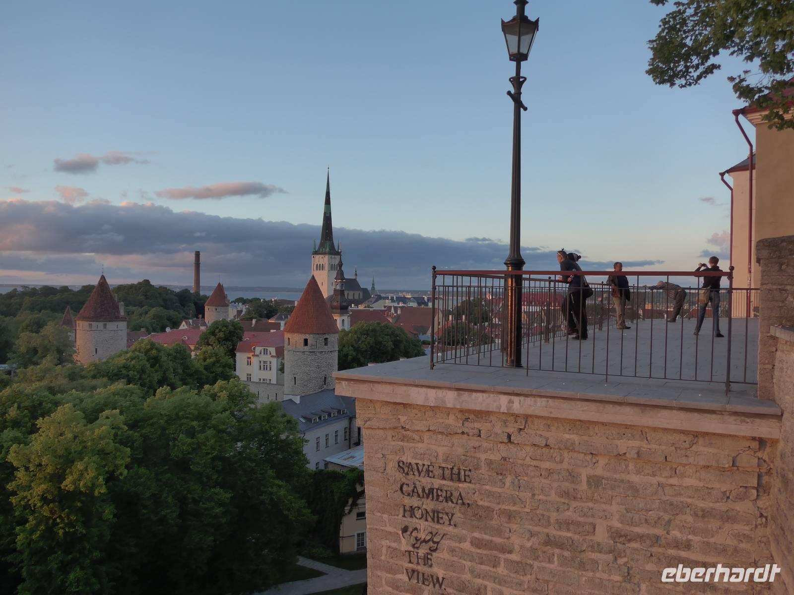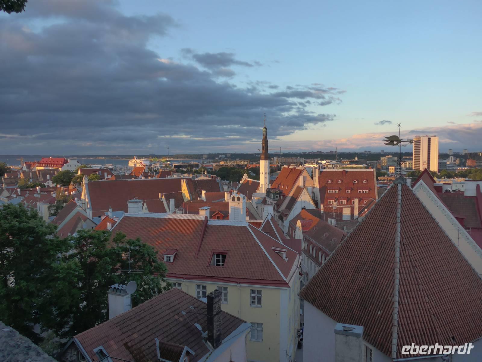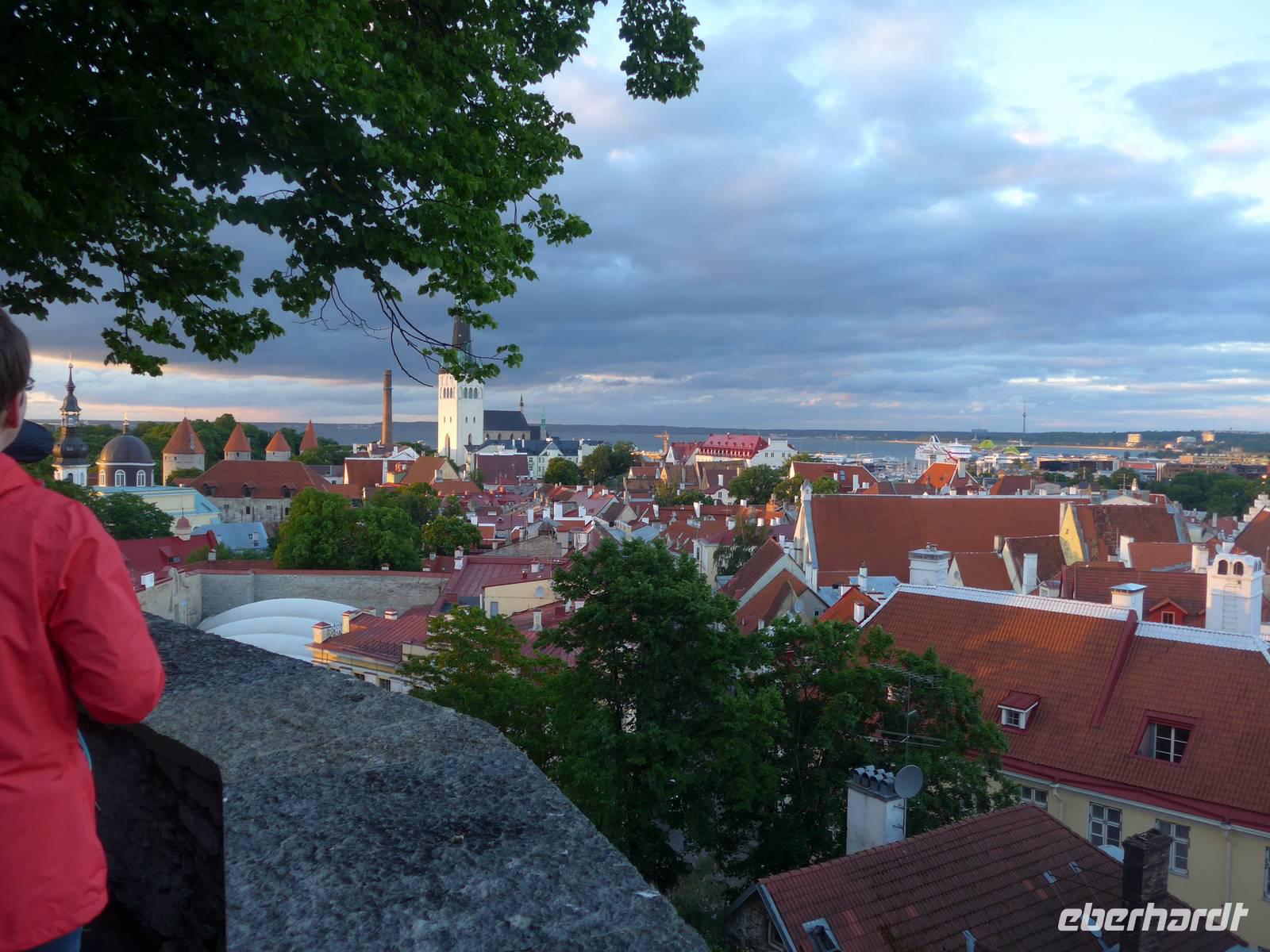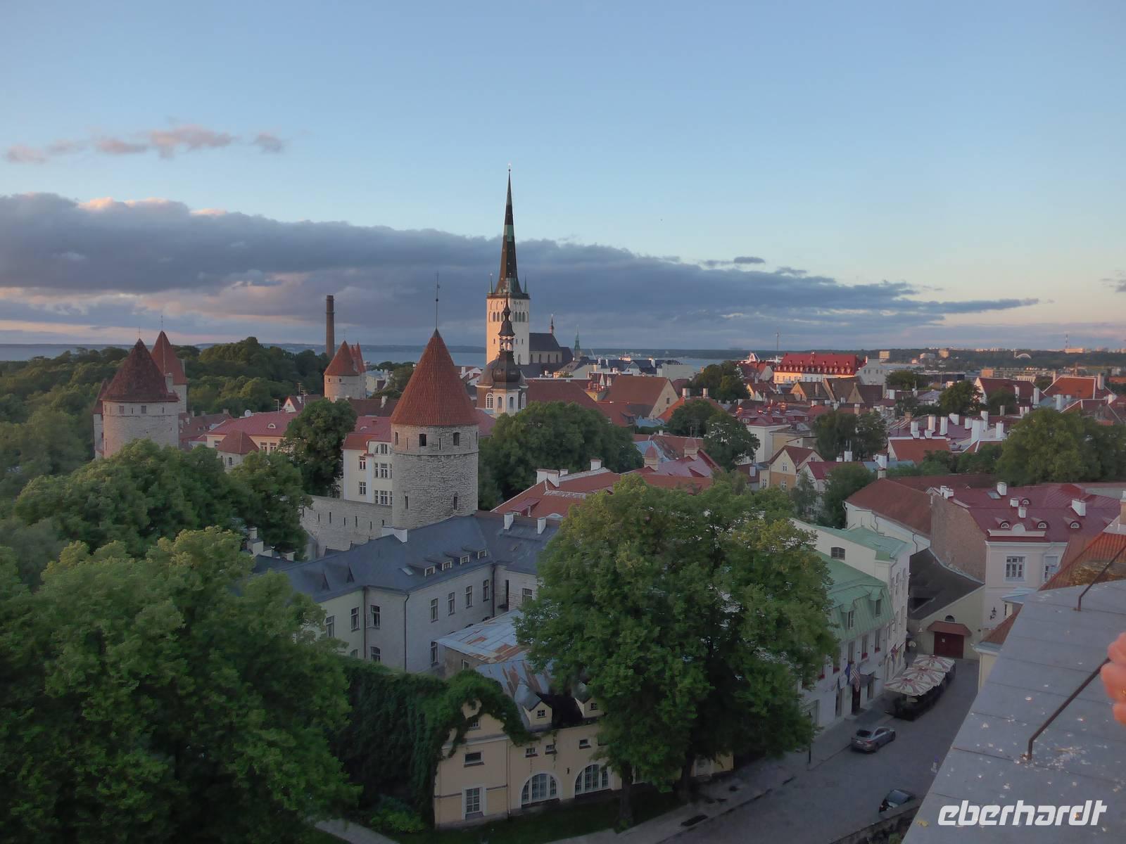 Unser Abendessen nahmen wir im Ratszimmer unter dem Dach der Olde Hanse ein. Zunächst bekam jeder die Hände gewaschen und dann folge das mittelalterliche Menue. Ein toller Abschluß für einen erlebnisreichen Tag in Tallinn und Kadriorg. Es war noch hell und zu schade ins Bett zu gehen und so spazirten wir nochmals zu den beiden Aussichtsterrassen über der Stadt.