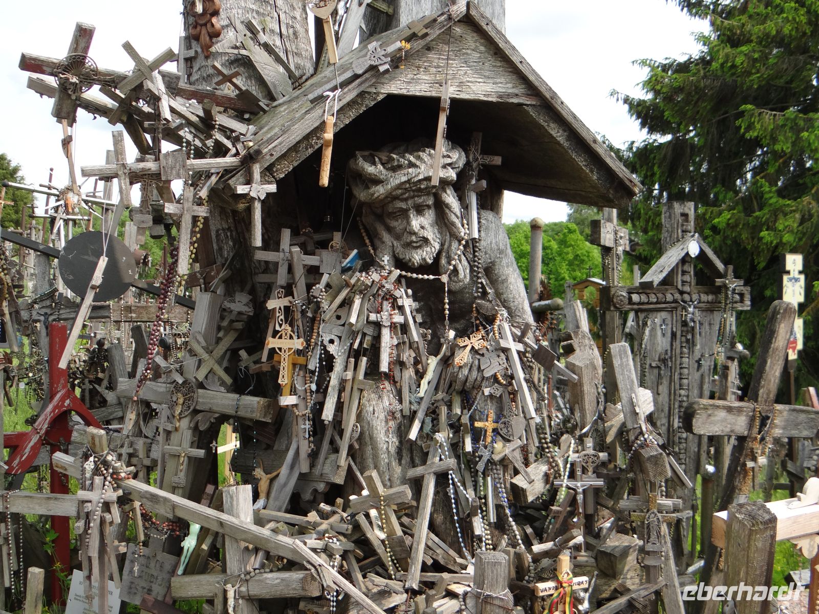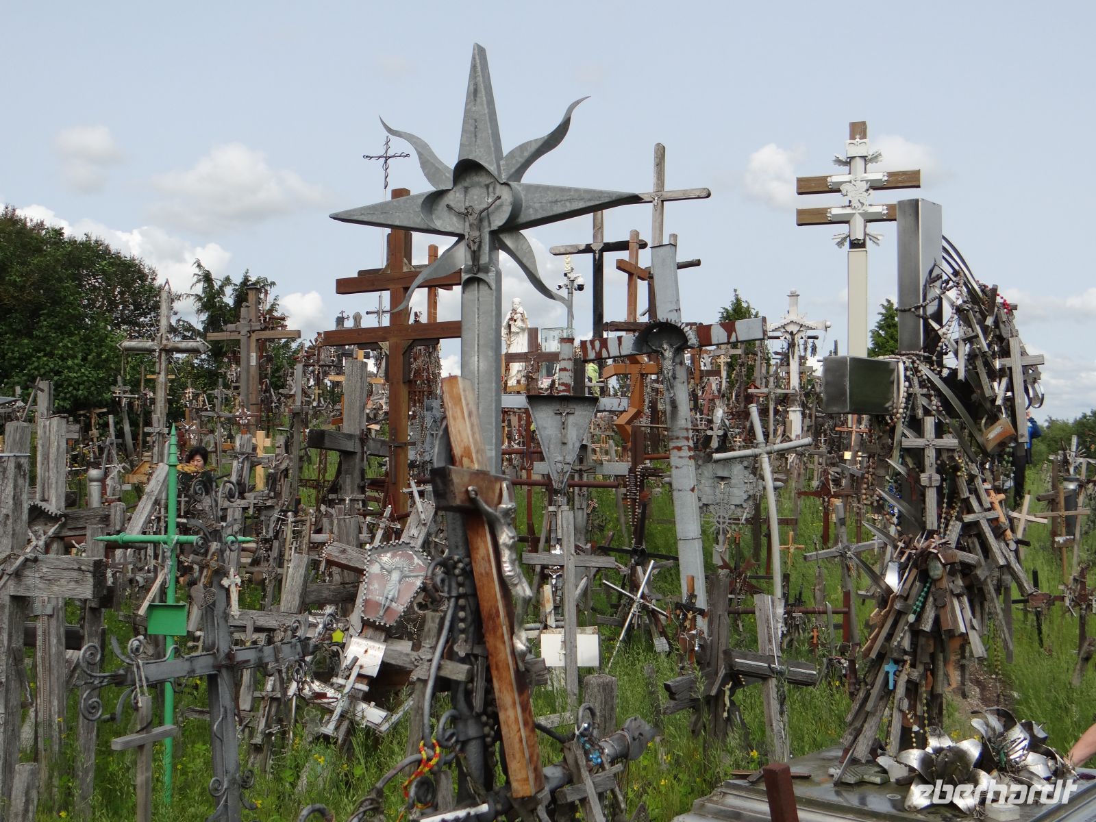 Der Berg der Kreuze ist unser nächstes Ziel, ein wichtiger Wallfahrtsort. Das erste Kreuz stellte ein Vater auf, in tiefer Dankbarkeit für die überwundene Krankheit seiner Tochter. Aus diesem Ort der Frömmigkeit erwuchs ein Symbol des litauischen Nationalbewusstseins. Zum Gedenken an zahlreiche Unterdrückungen, die das litauische Volk erlebt hatte, begann man, hier auf dem Hügel bei Siauliai Kreuze aufzustellen. 1939 ebneten die Sowjets das Gelände ein, doch kurz darauf standen neue Kreuze an diesem Ort. So sammelten sich über die Jahrzehnte über 240.000 Kreuze an – große und kleine. Papst Johannes Paul II. regte den Bau eines Klosters an, das hinter der Gedenkstätte liegt.