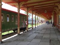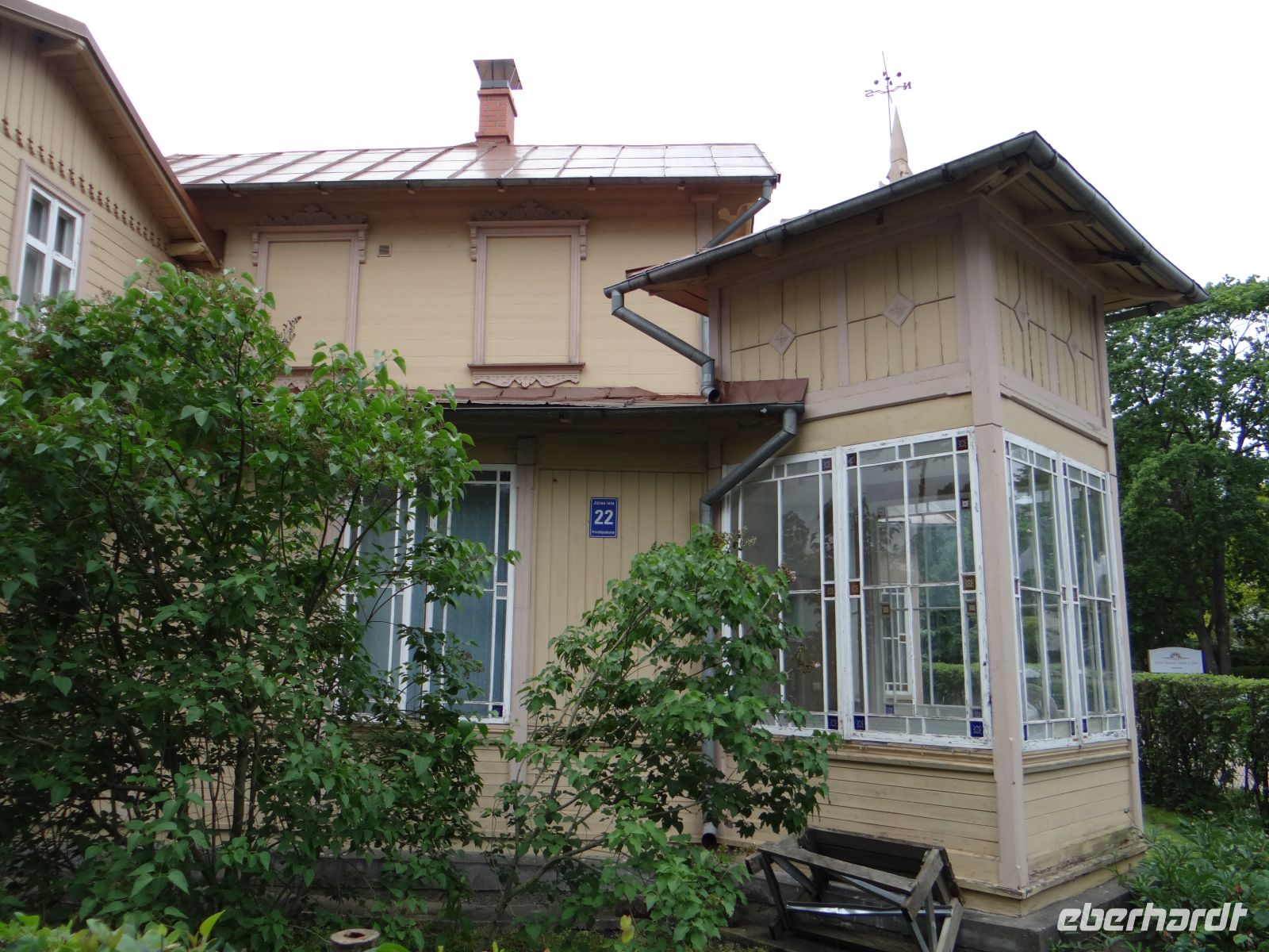 Wir besuchen Haapsalu (dt. Hapsal), das uns sehr gefällt. 1825 ist hier das erste Sanatorium eingerichtet worden. Moorbäder gehörten damals zu den Heilerfolgen. 340 km sind es von St. Petersburg nach Tallinn und weitere 130 km nach Haapsalu. So entschied man sich zur Einrichtung einer Bahnstrecke und baute einen prächtigen Bahnhof mit einem Bahnsteig von 200 m Länge. Der Perron wirkt wie ein Ballsaal in seiner Länge und Breite. Hier hat man die erholungsbedürftigen Gäste in Empfang genommen und die erholten verabschiedet, meist mit Gefolge.