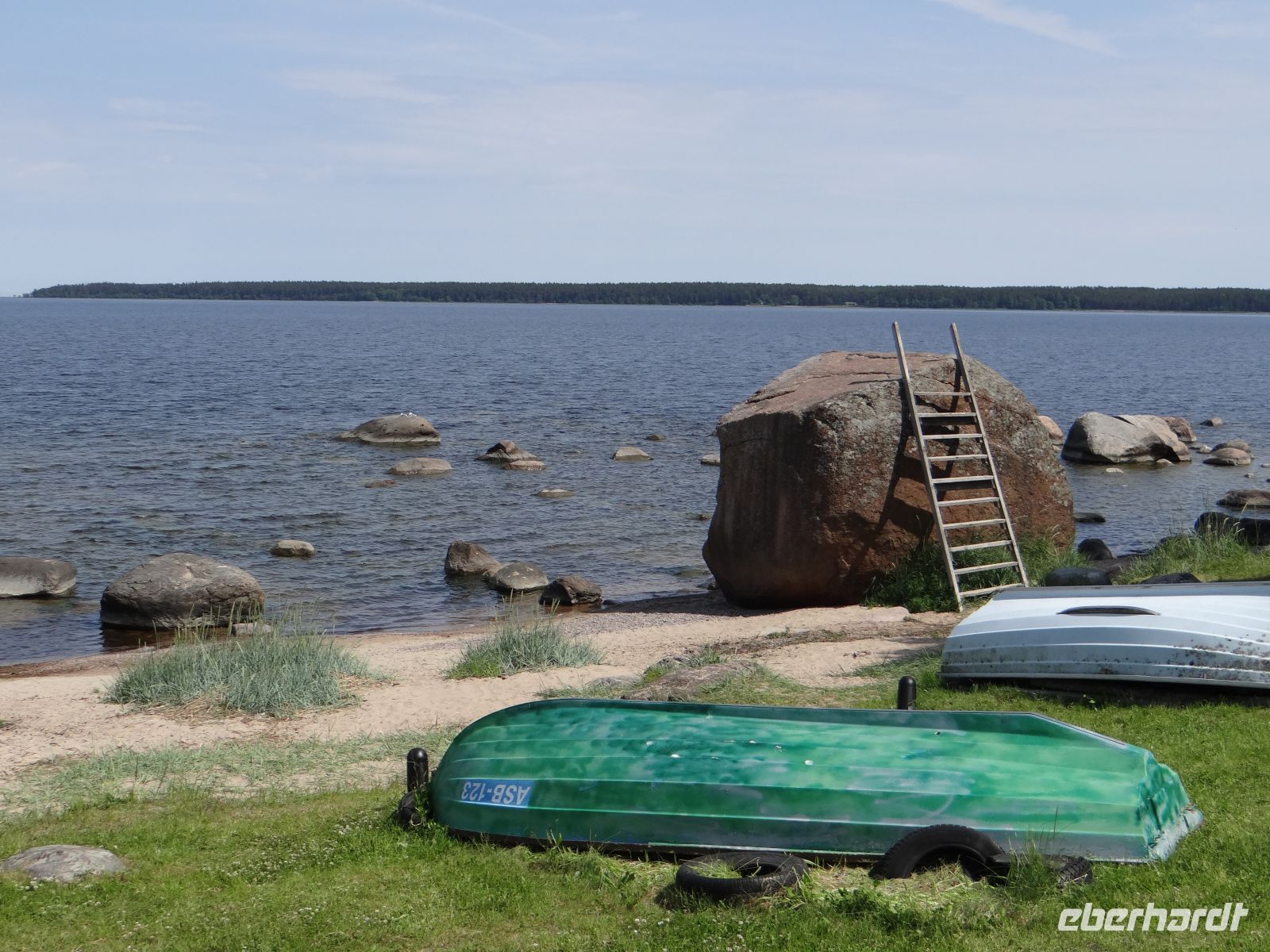 Auf dem Weg zum Mittagessen machen wir noch einen Schwenk nach Kusmä, bekannt durch seine vielen Findlinge, mittelgroß und sehr groß, und seine Seefahrerschule. Viele Kapitäne auf Kreuzfahrtschiffen sind Esten.