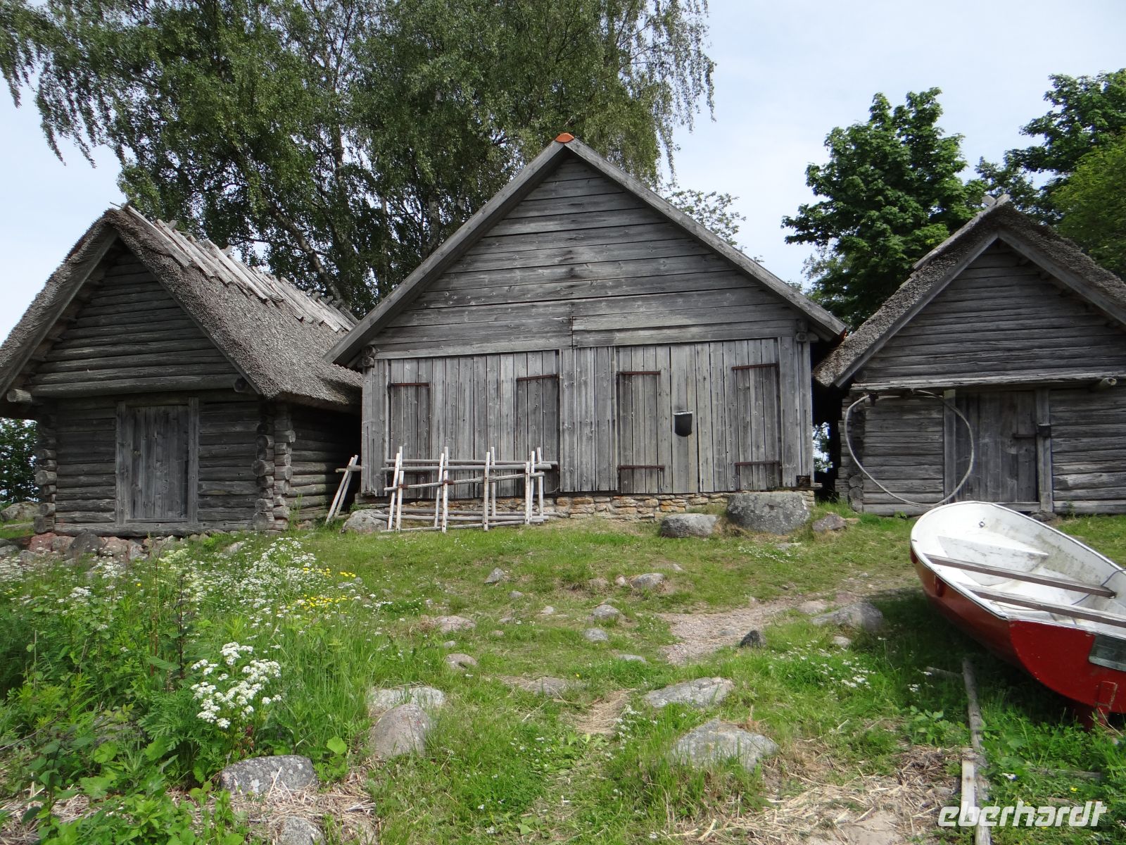 Weiter geht es zum Freilichtmuseum von Koguva. Das Museum entstand aus dem Bauernhof des ersten vom Schwertbrüderorden Livlands für „frei“ erklärten Bauern, sprich die Leibeigenschaft wurde aufgehoben. Die Häuser sind geöffnet und entsprechen ihres Nutzens eingerichtet – Scheune, Hühnerstall, Sauna, Küche. Drumherum wohnen Menschen auf gepflegten Grundstücken, so dass das Areal nicht ganz museal ist.