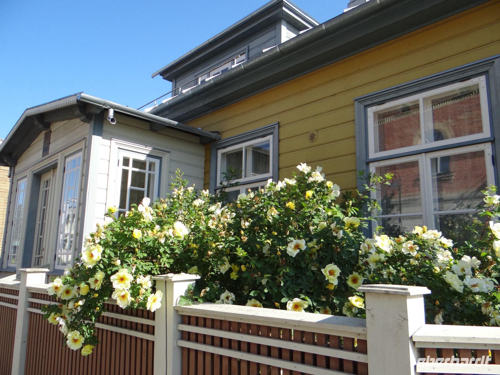 Wir fahren wir mit dem Bus Richtung Katharinental, wo Zar Peter I. für seine Frau ein Sommerschlösschen errichten ließ. Die Zaren hatten eine Schwäche für italienische Architekten und hat auch dieses einen südländischen Baumeister. Das zieht auch andere an und so wohnt man drumherum gehoben, in stattlichen Holzhäusern.