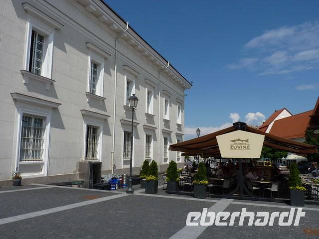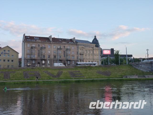 Auf einer Terrasse nur von dem Fluss Nerris getrennt, haben wir einen wunderschönen Blick auf Kaunas.