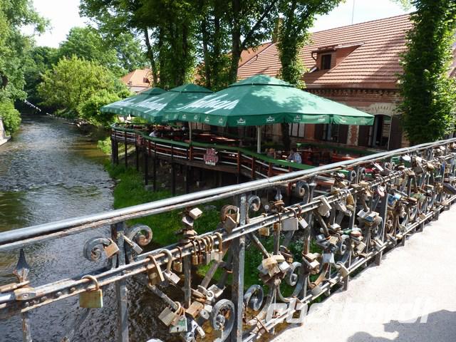 Nach dem Abendessen im Hotel sitzen wir gemütlich in einer Memelner Bierstube am Kanal und genießen den Sonnenuntergang.