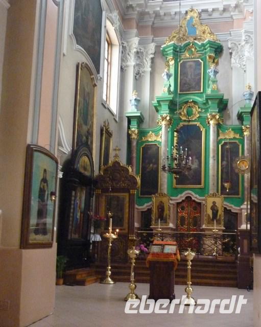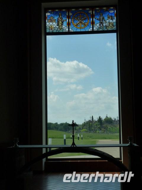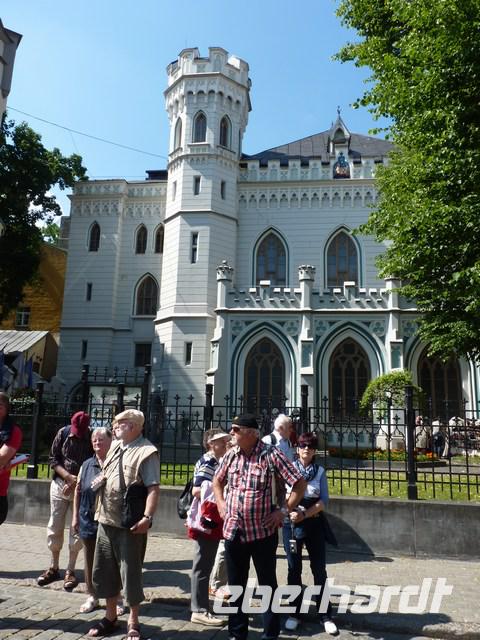 Erster Ausstieg an der Peter und Pauls Kirche mit den 2400 Figuren. Diese Kirche ist ein wichtiges Pilgerziel, vornehmlich für polnische Katholiken.