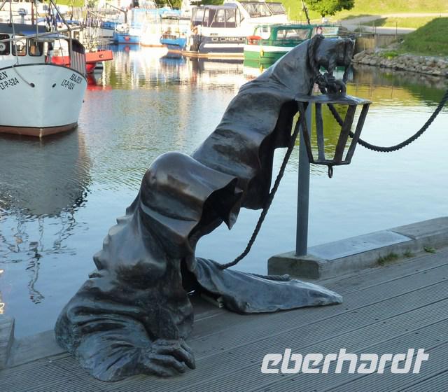 Leider war der Wellengott Bangputys mit der geplanten Hochzeit nicht einverstanden - er wütete und tobte, sodass sich riesige Wellen auf der Ostsee auftürmten. Neringa handelte rasch. Sie sammelte Sand in ihrer Schürze und schüttete ihn vor der Küste zu einem Schutzwall auf. So konnten sie und Naglis ausgelassen ihre Hochzeit feiern. Und die Fischer können seitdem ungestört im Haff fischen - geschützt von der Landzunge, die den Namen der schönen Riesin trägt.