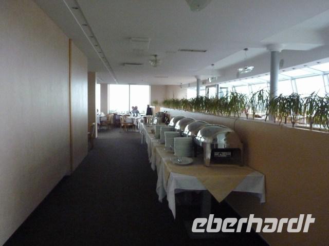 Im Hotel Lilupe, in der 10. Etage ist unser Mittag angerichtet. Mit einem Salat, Gulasch und einer leckeren Creme werden wir verwöhnt.