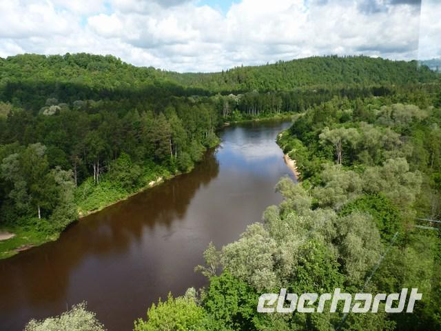 Mit der einzigartigen Seilbahn des Baltikums überqueren wir das Urstromtal von Gauja.