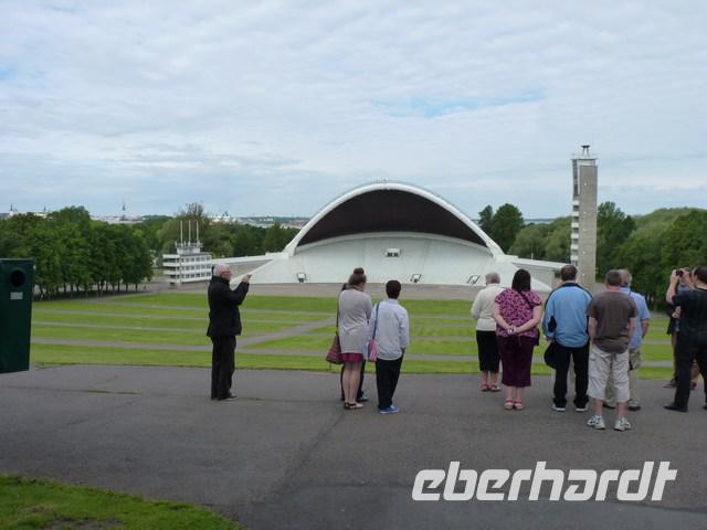 ging es zur Sängerwiese mit der eindrucksvollen Muschel wo viele Konzerte (6/2013 Elton John) und aller fünf Jahre ein estnisches Festival mit ca. 10-15.000 Künstlern stattfindet.