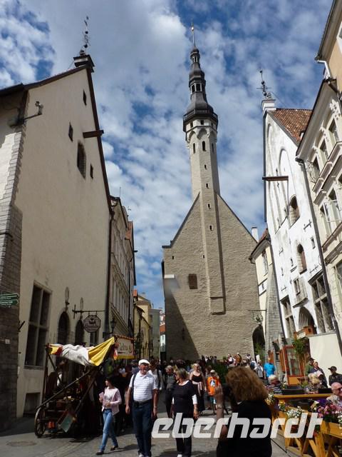 Im Altstadtkern auf dem Marktplatz vorm Rathaus sind verschiedene Stände aufgebaut. Überall herrscht reges Treiben. Auch die Passagiere der Kreuzfahrtschiffe haben Landgang.