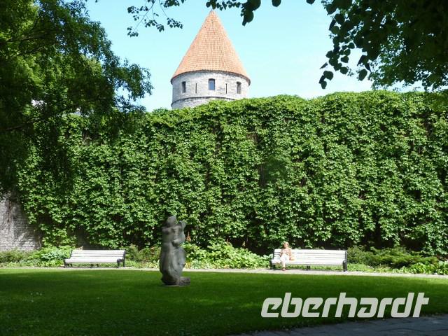 Sehenswürdigkeiten: das einzige gotische Rathaus, das in ganz Nordeuropa welches erhalten geblieben ist. Seine Turmspitze schmückt das Wahrzeichen von Tallinn, die Figur des Stadtwächters Vana Toomas (Alter Thomas), Dicke Margarete (16m hoch), lange Herrmann mit der Nationalflagge Estlands (Blau = Himmel, Schwarz = Schiefer, Weiß = Schnee), Tallinner Dom, KGB Museum, Stadtmauer, Fernsehturm, Olaikirche, National Oper, Parlament, Russalka - Denkmal , Stadtapotheke, Parkanlagen und viele viele Kirchen.