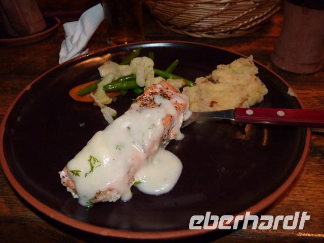 Hier war unsere Gruppe zum Mittag angemeldet. Auf tönernem Geschirr wurden uns Suppe, Gemüse, Lachs und Armer Ritter (Bröckelsuppe) serviert. Hmmm lecker!
