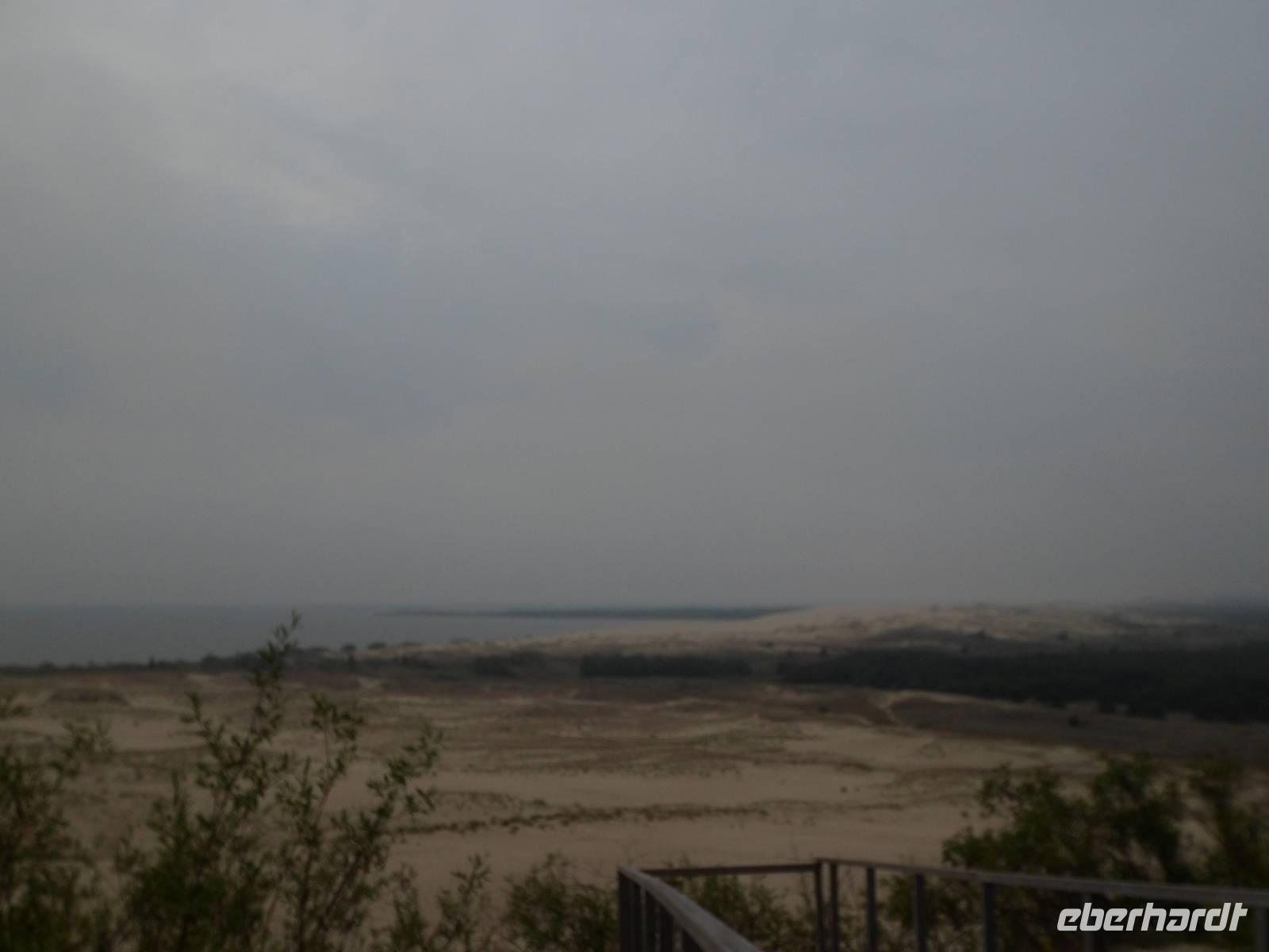 Nach dem sehr guten Früstück geht es mit dem Bus zur Fähre. Die Überfahrt dauert nur 10 Min so dass alle Personen im Bus bleiben. Auf der Kurischen Nehrung absolvieren wir etwa 50 Fahrt km vorbei an Wäldern und Wiesen bis nach Nidden. Dort laufen wir zum Aussichtspunkt auf die hohen Dünen und gerade jetzt lacht die Sonne aus den Wolken, pünktlich zum Fotostopp.