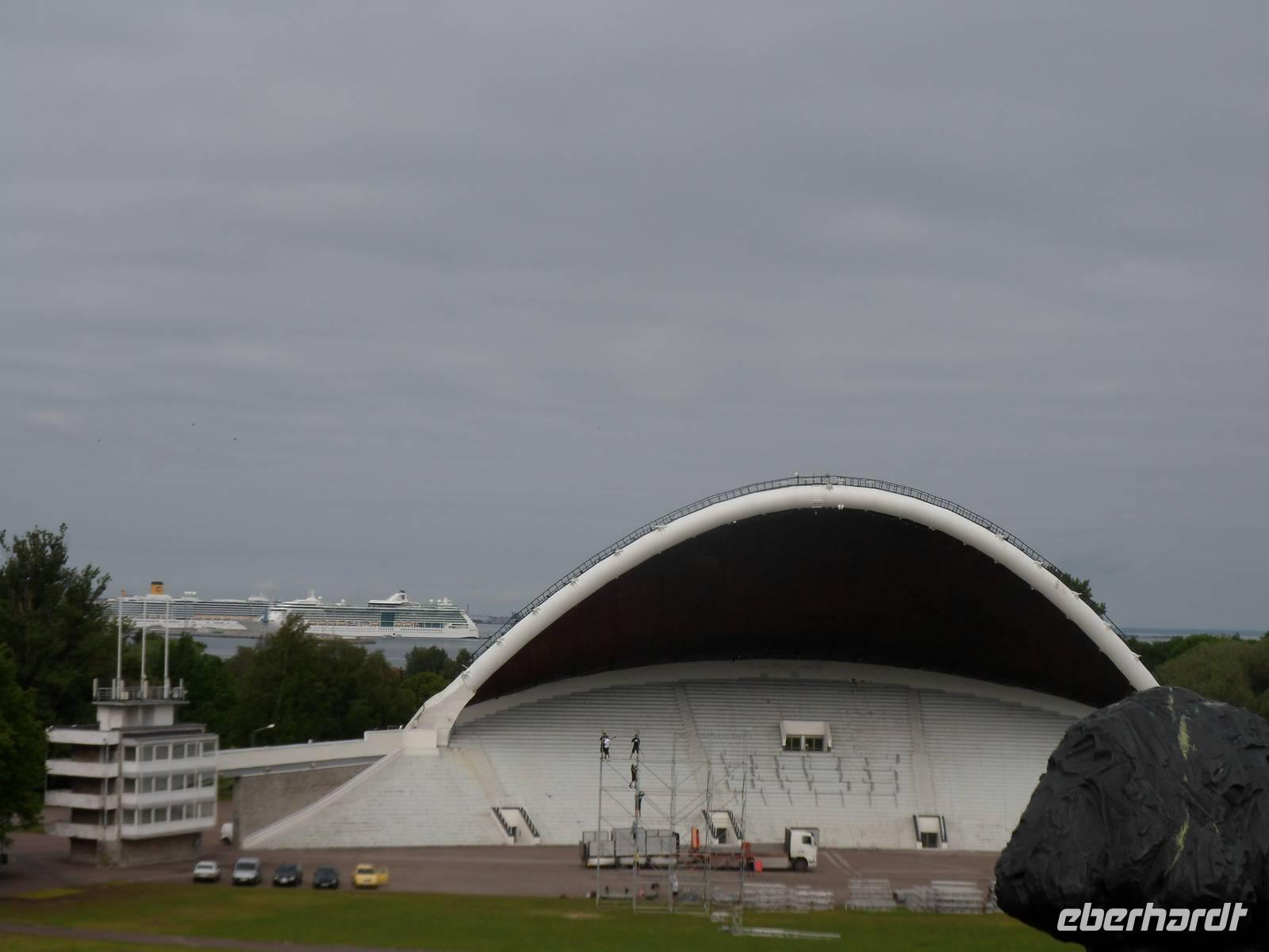Weiter zur Sängerwiese mit der eindrucksvollen Muschel wo jedes Jahr Konzerte stattfinden und Gesangfestivalls. Unserere kurze Gesundheitspause nehmen wir am Hafen im Terminal A ein.