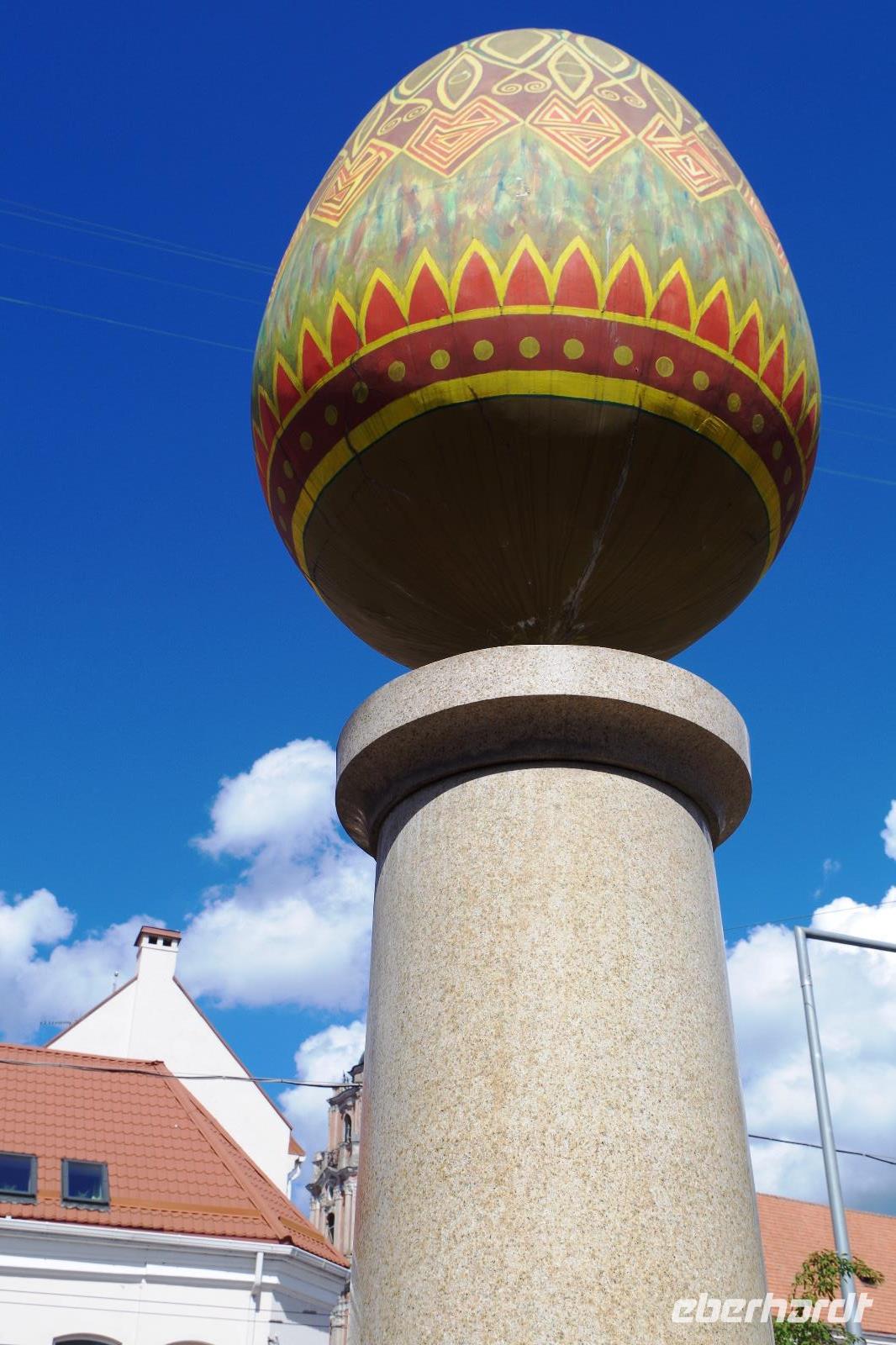 21 reiselustige Gäste trafen sich am Vormittag mit Eberhardt-Reisebegleitung Annett auf dem Flughafen Frankfurt/Main, um dann gemeinsam nach Vilnius zu fliegen. Am Nachmittag landeten wir in Vilnius, der Hauptstadt von Litauen. Nachdem wir die Uhren 1 Stunde vorgestellt hatten, begrüßte uns Regina, unsere Reiseleiterin, die uns durch das Baltikum begleitete. Nach einer kurzen Busfahrt erreichten wir unser zentral gelegenes Hotel Conti unweit des Universitätsviertel. Das bunte Ei vor dem Hotel war ab sofort Treffpunkt und Ausgangspunkt für unsere Streifzüge durch Vilnius. Bereits vor dem Abendessen unternahmen viele Gäste einen ersten Bummel durch die Stadt. Während unseres 2tägigen Aufenthaltes in Vilnius werden wir noch viel über die interressante Geschichte erfahren: